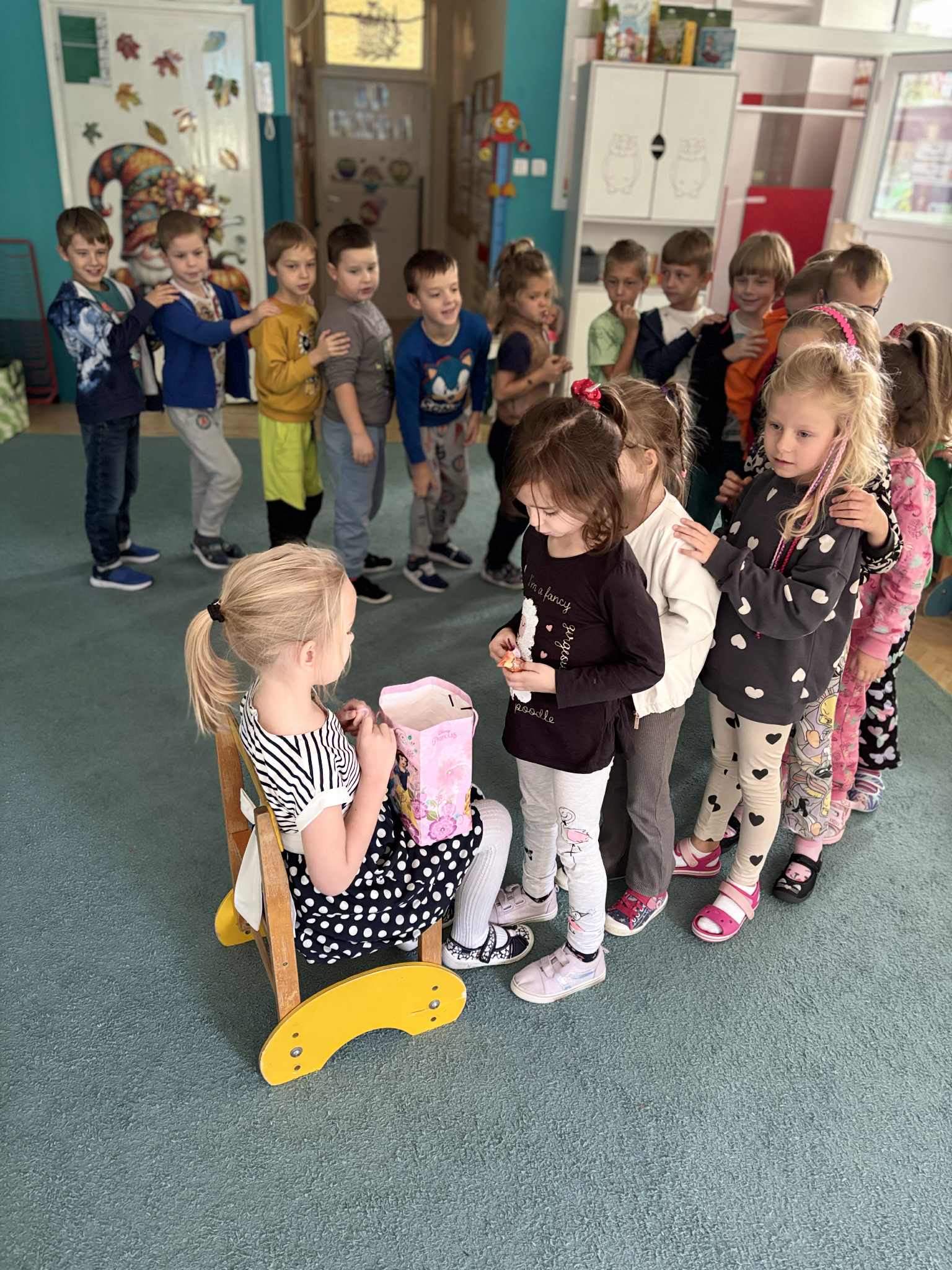 To był dzień pełen radości, uśmiechów i kolorowych emocji. Dzieci złożyły Alicji serdeczne życzenia, a cała grupa zaśpiewała głośne i radosne „Sto lat!”.