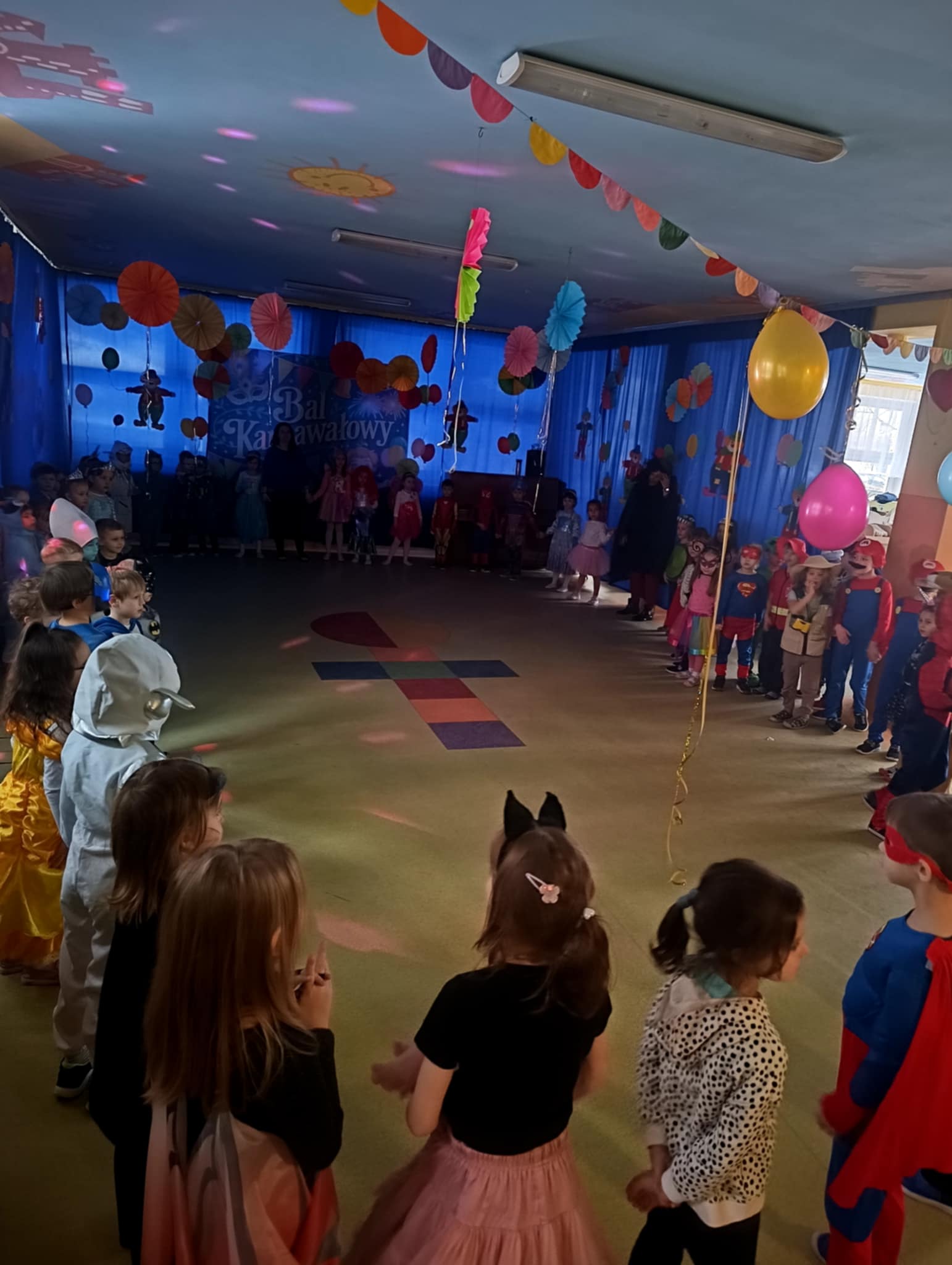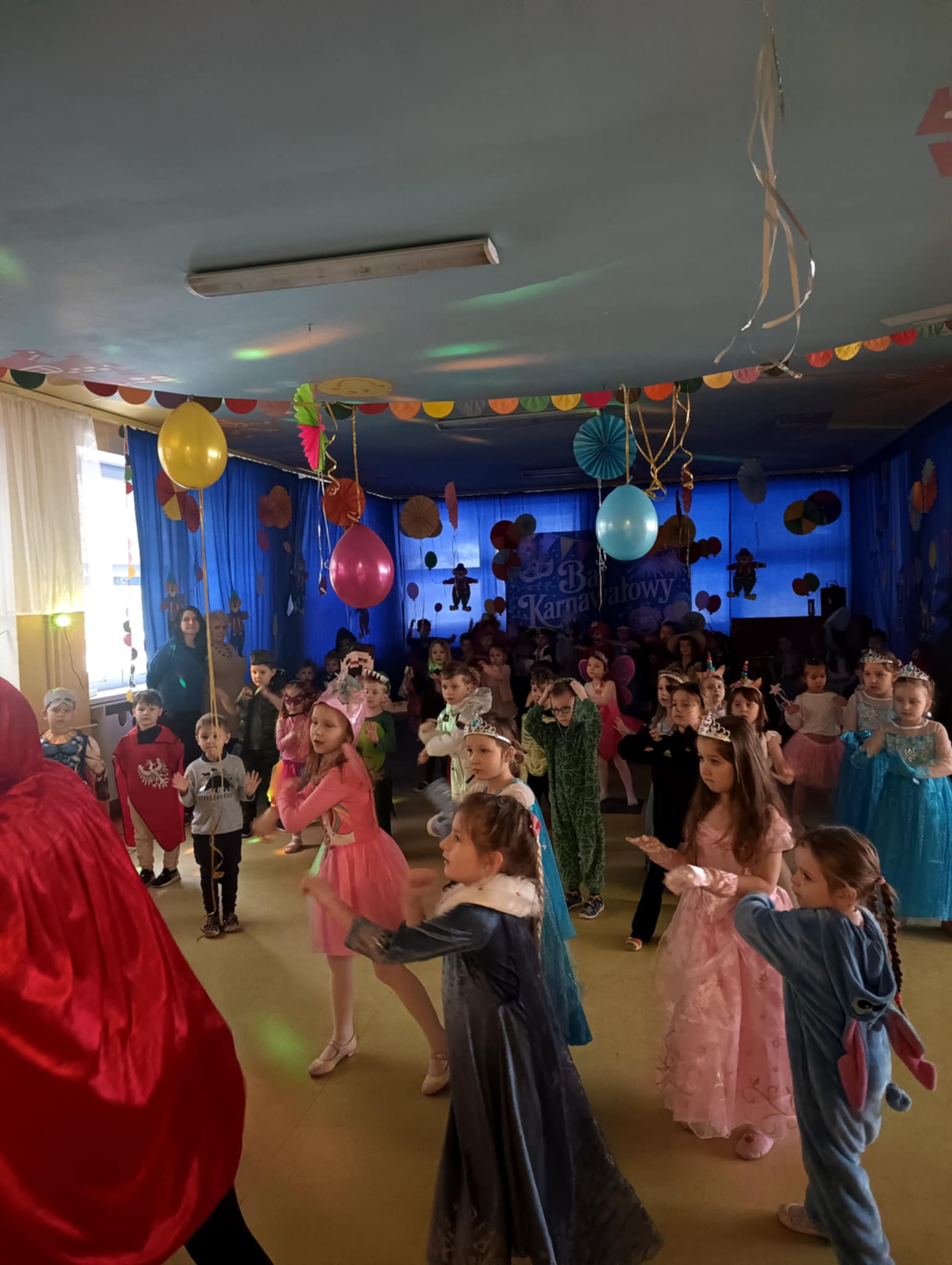 W naszym przedszkolu odbył się wspaniały bal karnawałowy, który przyniósł dzieciom mnóstwo radości i niezapomnianych wrażeń. Przedszkolaki pojawiły się w fantastycznych przebraniach – księżniczki, superbohaterowie, zwierzątka i wiele innych postaci wypełniły salę kolorami i uśmiechami. Podczas balu dzieci brały udział w tańcach i zabawach muzycznych , wszyscy świetnie się bawili, śmiejąc się i tańcząc wspólnie. To był dzień pełen emocji, przyjaźni i wspaniałej, karnawałowej atmosfery. Bal pokazał, że w naszym przedszkolu każdy może poczuć się wyjątkowo.