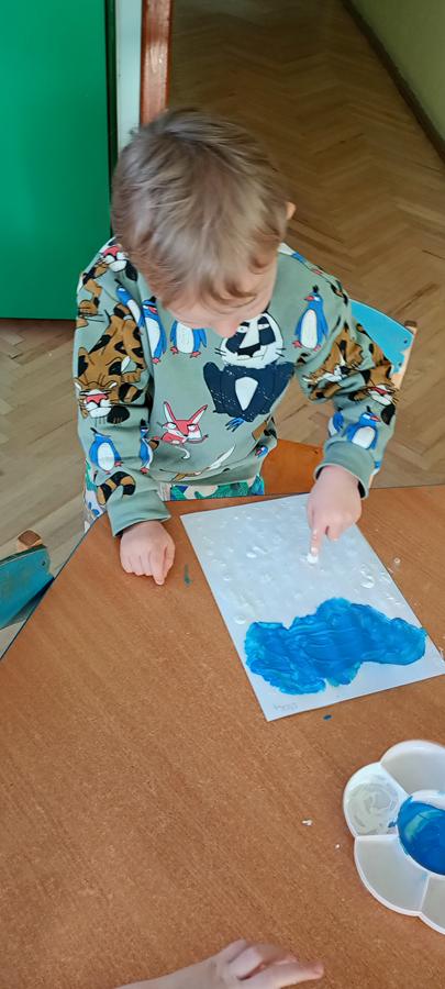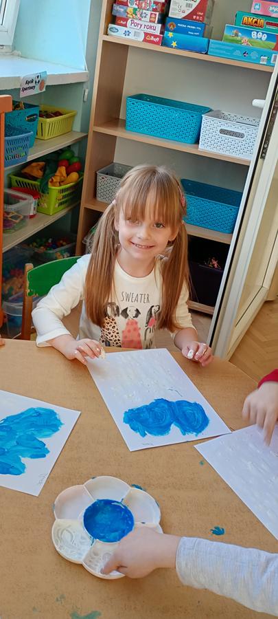 Zimowe zabawy plastyczne usprawniające place dłoni.