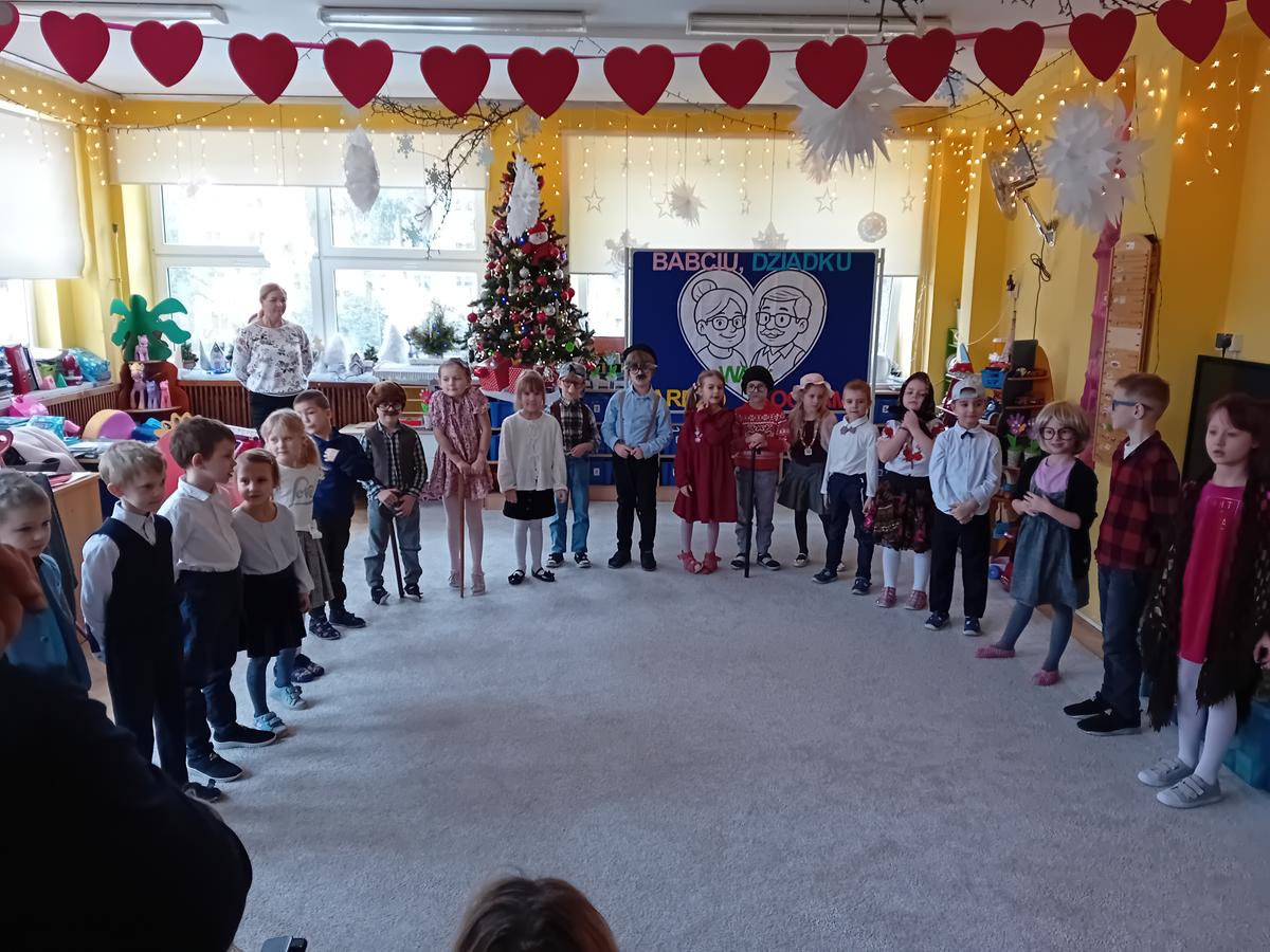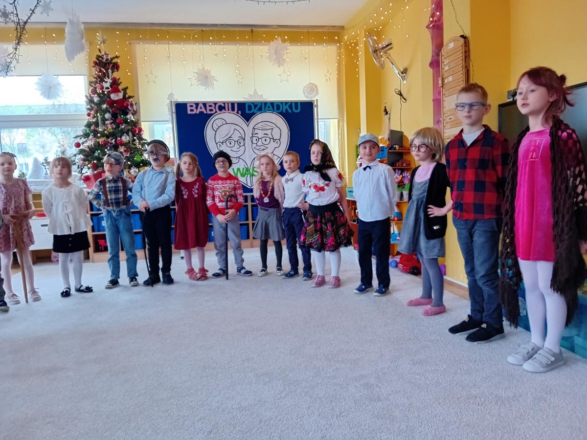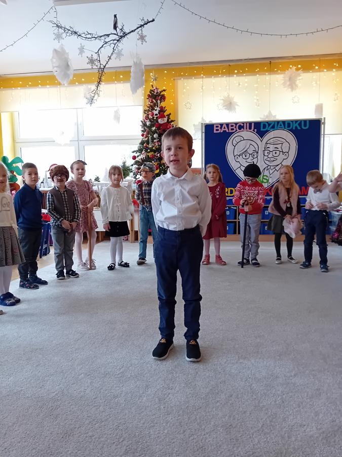Świętowaliśmy w naszej grupie Dzień Babci i Dziadka. Szanowni Goście przybyli do nas na uroczystość i oglądali z wielkim przejęciem występy swoich najukochańszych wnucząt. Występ zakończyły gromkie brawa i Sto lat dla Babć i Dziadków.
