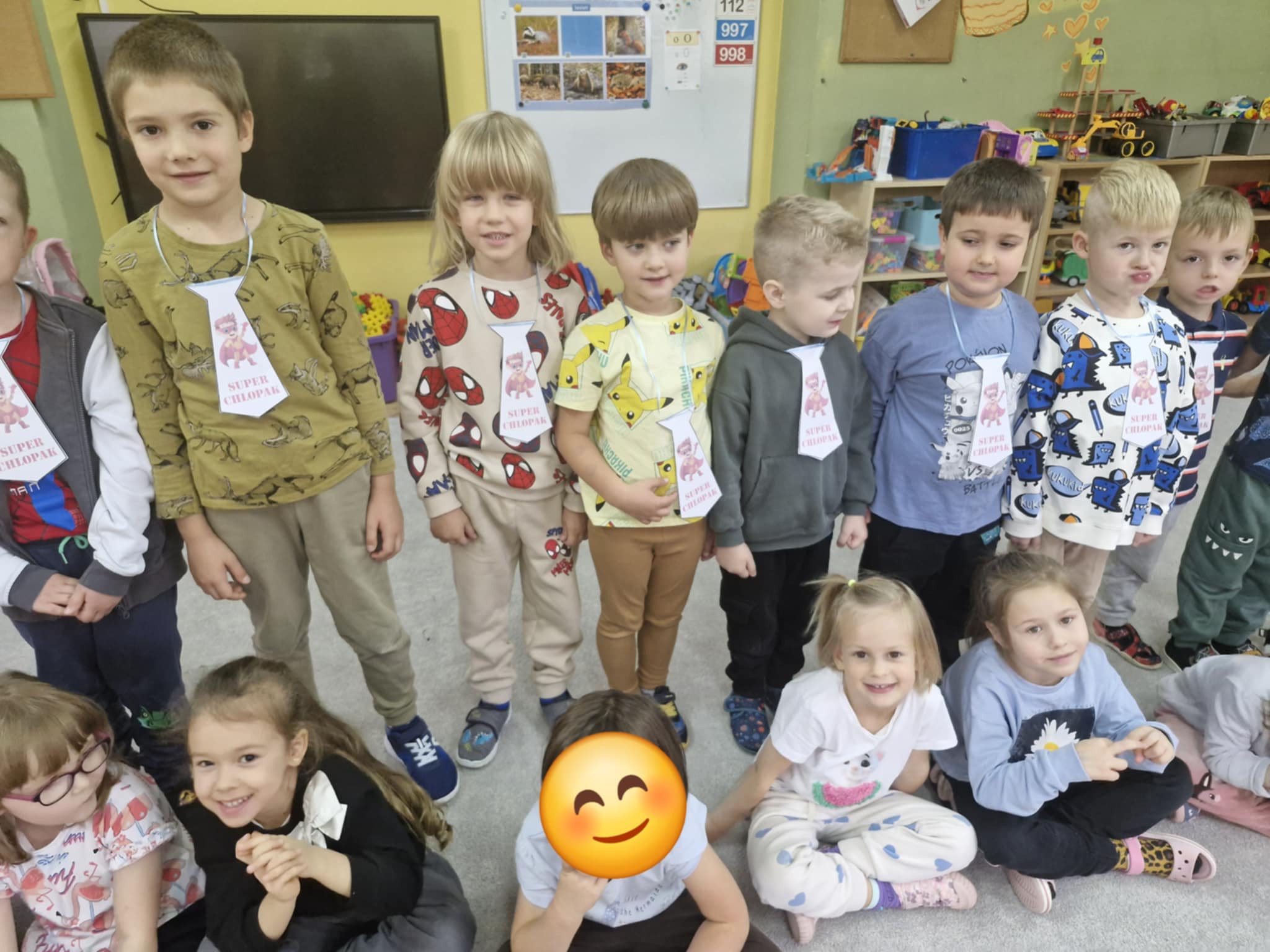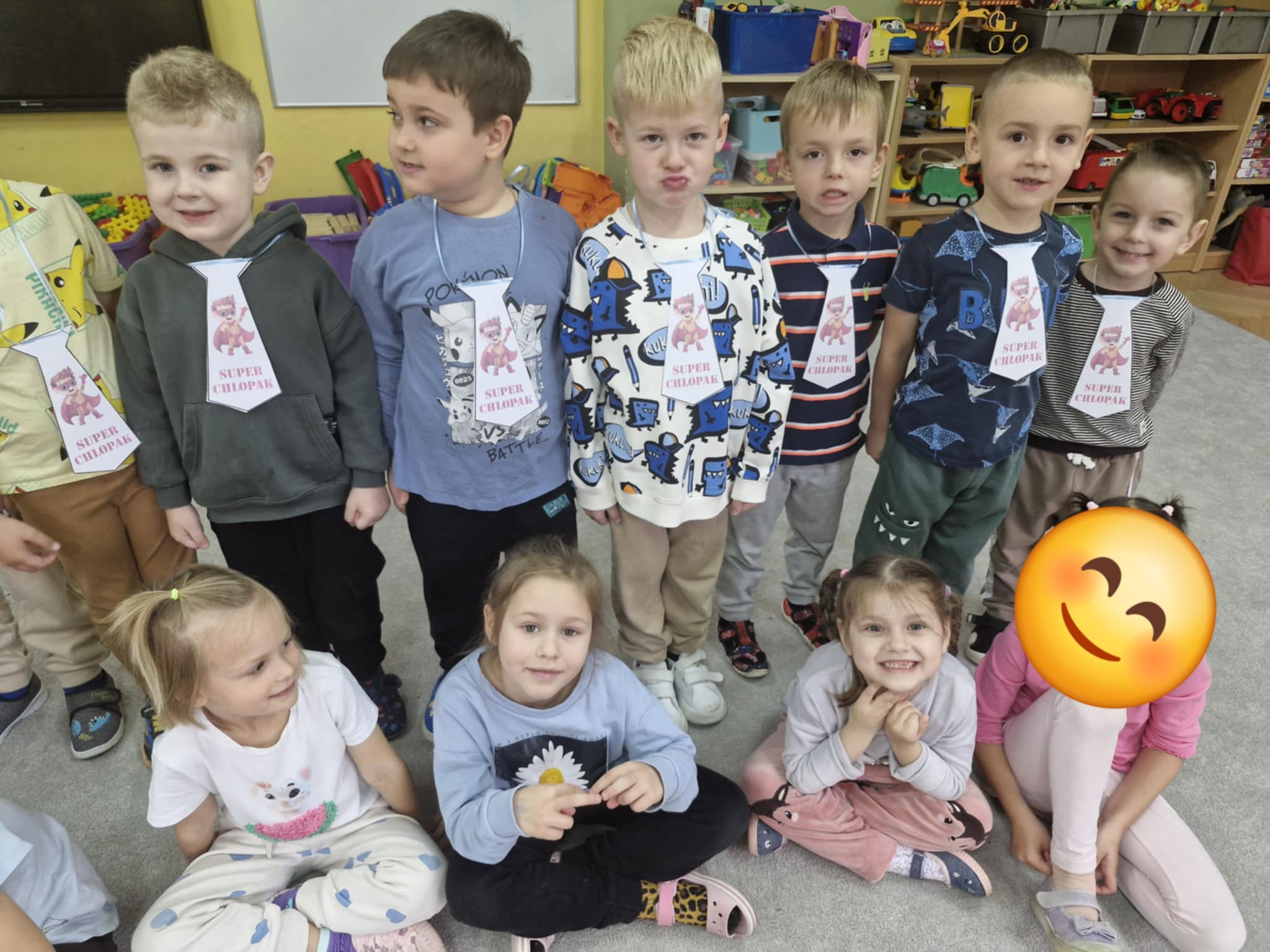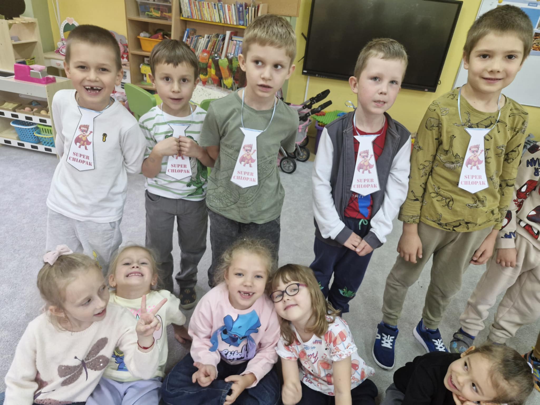 W naszej grupie Jeżyków świętowaliśmy Dzień Chłopaka w radosnej atmosferze. Dziewczynki przygotowały dla kolegów niespodziankę, własnoręcznie wykonane papierowe krawaty i pięknie zaśpiewały Sto lat. Było dużo uśmiechów, serdeczności i wspólnej zabawy. To był wyjątkowy dzień pełen miłych gestów i przyjacielskich emocji.