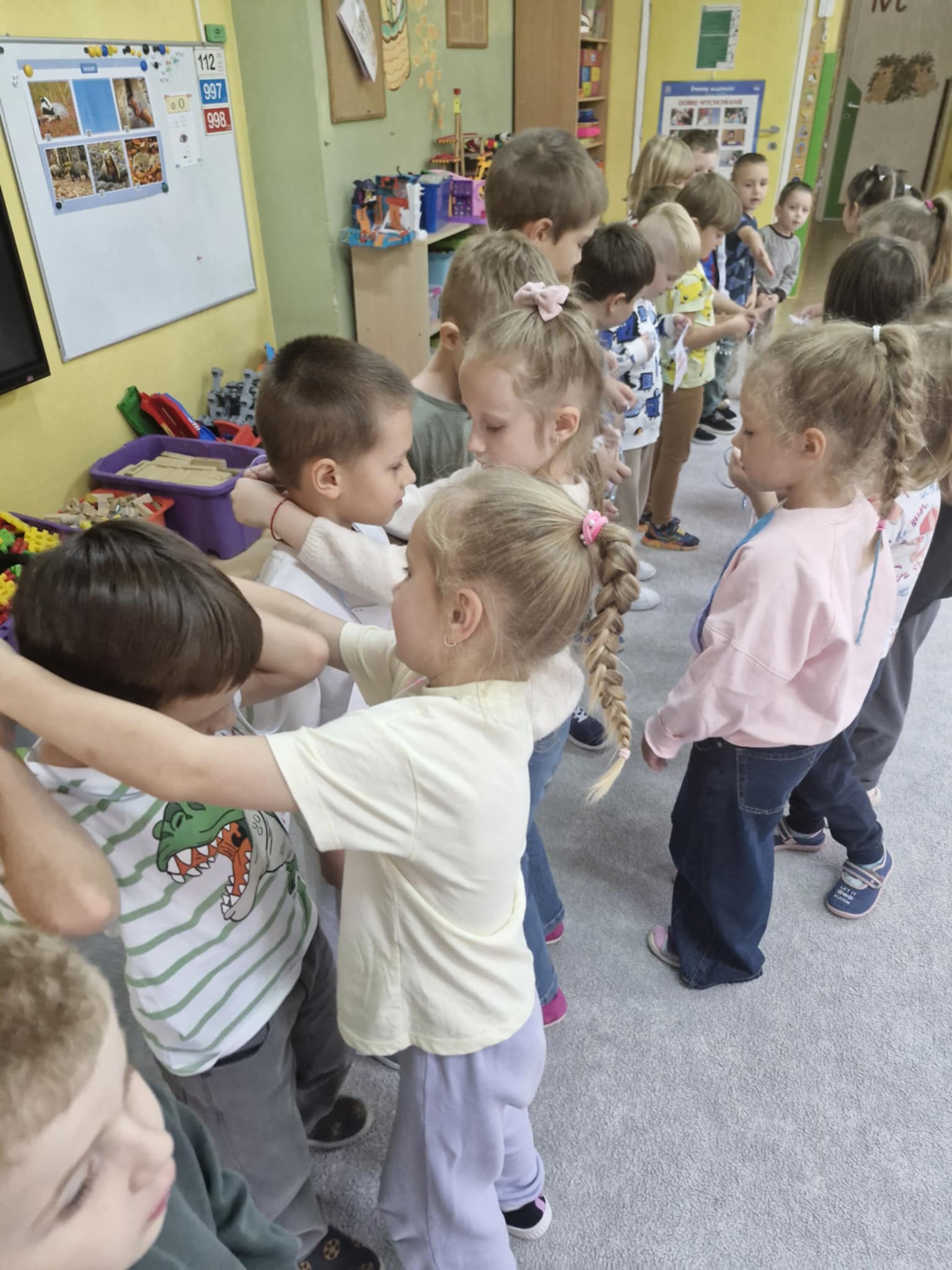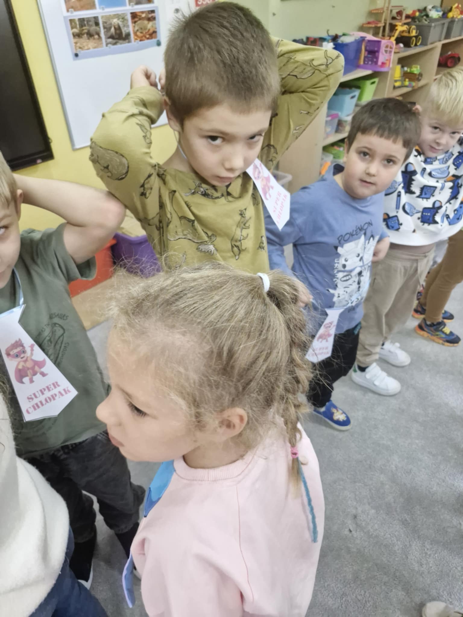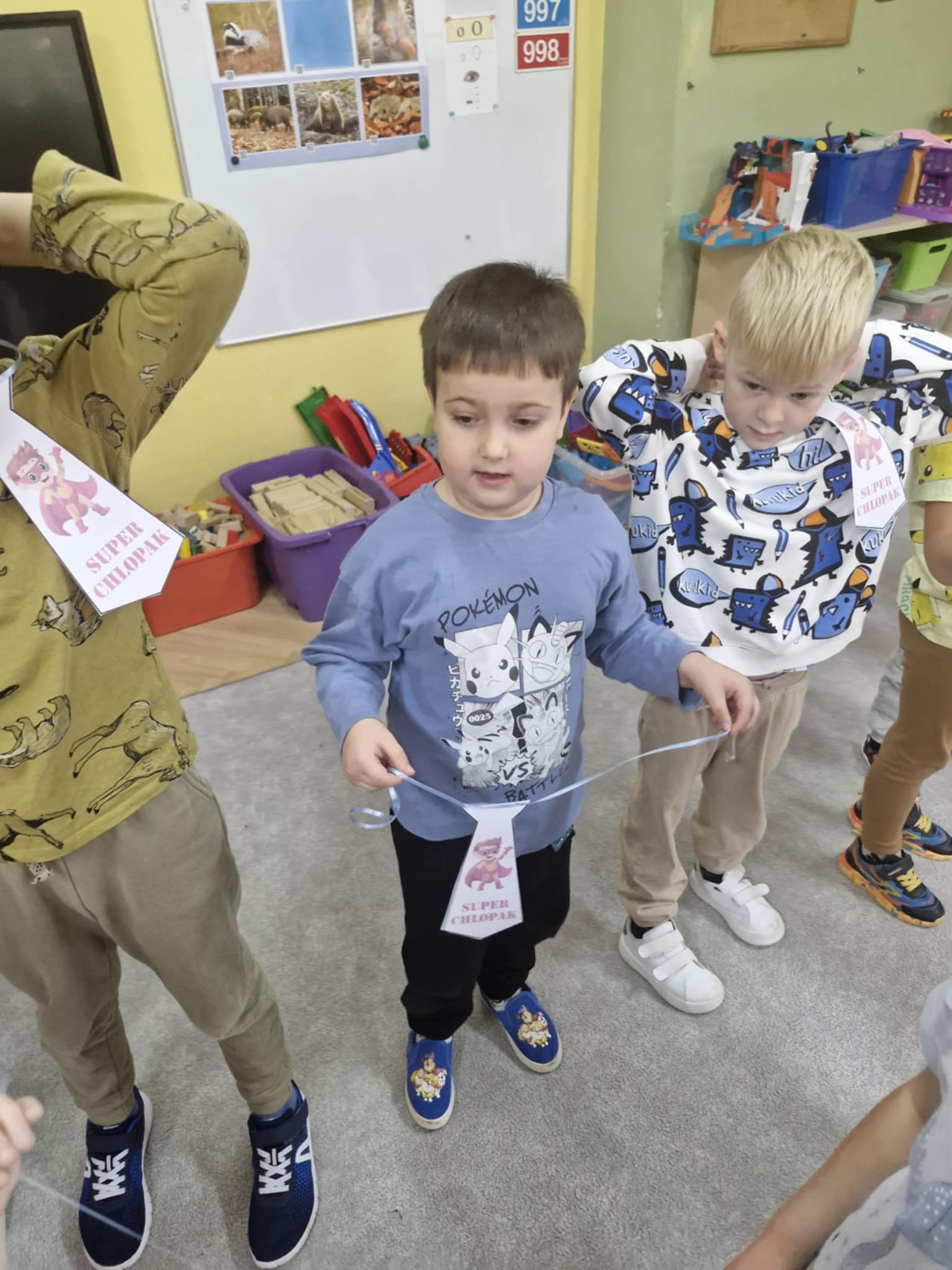 W naszej grupie Jeżyków świętowaliśmy Dzień Chłopaka w radosnej atmosferze. Dziewczynki przygotowały dla kolegów niespodziankę, własnoręcznie wykonane papierowe krawaty i pięknie zaśpiewały Sto lat. Było dużo uśmiechów, serdeczności i wspólnej zabawy. To był wyjątkowy dzień pełen miłych gestów i przyjacielskich emocji.