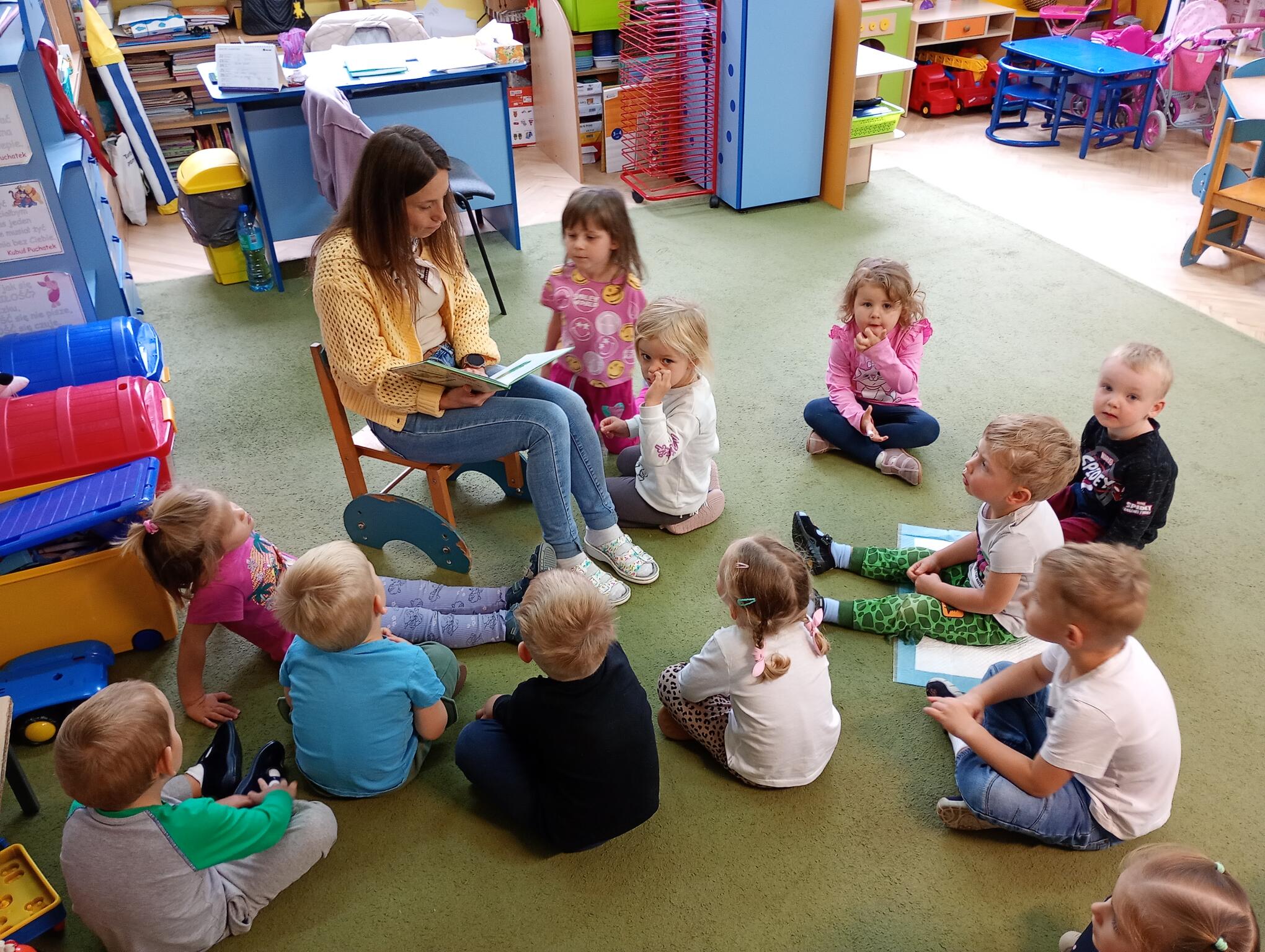Dziś z okazji Dnia Głośnego Czytania maluchy uczestniczyły we wspólnym słuchaniu czytanej przez nauczycielkę książeczki. Puchatki z zainteresowaniem śledziły przygody bohaterów i oglądały książeczkowe ilustracje.
