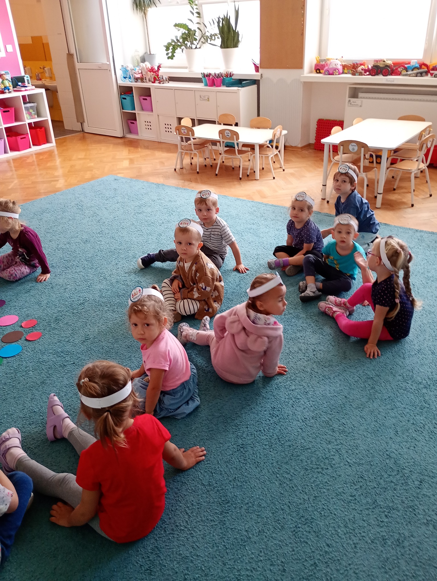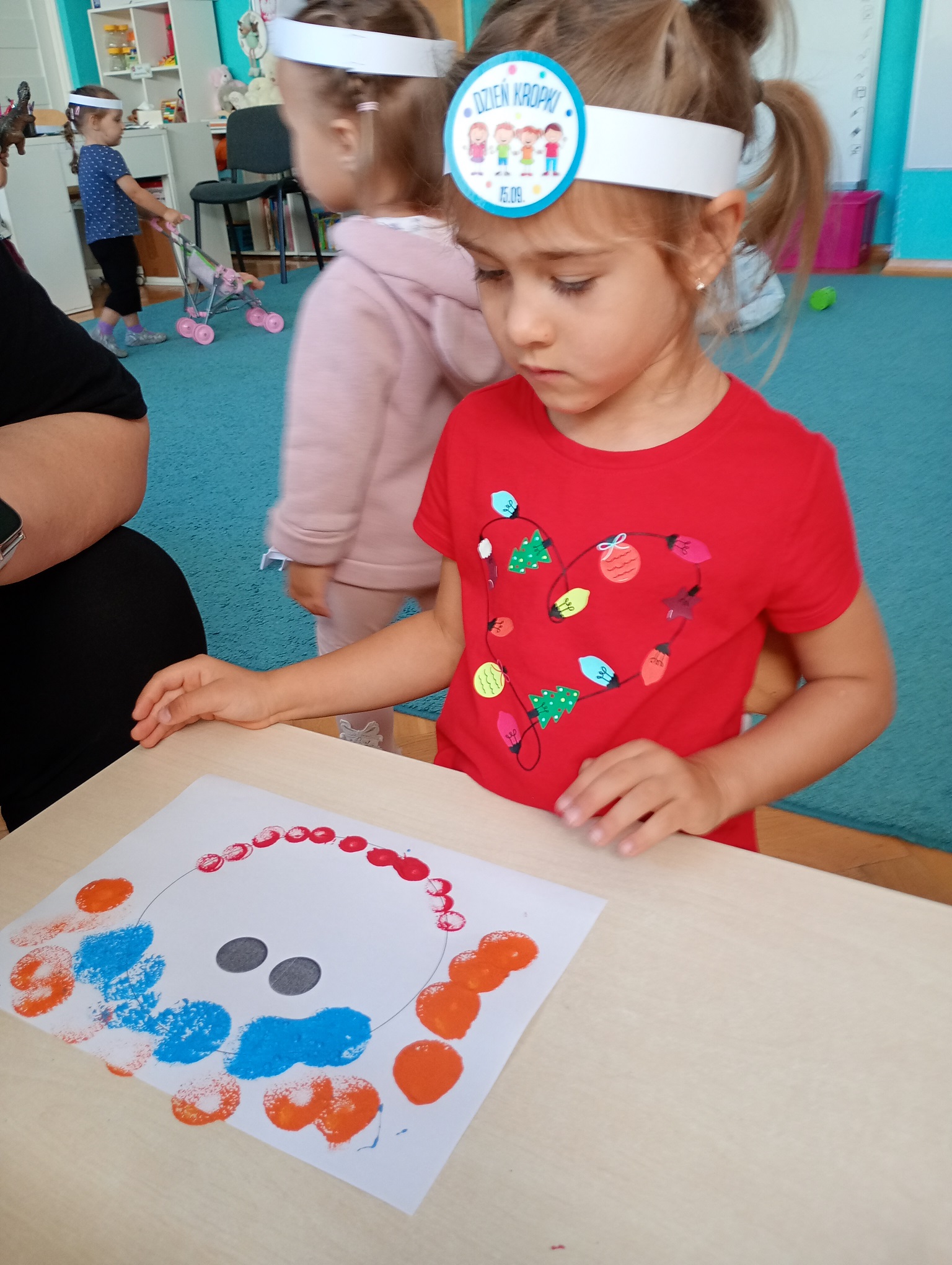 Nasze przedszkolaki już od rana weszły w „kropkowy” nastrój. Liczyliśmy kropki,szukaliśmy ich w różnych zakątkach sali, a także bawiliśmy się w gry i zabawy z kropkami w roli głównej.