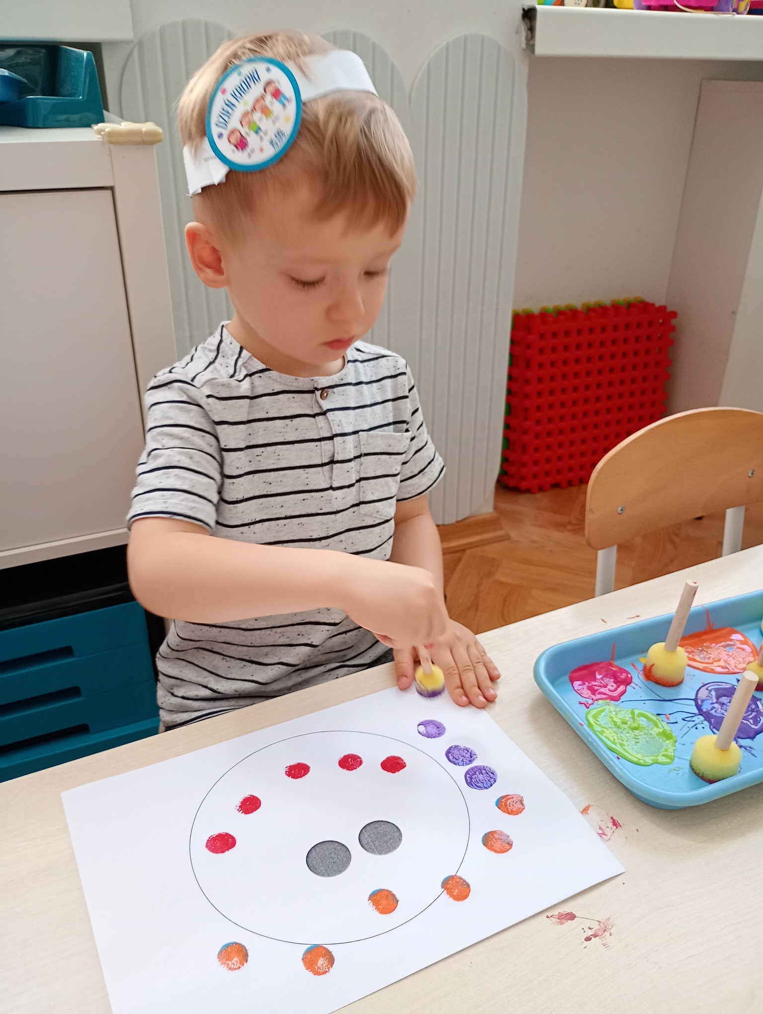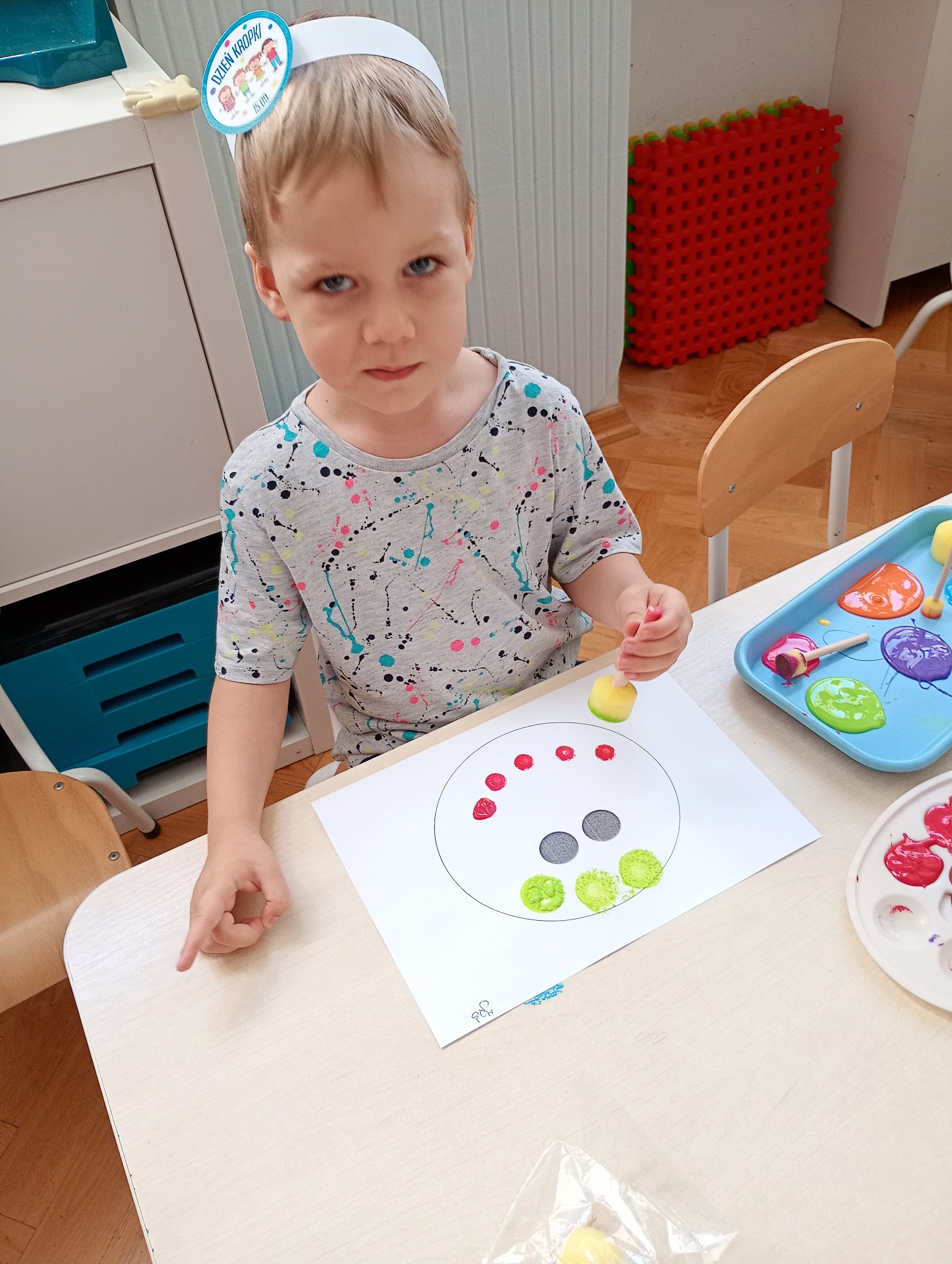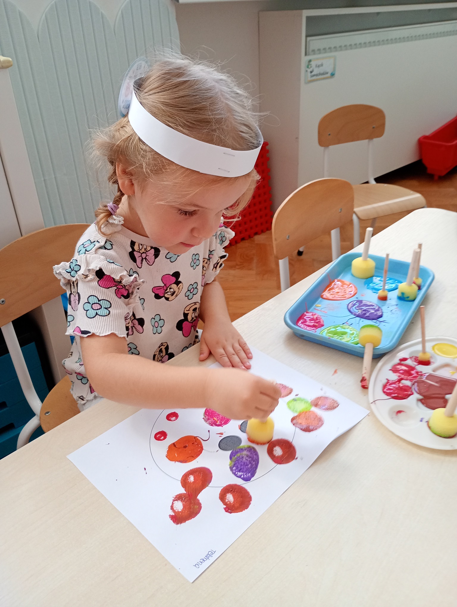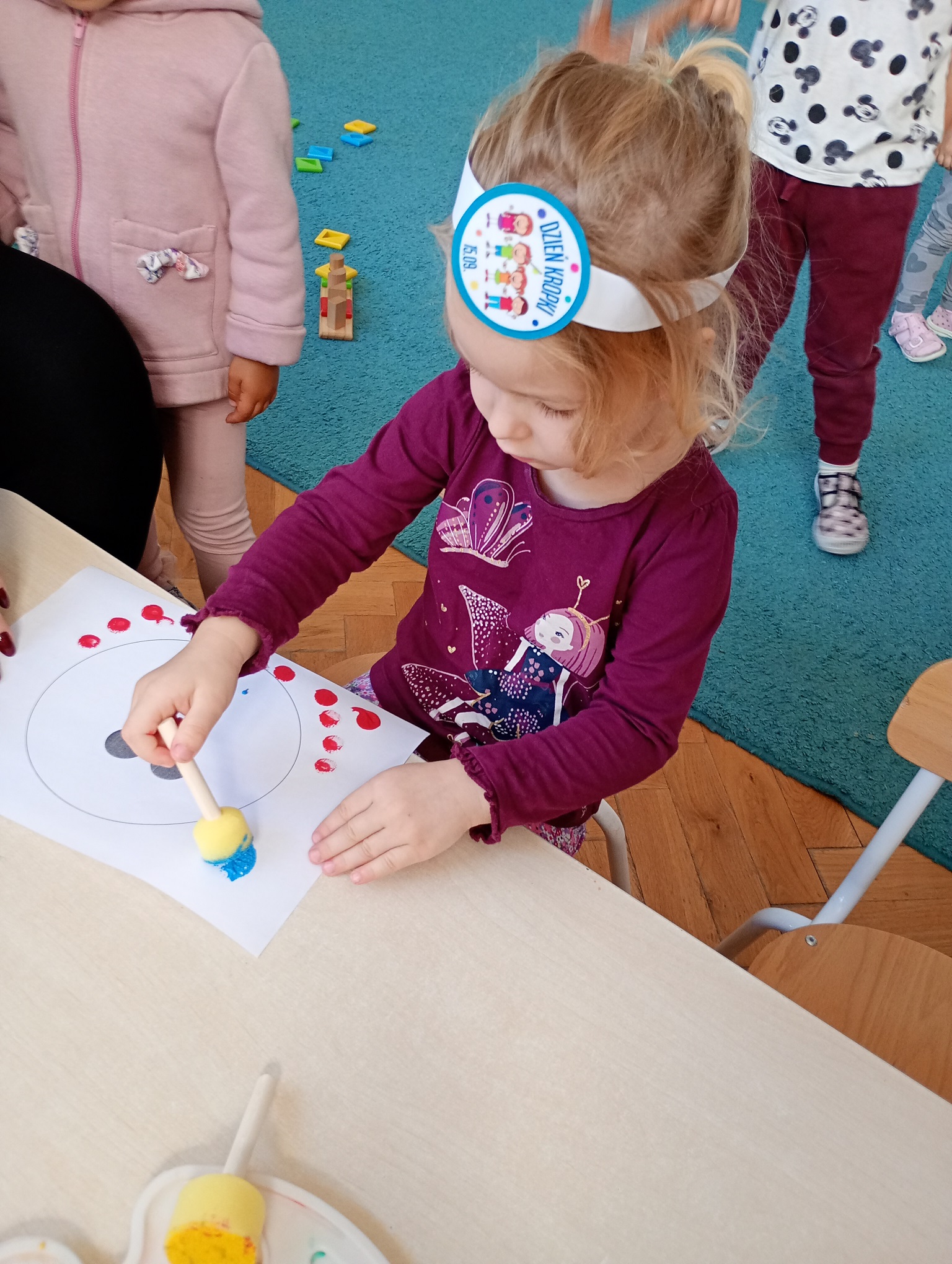 Na zakończenie dzieci stworzyły piękne, kolorowe prace plastyczne z kropek, które ozdobiły naszą przedszkolną galerię. Każda praca była inna – tak jak każde dziecko jest wyjątkowe