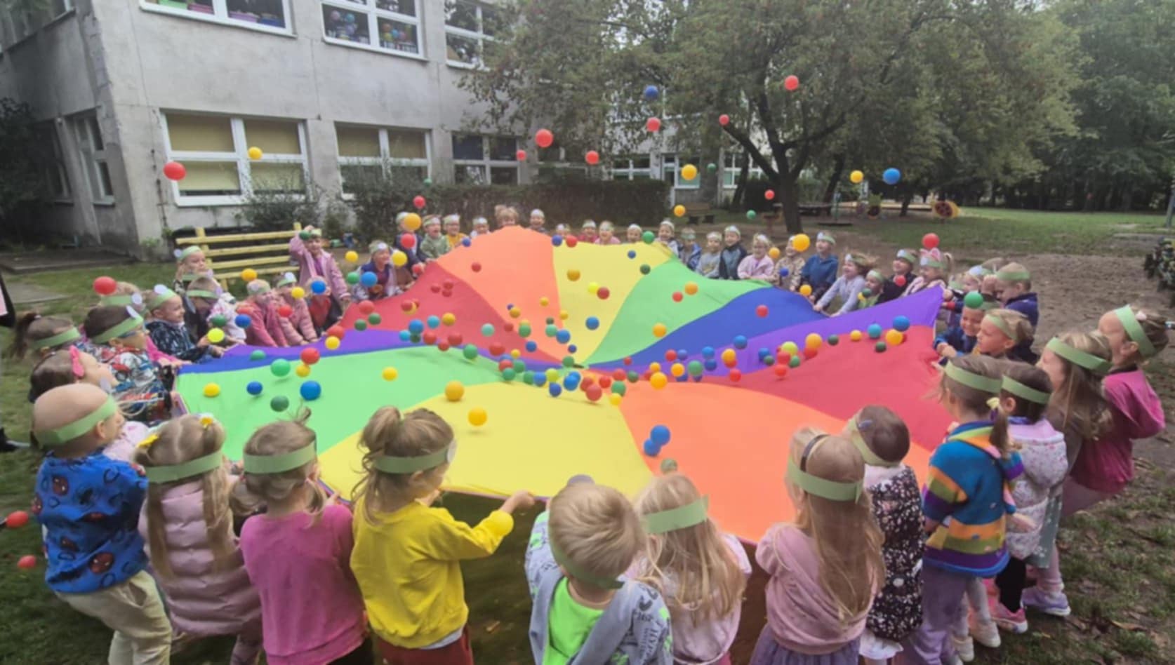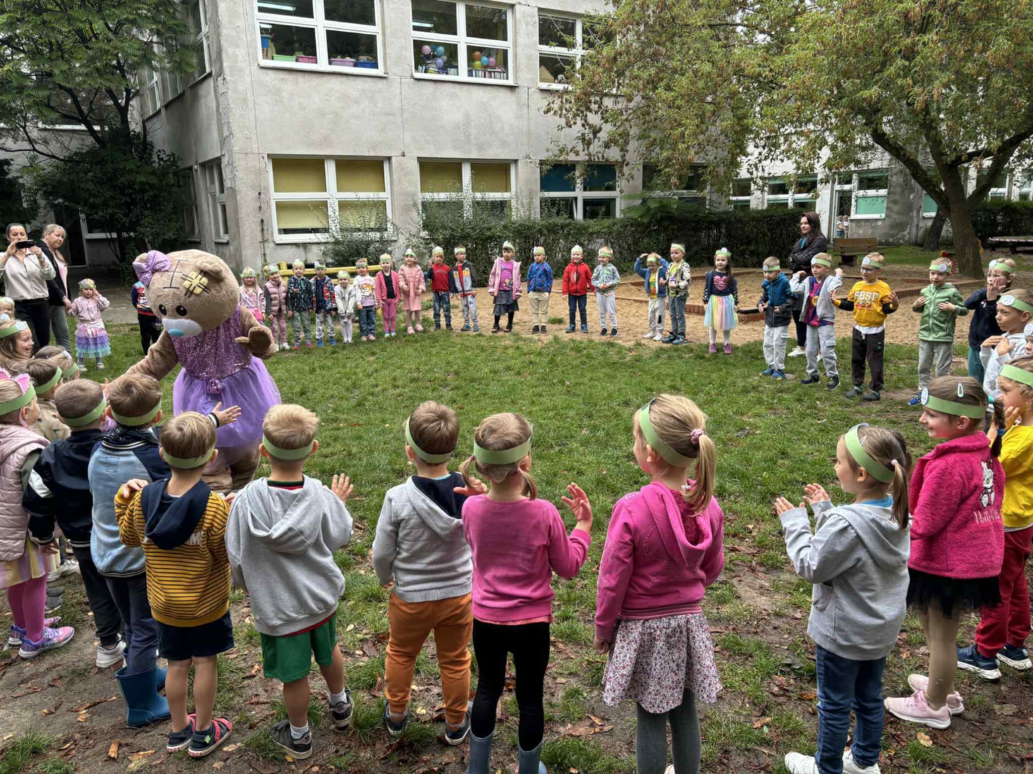 Dziś świętowaliśmy Dzień Przedszkolaka! To był dzień pełen radości, ruchu i wspólnej zabawy. Spędziliśmy czas na świeżym powietrzu, bawiąc się z chustą animacyjną i wyrzucając kolorowe piłeczki. Były tańce, śmiech i mnóstwo pozytywnej energii. Nie zabrakło też wyjątkowego gościa – odwiedził nas miś, który przybił z dziećmi piątki i wspólnie tańczył. To był naprawdę wspaniały dzień, pełen uśmiechów i dobrej zabawy.