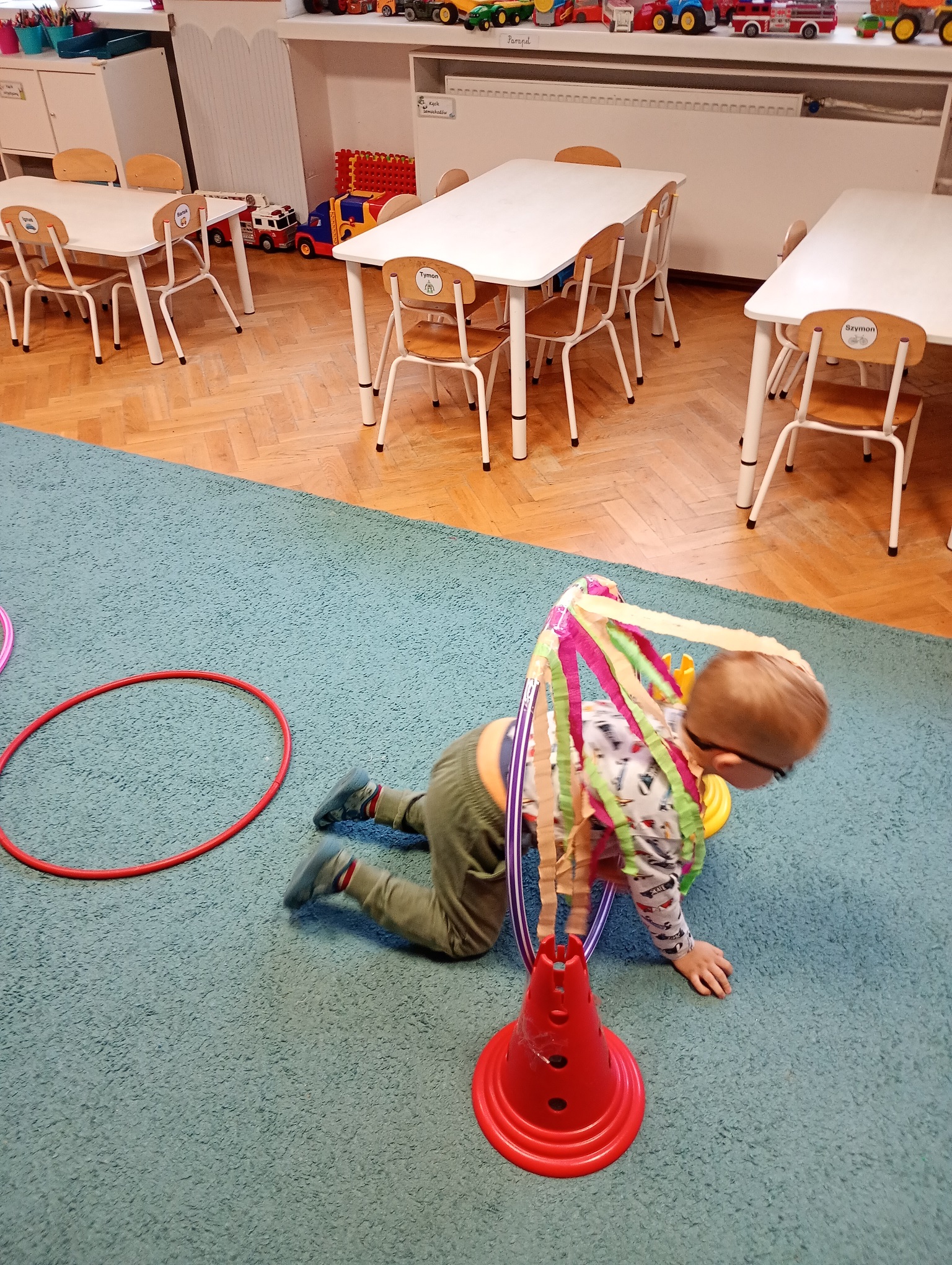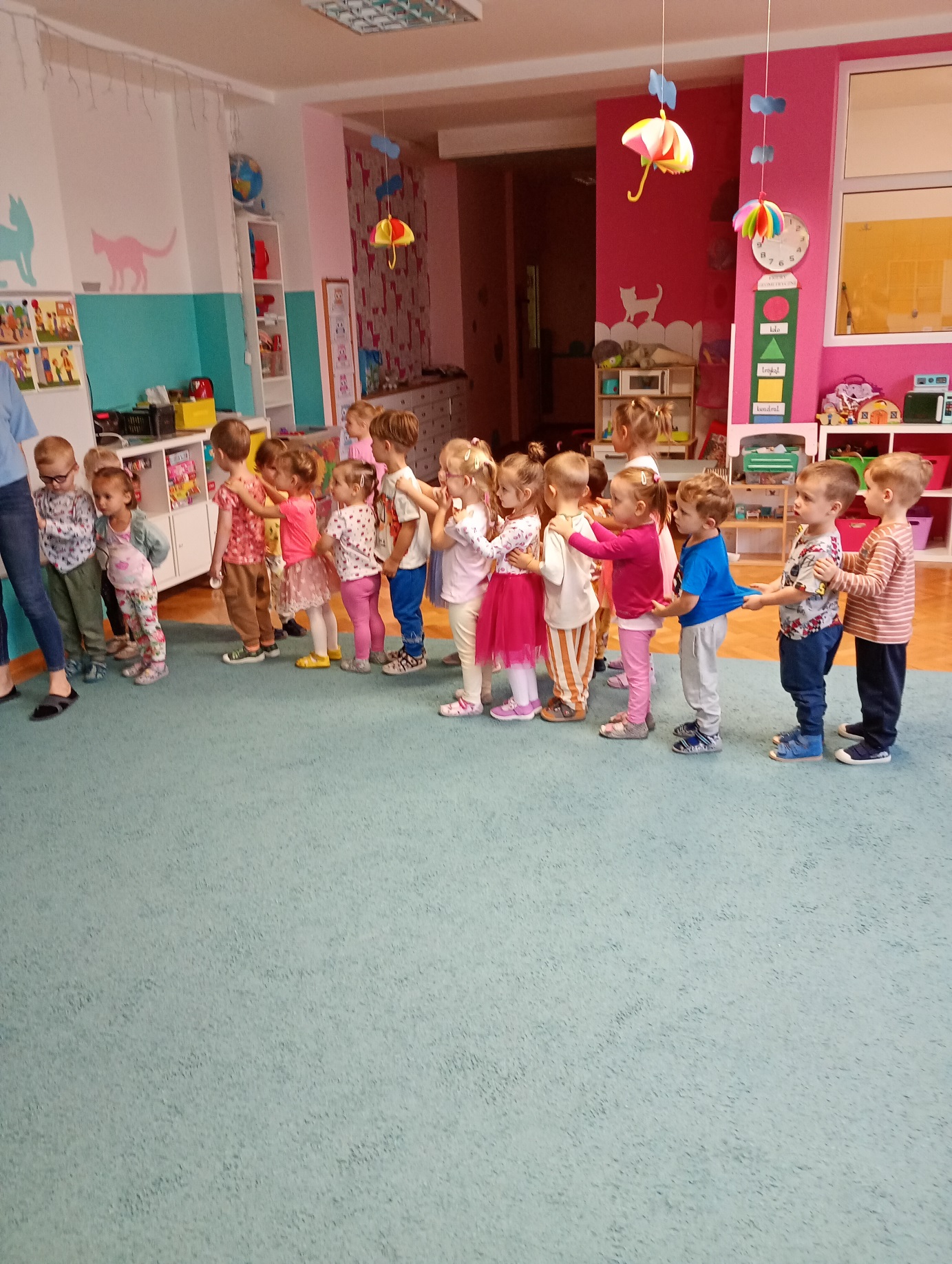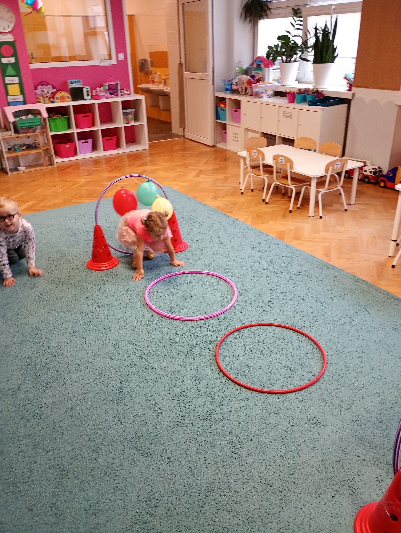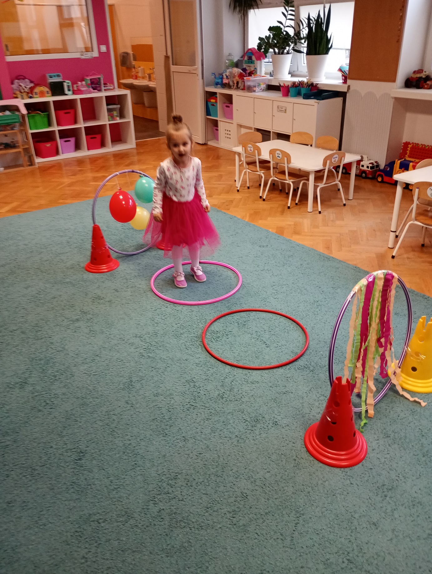 Był to prawdziwie kolorowy dzień, pełen śmiechu, radości i niezapomnianych wrażeń. Dzieci uczestniczyły w różnorodnych aktywnościach przygotowanych specjalnie na tę okazję. Czekał na nie m.in. tor przedszkolaka, zabawy muzyczno-ruchowe, wesoły pociąg oraz zabawy naśladowcze, które sprawiły wszystkim mnóstwo frajdy.