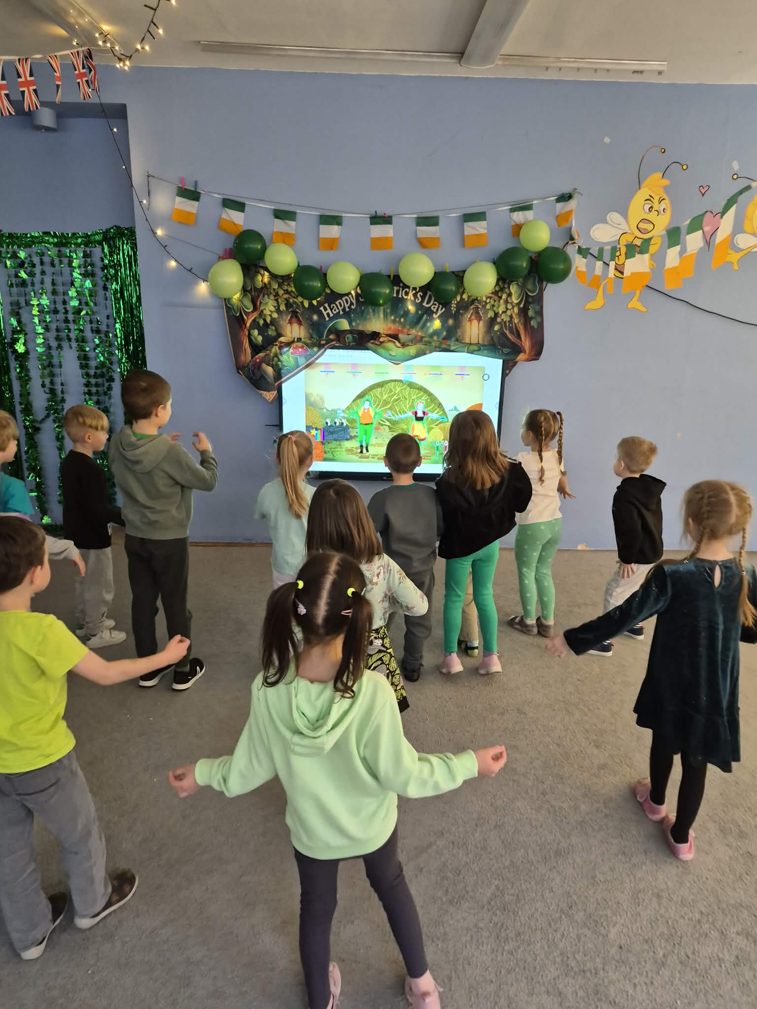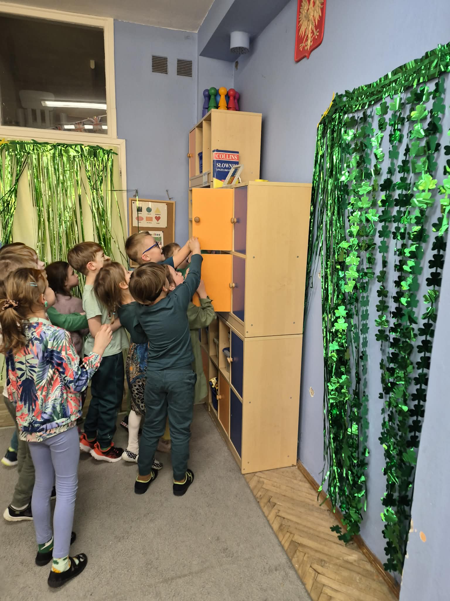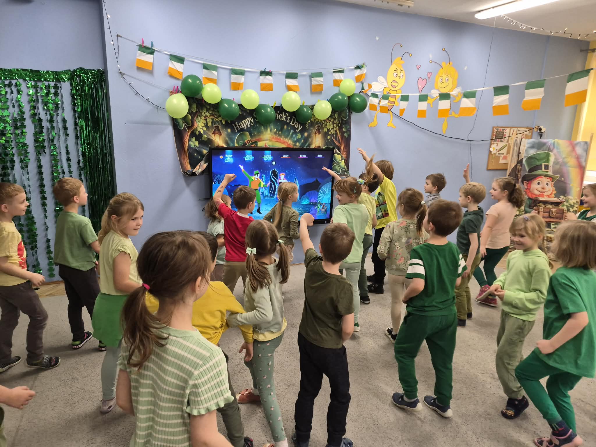 W ostatnim tygodniu poznaliśmy bliżej Irlandię, jej symbole, przyrodę i zwyczaje. Znamy już historię jej patrona, św. Patryka. Uczyliśmy się następujących słów: lepreachun, rainbow, snake, pot of gold, shamrock. Wspólnie śpiewaliśmy też piosenkę "I'm a Little Leprechaun". W dniu św. Patryka urządziliśmy sobie poszukiwania skarbu irlandzkiego krasnala. Szukanie wskazówek i rozwiązywanie zagadek bardzo spodobało się dzieciom. Na koniec uczyliśmy się również tańca irlandzkiego co wywołało dużo śmiechu.