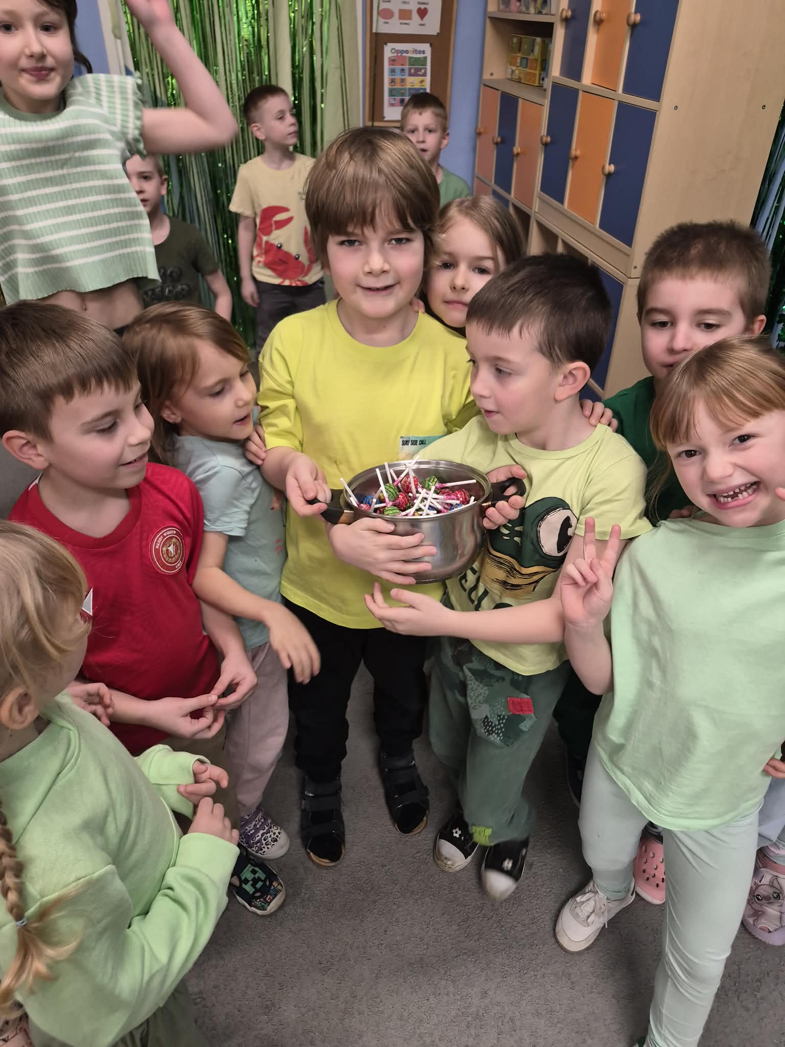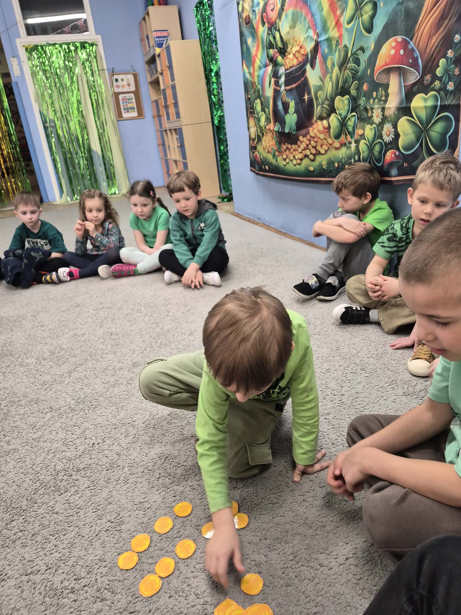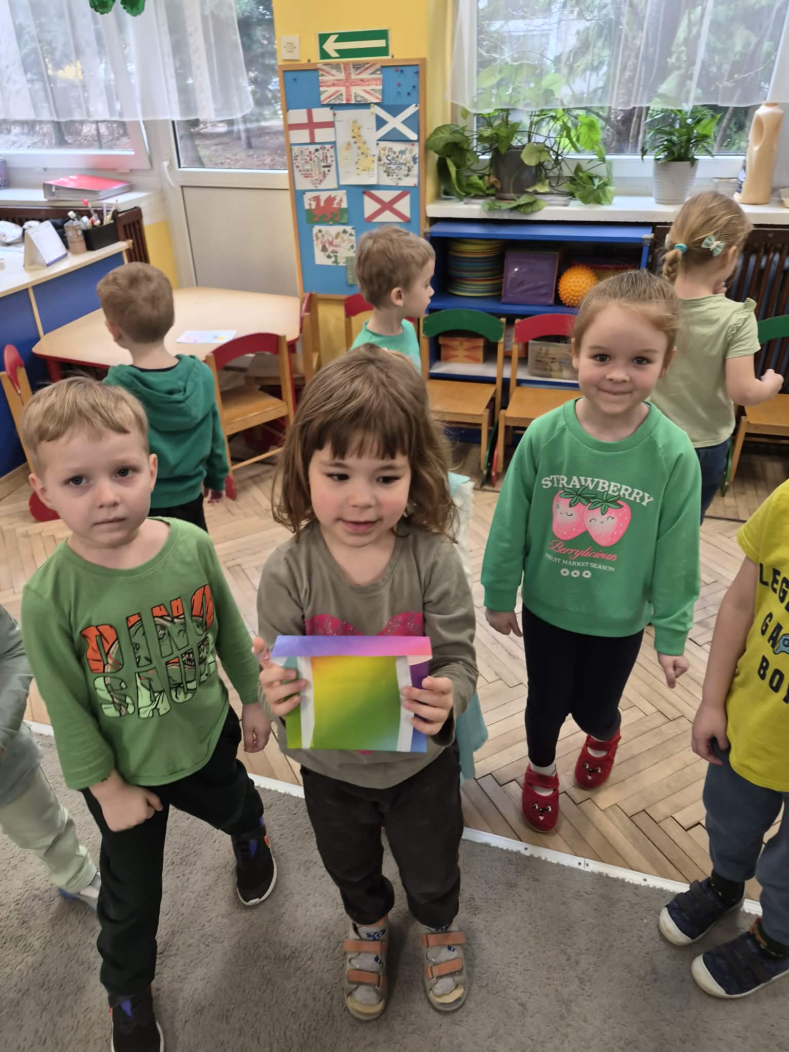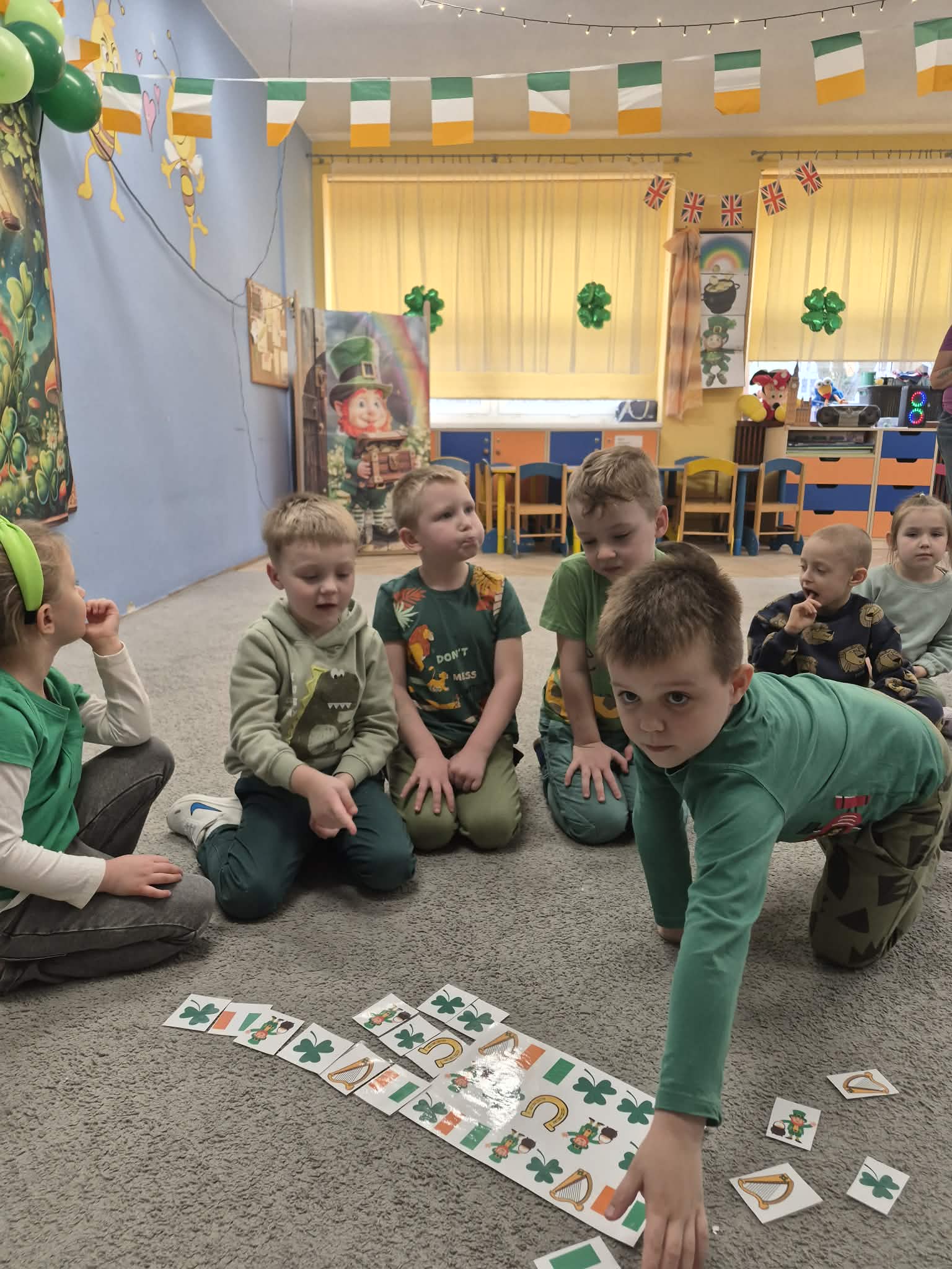 W ostatnim tygodniu poznaliśmy bliżej Irlandię, jej symbole, przyrodę i zwyczaje. Znamy już historię jej patrona, św. Patryka. Uczyliśmy się następujących słów: lepreachun, rainbow, snake, pot of gold, shamrock. Wspólnie śpiewaliśmy też piosenkę "I'm a Little Leprechaun". W dniu św. Patryka urządziliśmy sobie poszukiwania skarbu irlandzkiego krasnala. Szukanie wskazówek i rozwiązywanie zagadek bardzo spodobało się dzieciom. Na koniec uczyliśmy się również tańca irlandzkiego co wywołało dużo śmiechu.