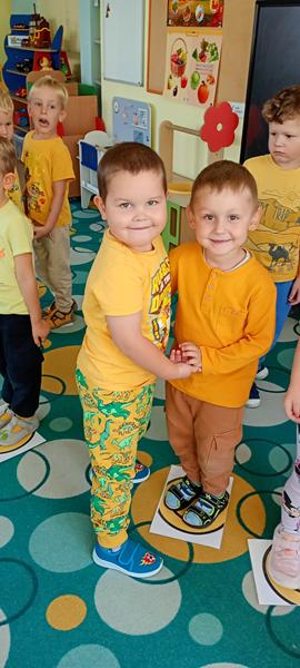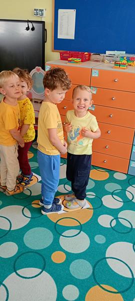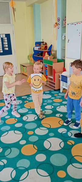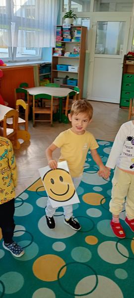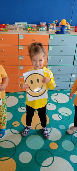 Dzisiaj w Tygryskach odbyło się radosne wydarzenie,wybraliśmy się w podróż za jeden uśmiech i świętowaliśmy Dzień Uśmiechu. Celem zajęć było uświadomienie dzieciom, że uśmiech ma wielką moc. Przekazaliśmy sobie pozytywną energię, bawiąc się przy piosence Uśmiecham się, była też gimnastyka uśmiechu, dzieci robiły wesołe miny. Tygryski opowiadały co im sprawia największą radość. Utrwalały pojęcie para w zabawie ruchowej.