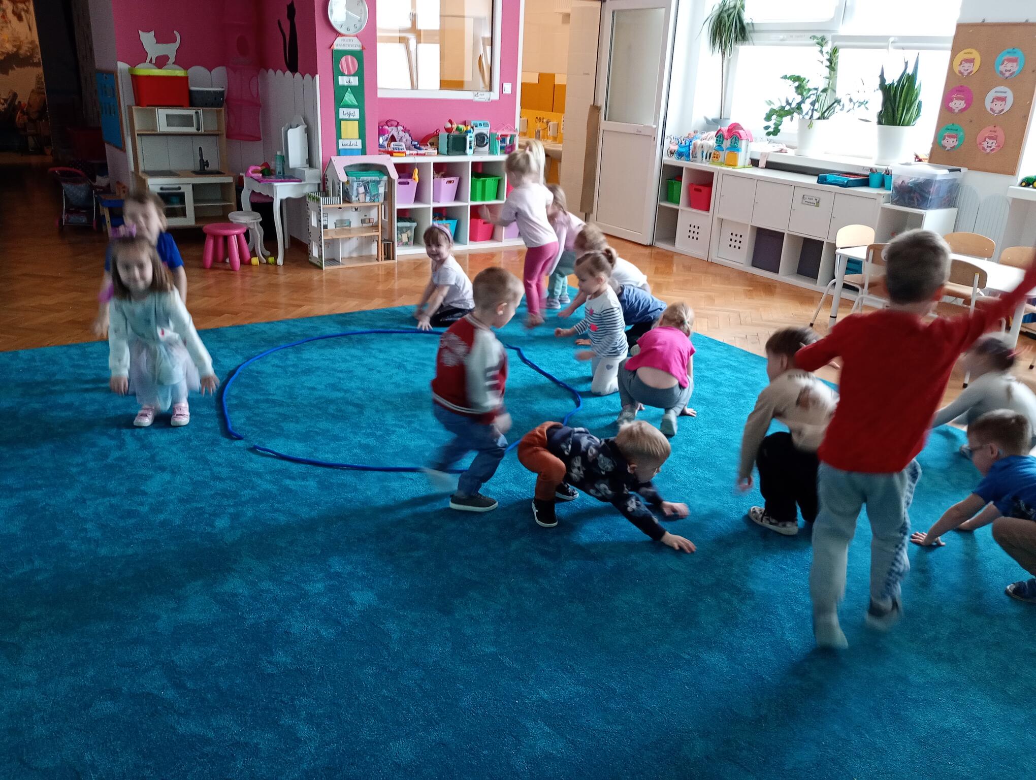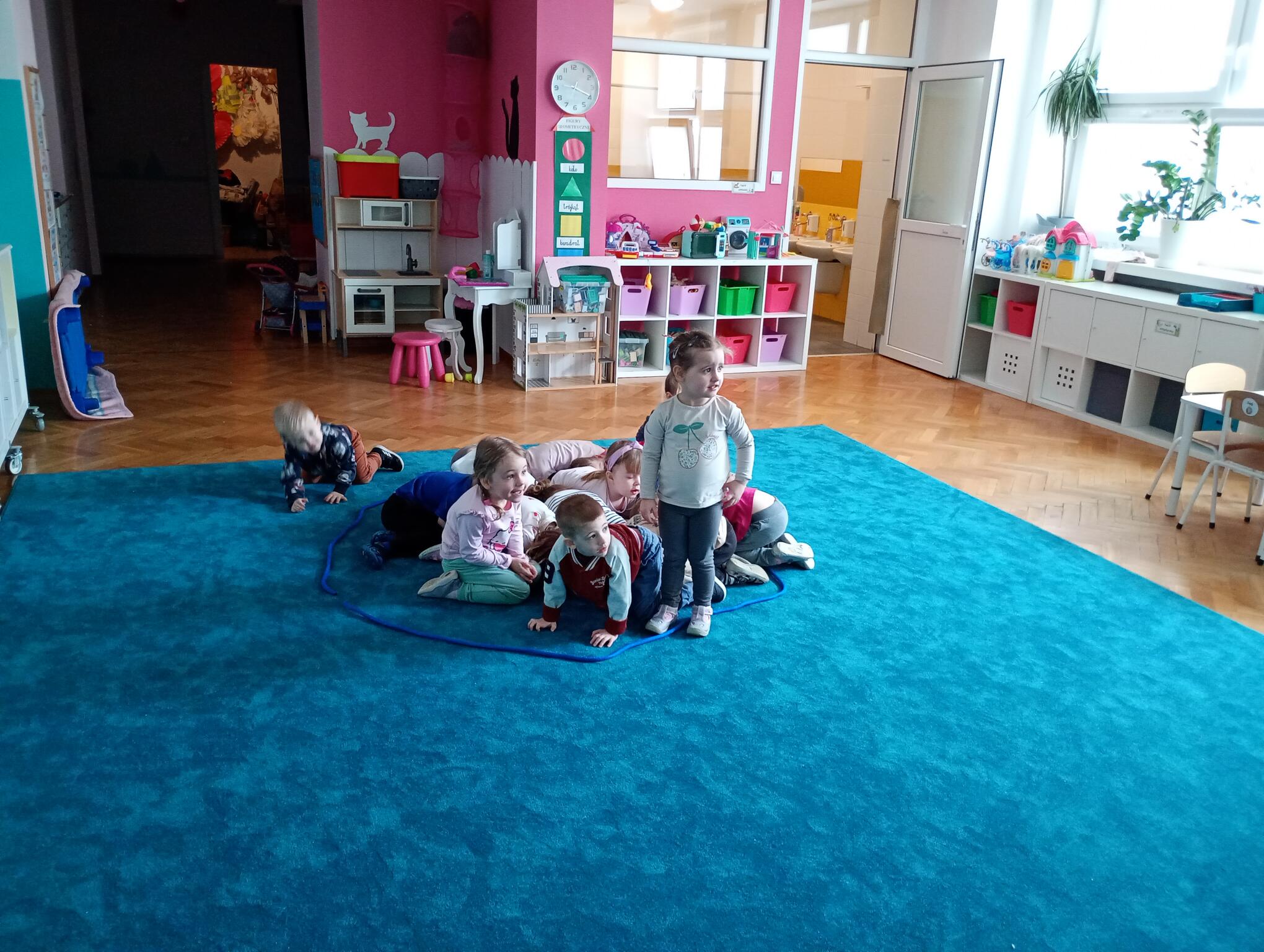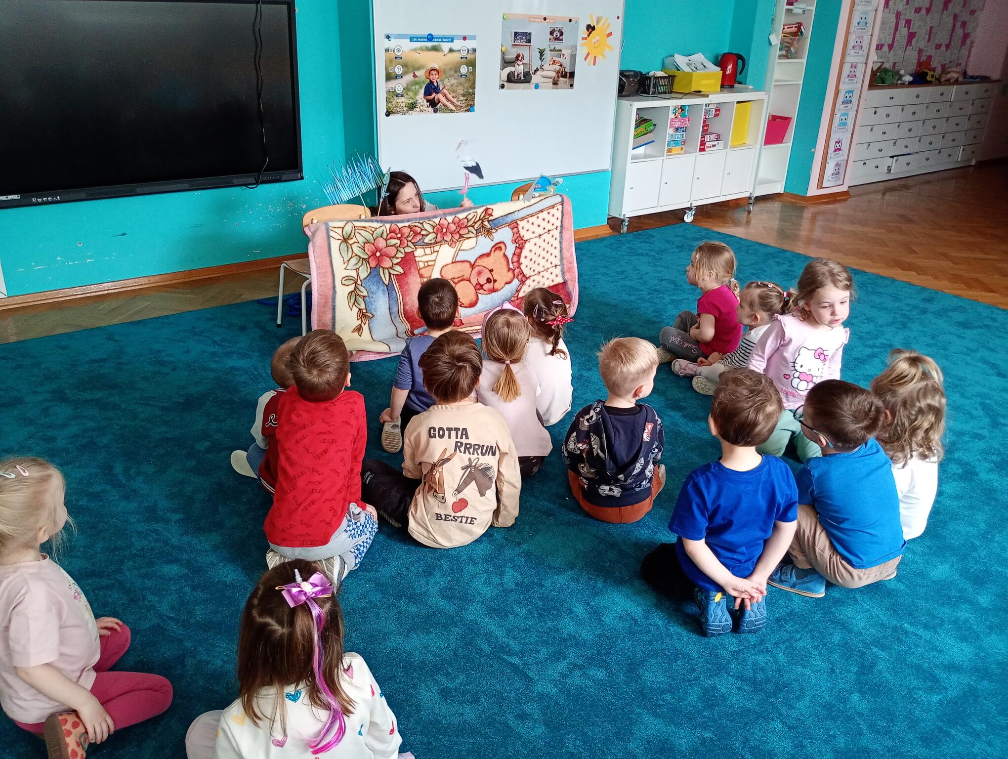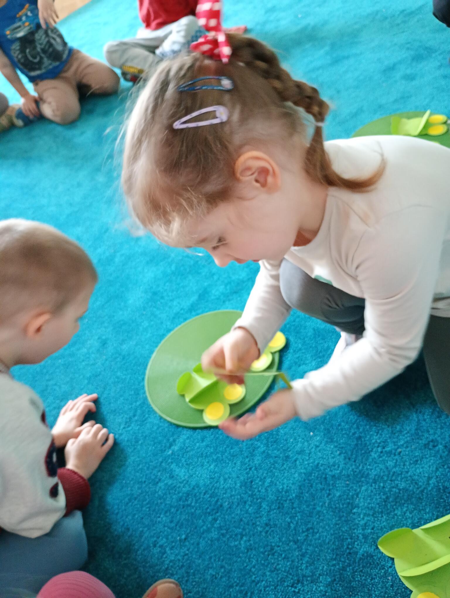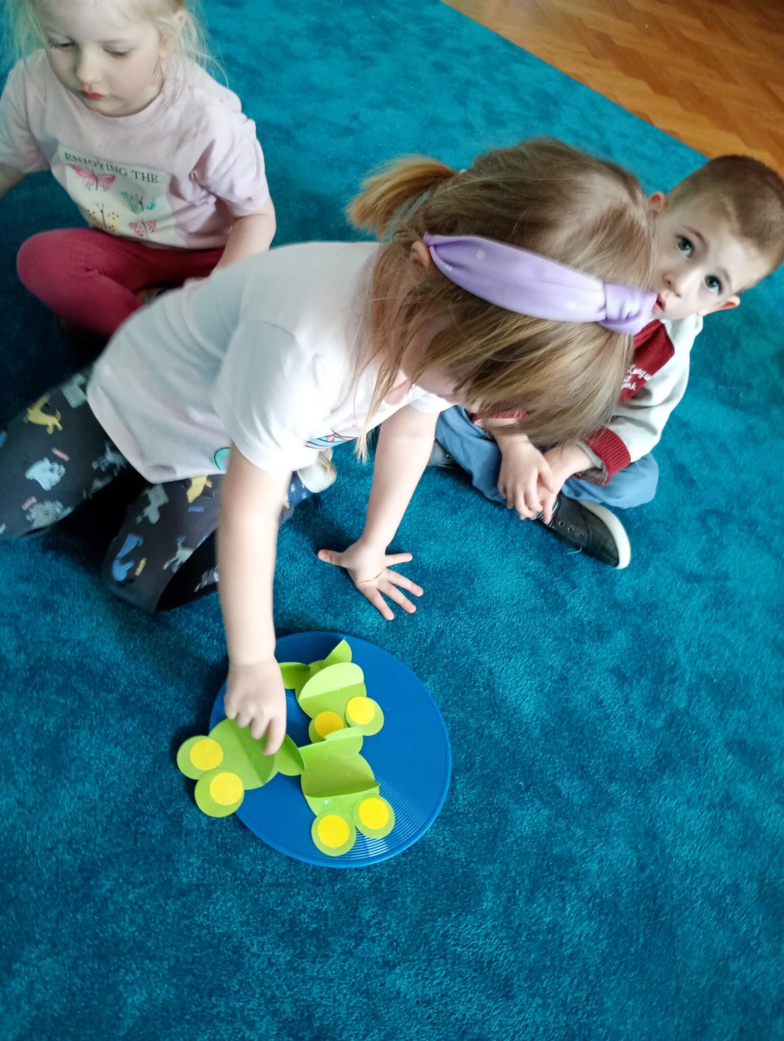 Dzisiaj w grupie "Kotków" dzieci świętowały Dzień Żaby. Maluszki słuchały wiersza "Zielona żabka" B. Formy ilustrowanego sylwetami bohaterów podczas teatrzyku, bawiły się w zabawy matematyczne z sylwetami żabek i w zabawy ruchowe. Na koniec maluszki wykonały tematyczną pracę plastyczną.