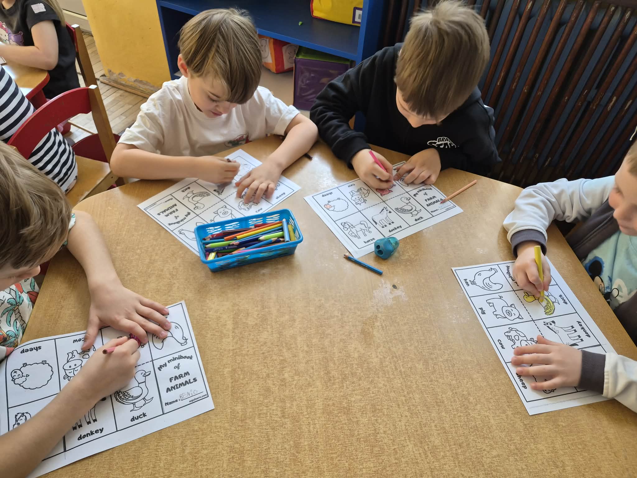 Ostatnio uczyliśmy się o życiu na wsi. Poznaliśmy następujące nazwy zwierząt zamieszkujących farmę; cow - krowa, horse - koń, pig - świnia, donkey - osioł, goat - koza, hen- kura, duck - kaczka, sheep - owca. Bawiliśmy się do piosenki "Old Mcdonald had a farm". Ćwiczyliśmy nasz słuch podczas zabaw z zagadkami dźwiękowymi. Dzieci chętnie bawiły się w kalambury i zabawy ruchowe. Na koniec tygodnia wybraliśmy się na wirtualny spacer po wiejskiej zagrodzie.