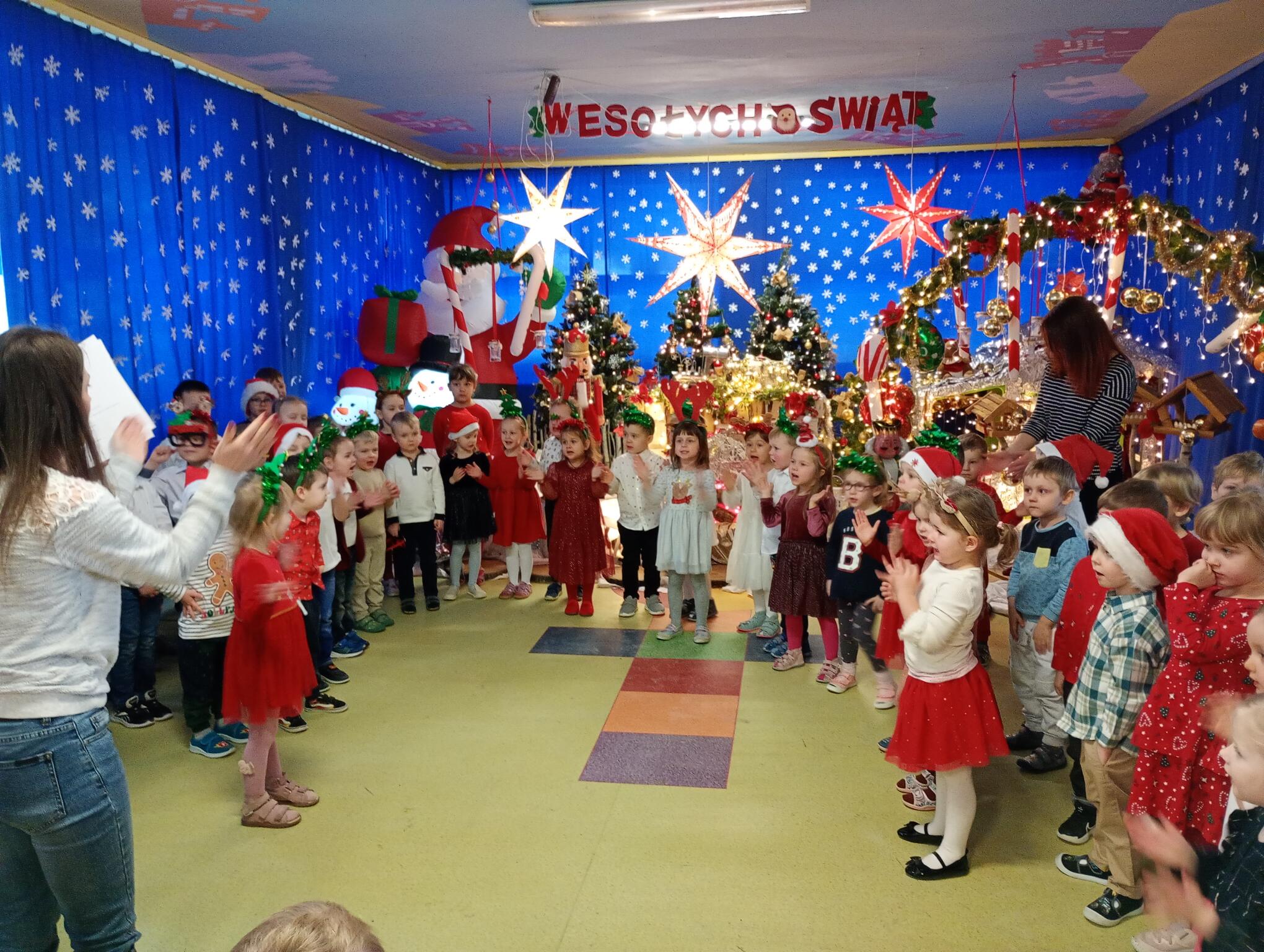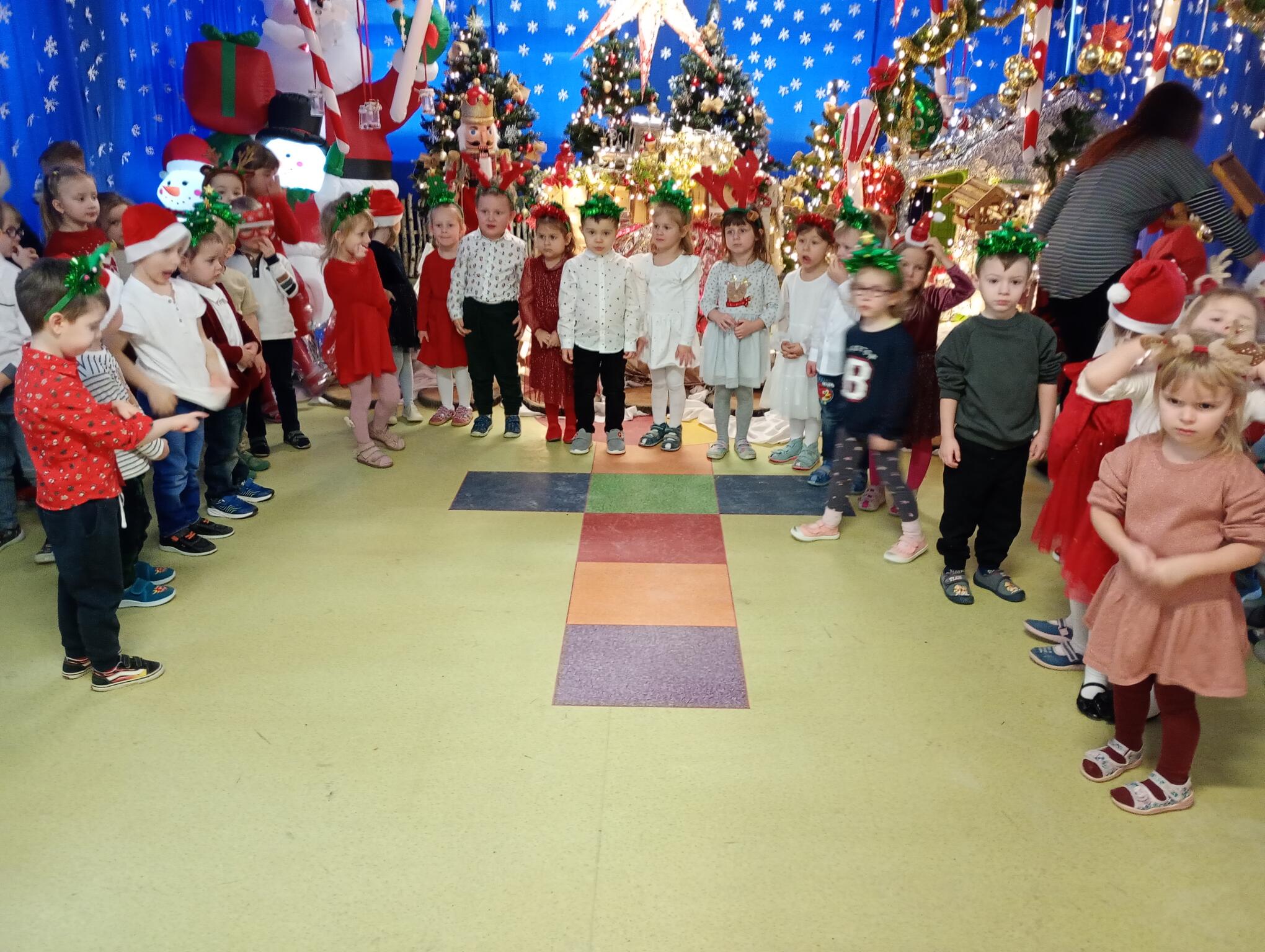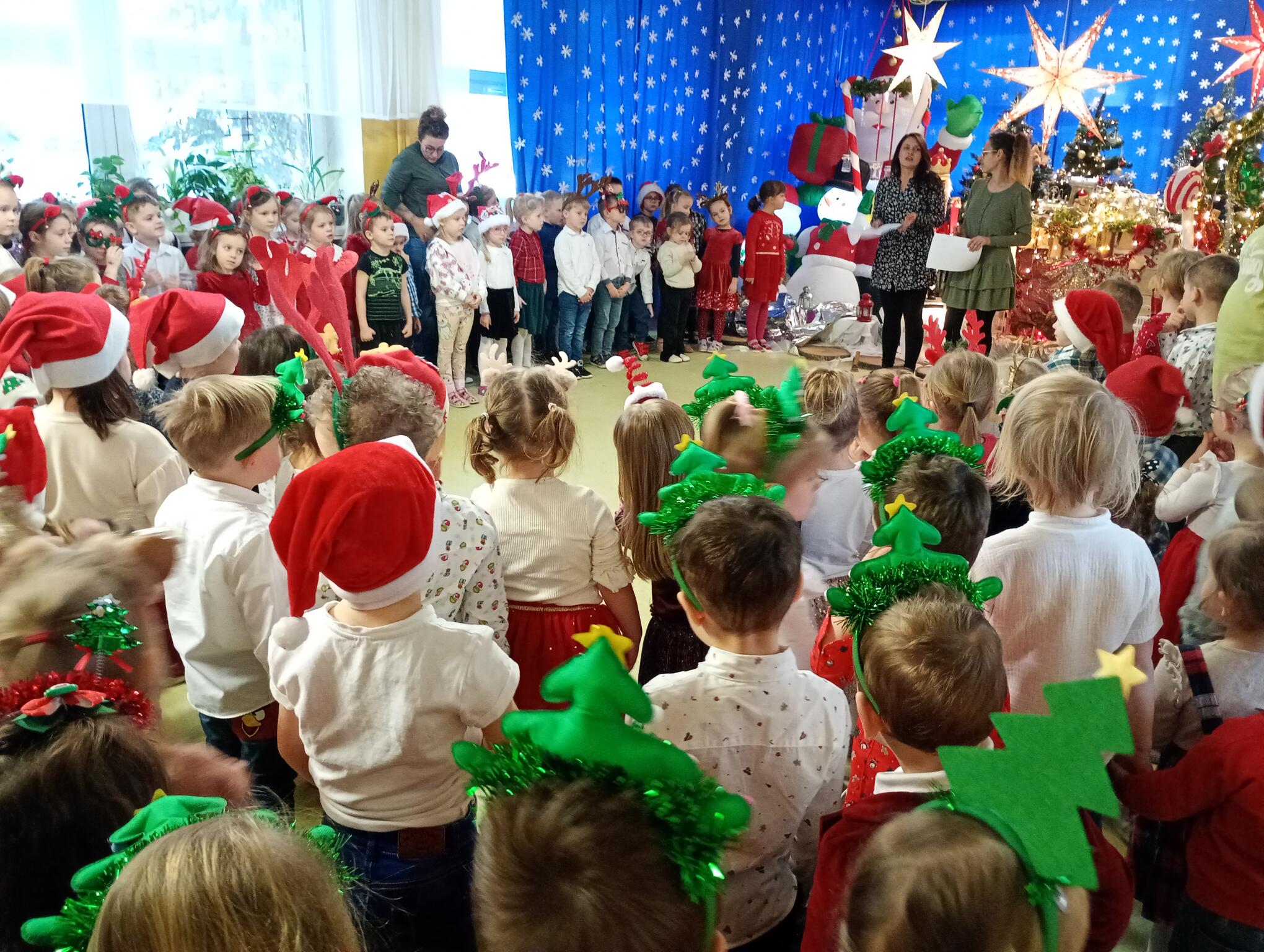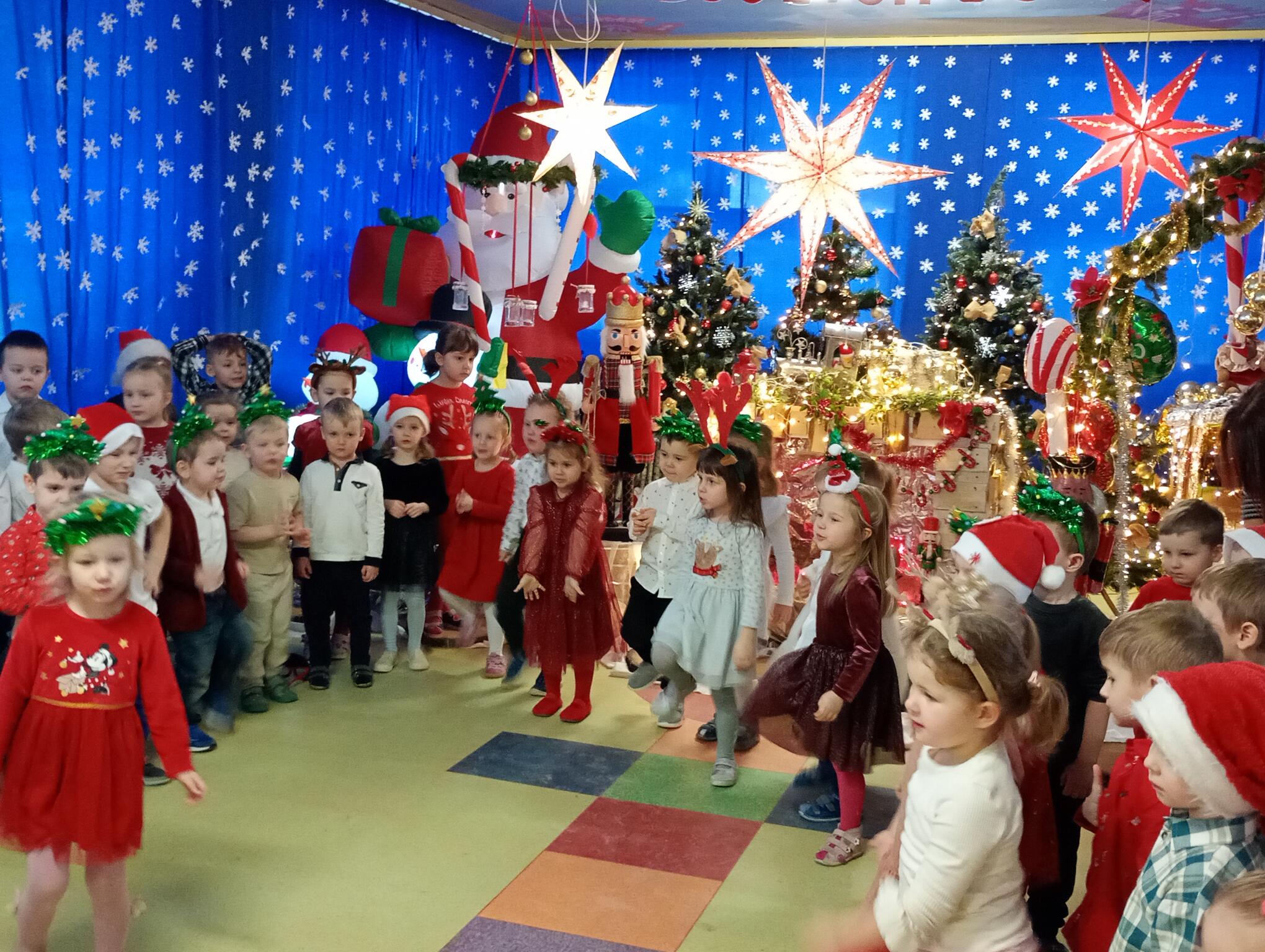 Dziś w naszym przedszkolu odbył się Festiwal Kolęd i Pastorałek. Każda grupa zaprezentowała się wszystkim, śpiewając świąteczną piosenkę. Puchatki, ubrane w stroje świąteczne, również zaśpiewały piosenkę o choineczkach.