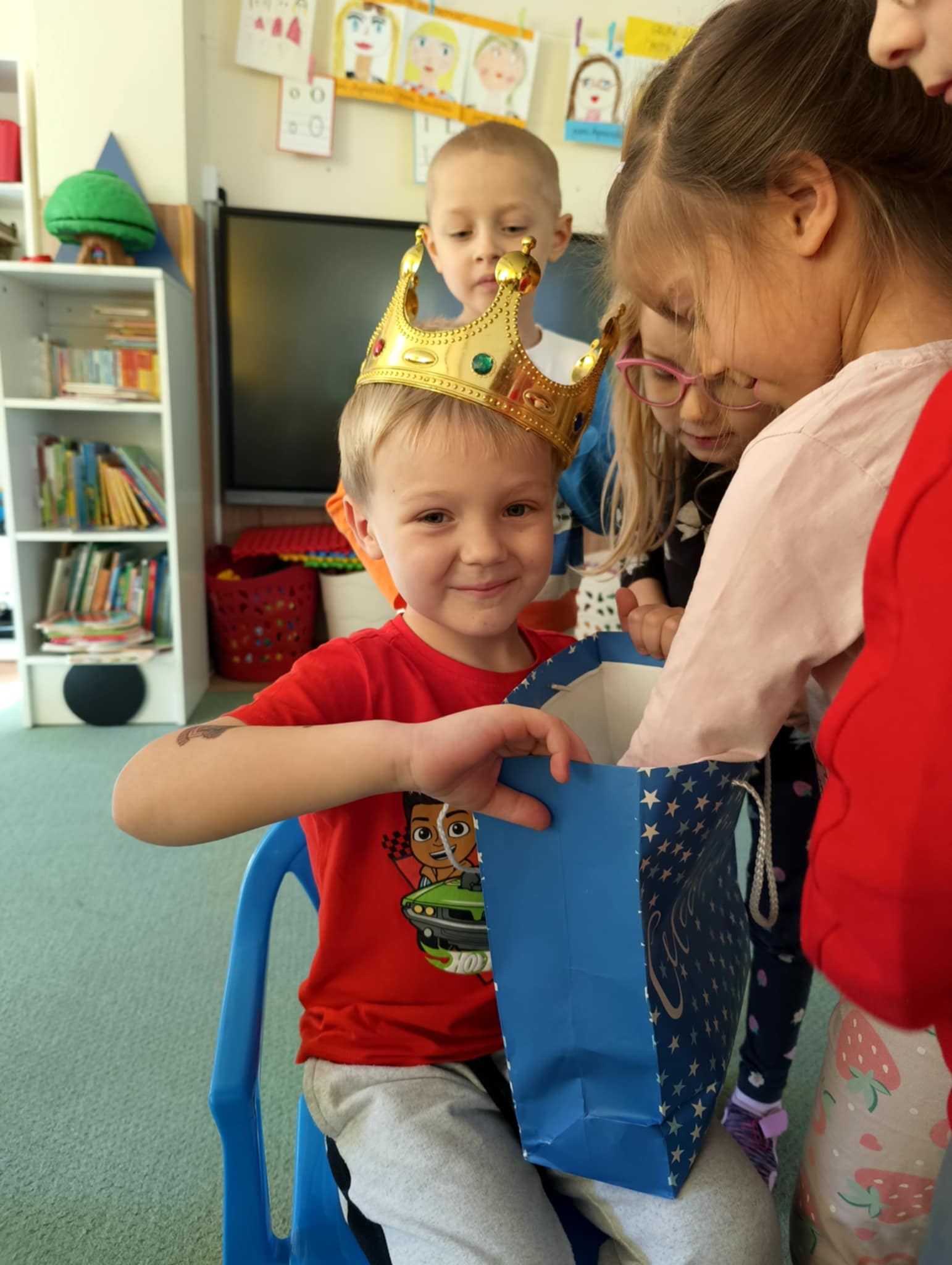 Dziś w naszej grupie świętowaliśmy imieniny Gabrysia. Były życzenia, wspólne zabawy i słodki poczęstunek. Dzieci z radością śpiewały "Sto lat" i przygotowały dla solenizanta piękne laurki. To był dzień pełen uśmiechu i serdecznej atmosfery.
