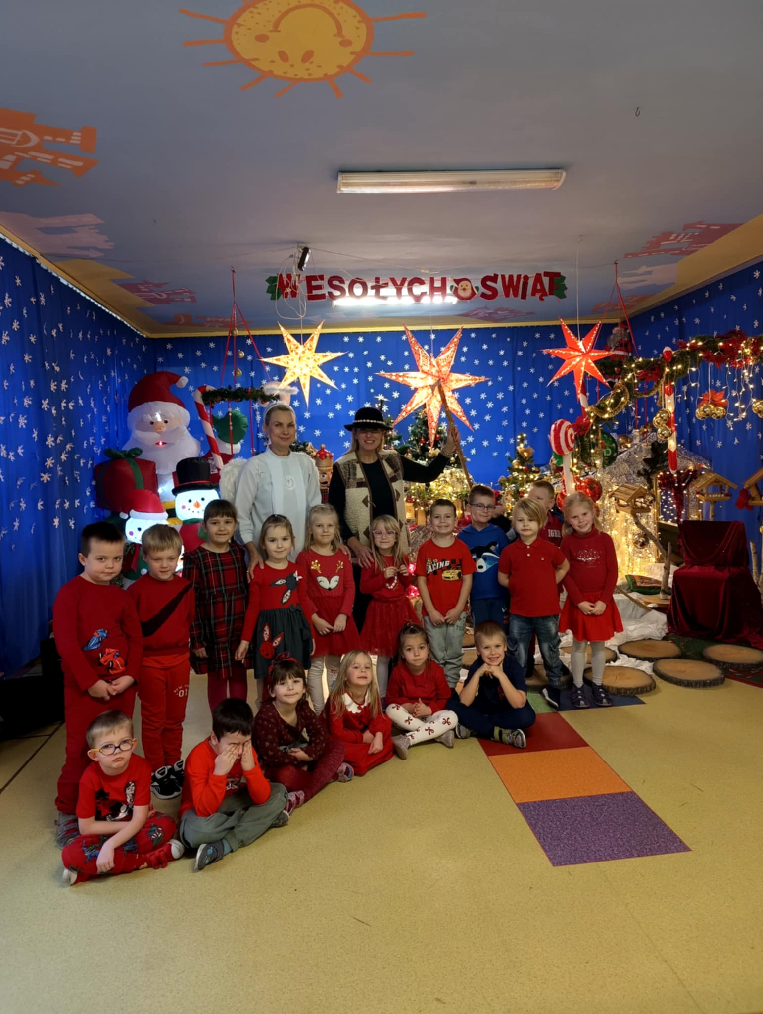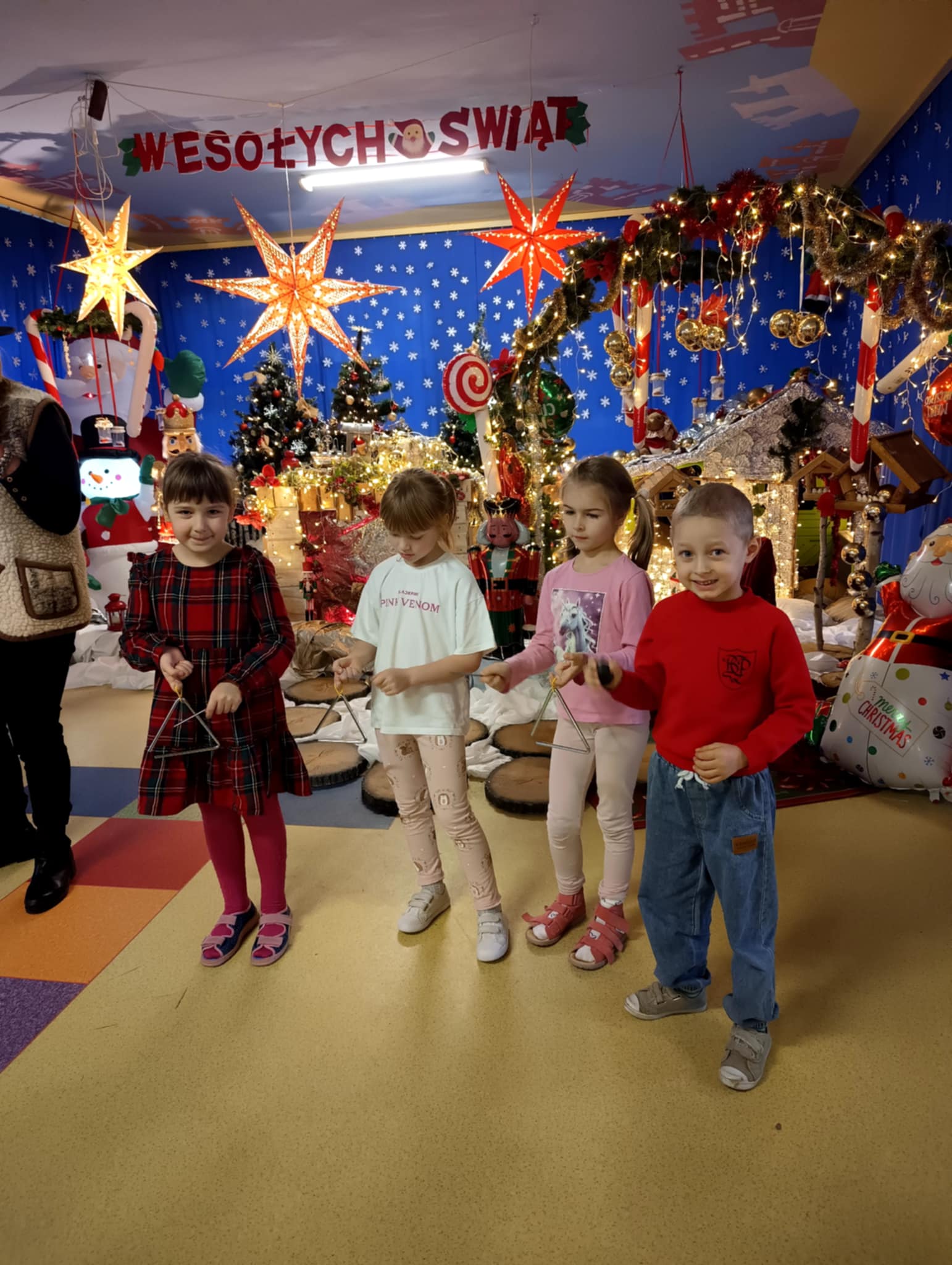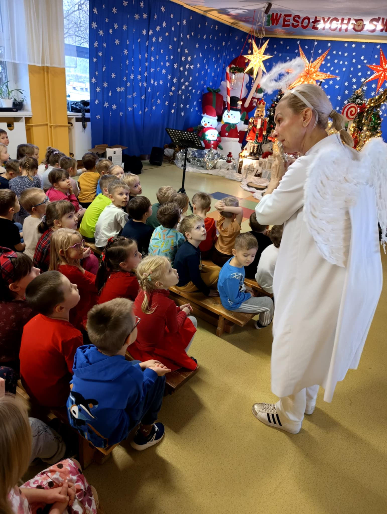 Nasze przedszkole odwiedziło Lawendowe Studio, które zabrało dzieci w wyjątkową, świąteczną podróż. Gościliśmy Anioła oraz Pasterza, którzy zaprezentowali piękne, nastrojowe przedstawienie bożonarodzeniowe. Podczas spotkania dzieci miały okazję wysłuchać kolęd i świątecznych melodii, którym towarzyszyła gra Anioła na flecie. Delikatne dźwięki instrumentu oraz ciepła opowieść wprowadziły wszystkich w magiczny, pełen spokoju i radości klimat Świąt Bożego Narodzenia. Było to niezwykle wartościowe i wzruszające wydarzenie, które pozwoliło dzieciom lepiej poczuć atmosferę świąt oraz poznać tradycję kolędowania. Dziękujemy Lawendowemu Studio za to piękne spotkanie pełne muzyki, refleksji i świątecznej magii