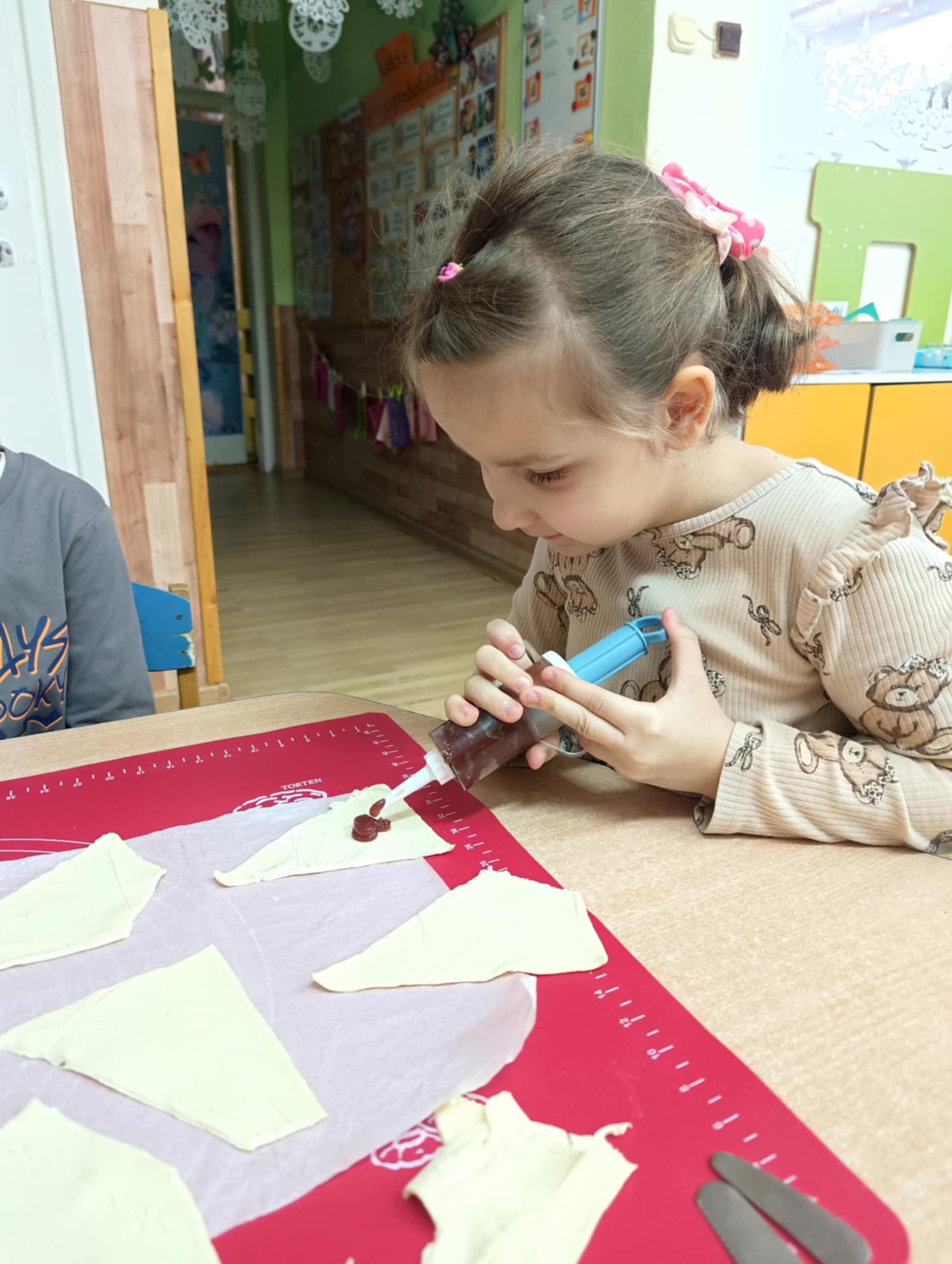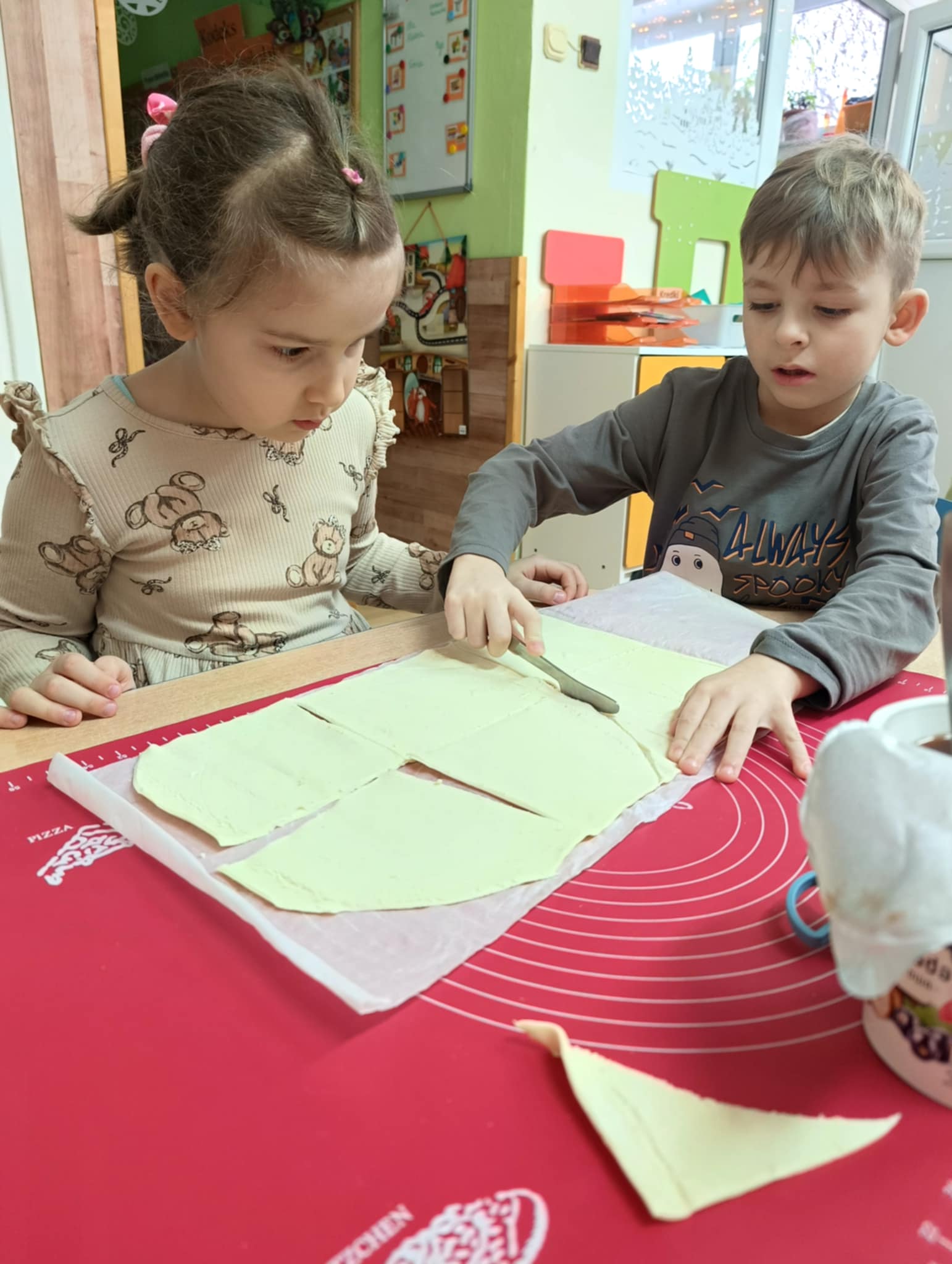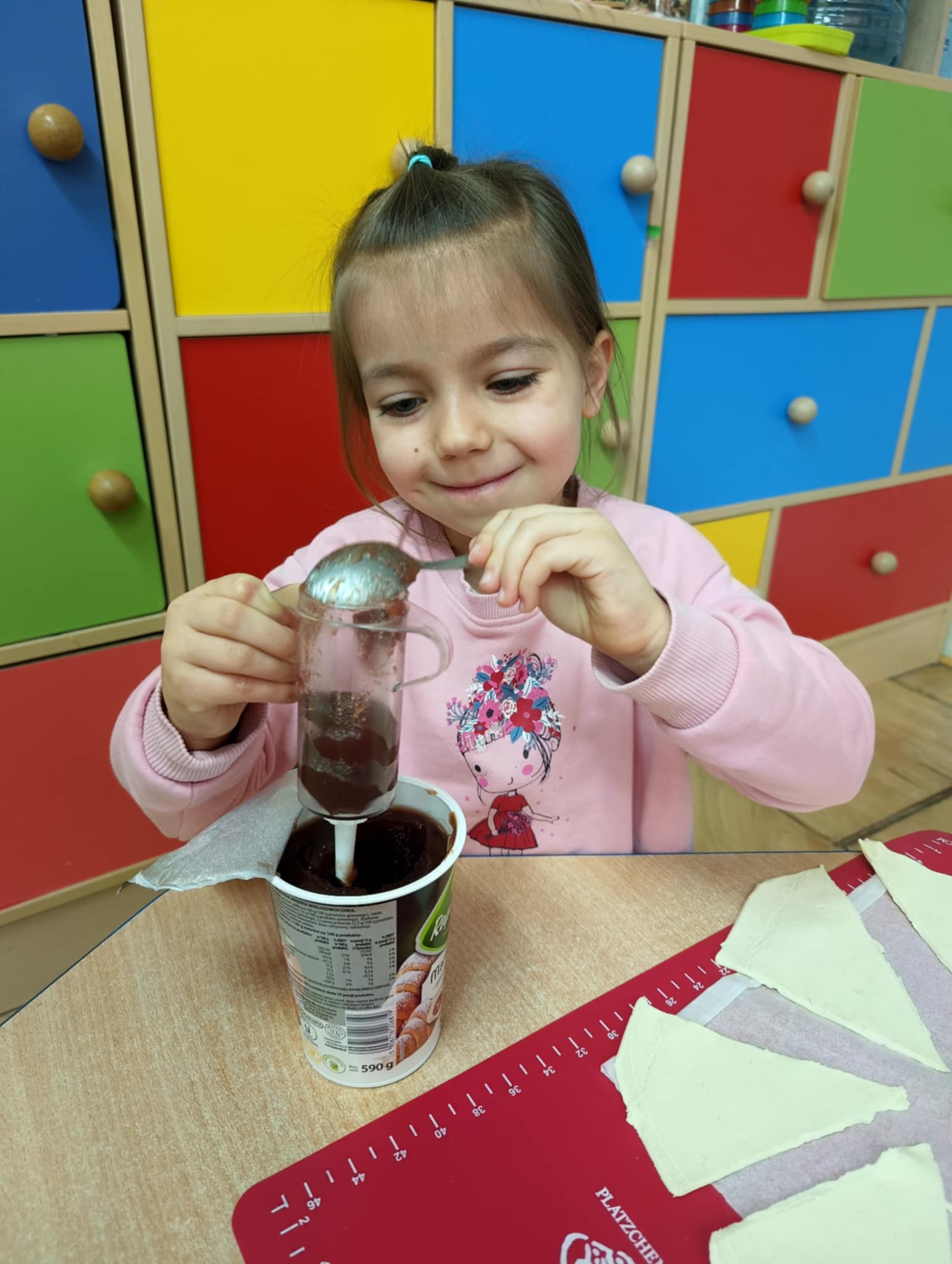 W naszym przedszkolu obchodziliśmy Międzynarodowy Dzień Rogalika, który był nie tylko pyszną, ale i bardzo radosną okazją do wspólnej zabawy. Podczas zajęć dzieci samodzielnie przygotowywały rogaliki – wyciskały dżem, skręcały ciasto i z ogromnym zaangażowaniem uczestniczyły w całym procesie pieczenia. Efektem naszej pracy były pyszne, pachnące rogaliki, które sprawiły dzieciom wiele radości i satysfakcji. To był dzień pełen uśmiechów, zapachu świeżych wypieków i wspaniałej zabawy!