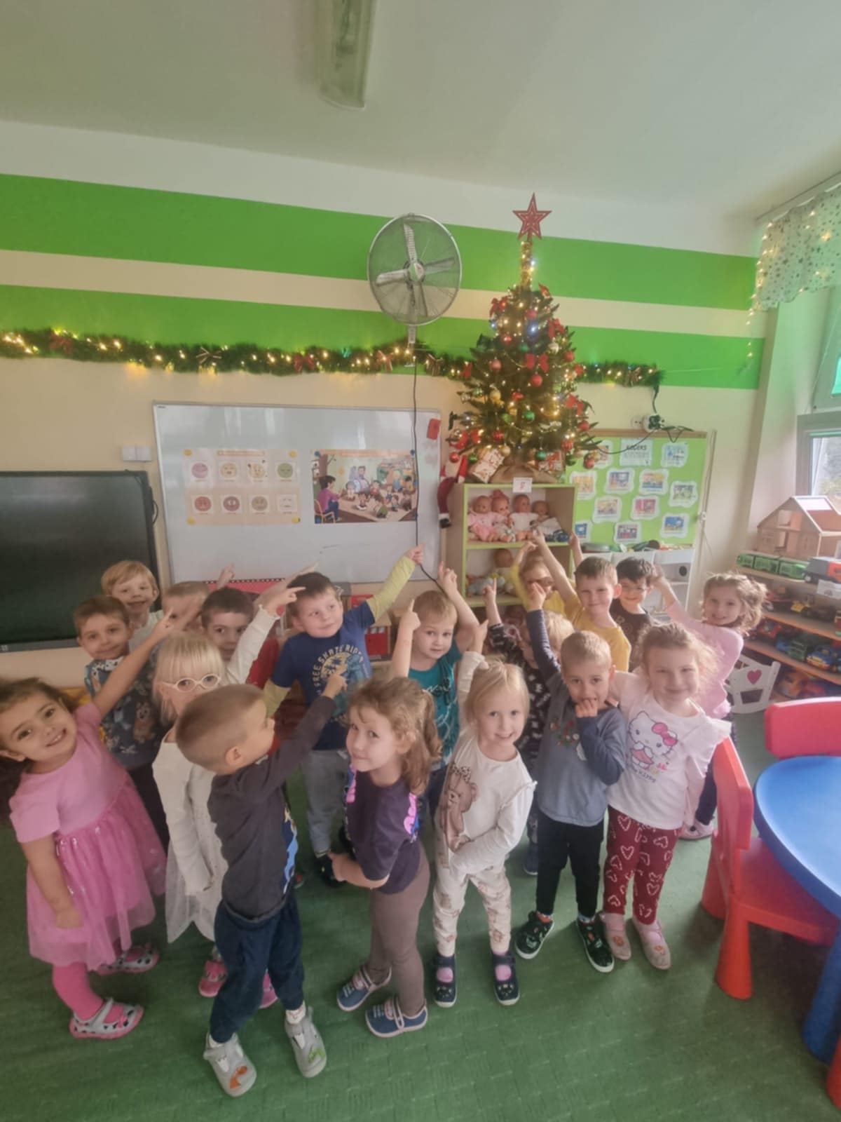 Wspólnie ubieraliśmy naszą grupową choineczkę. Dzieci z radością zawieszały ozdoby, tworząc ciepłą, świąteczną atmosferę w sali.
