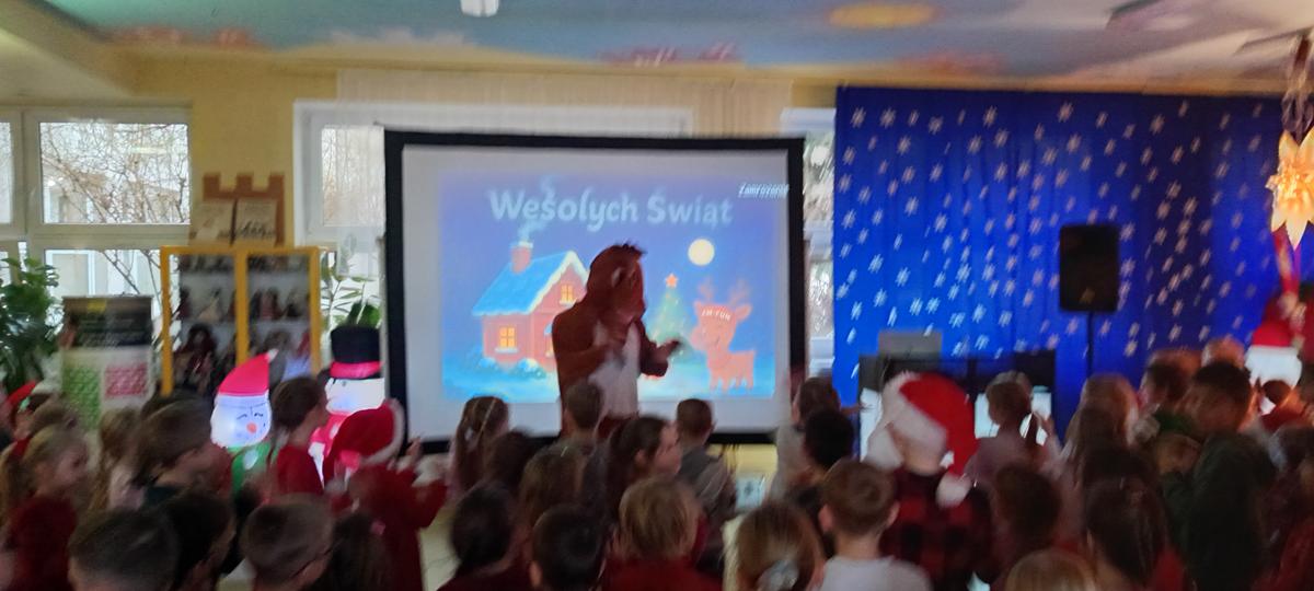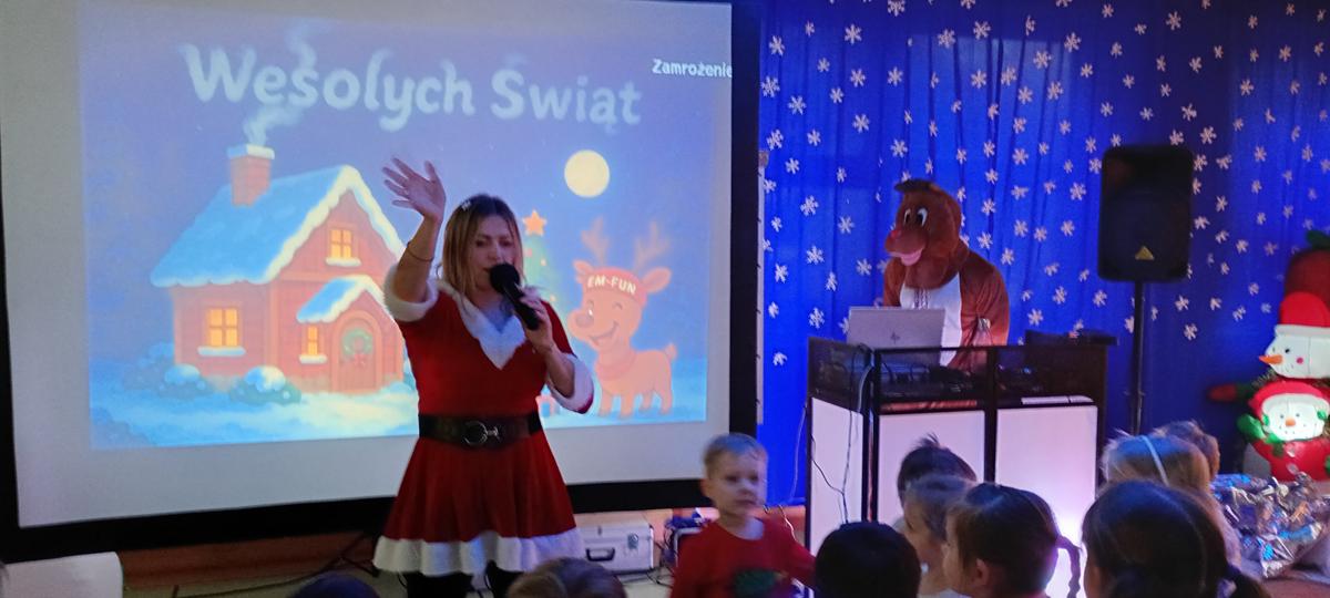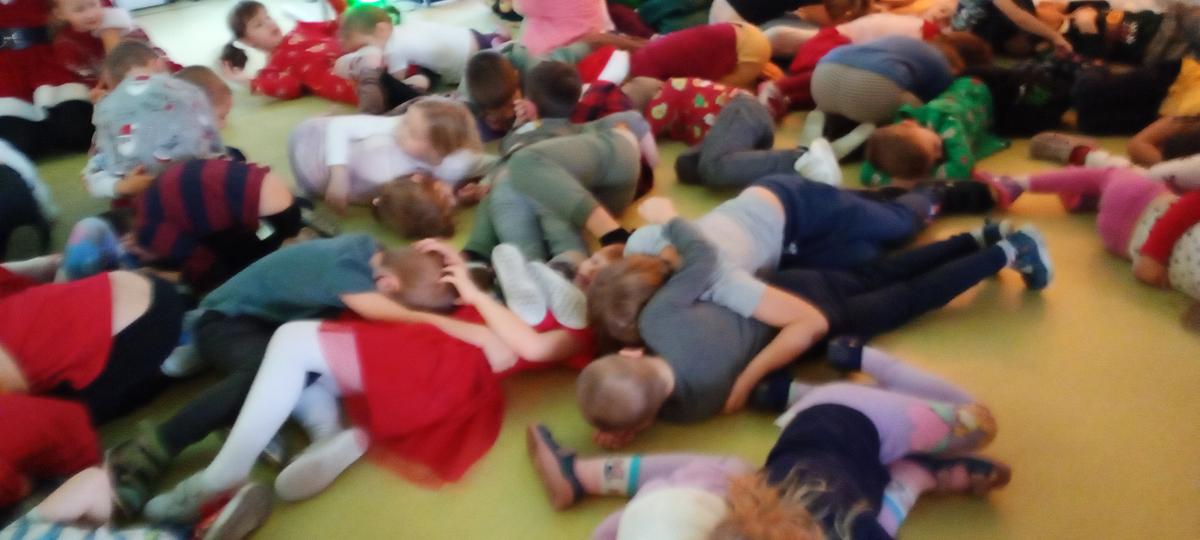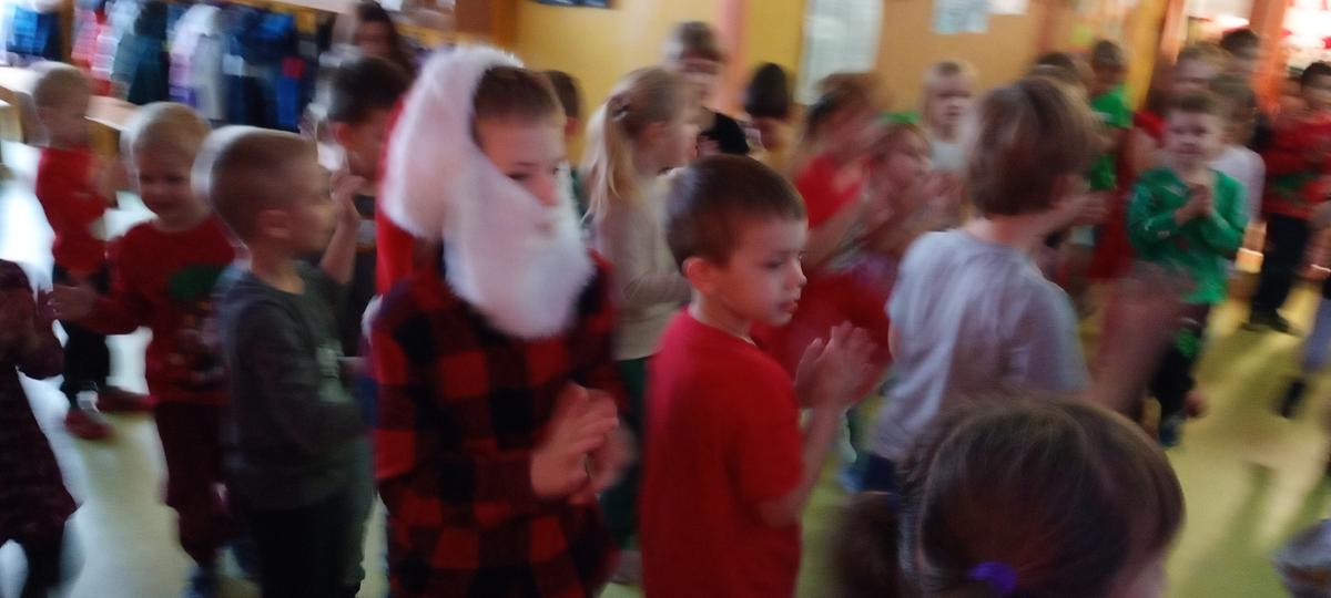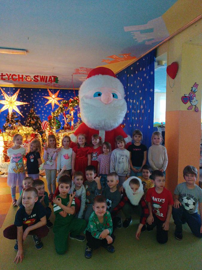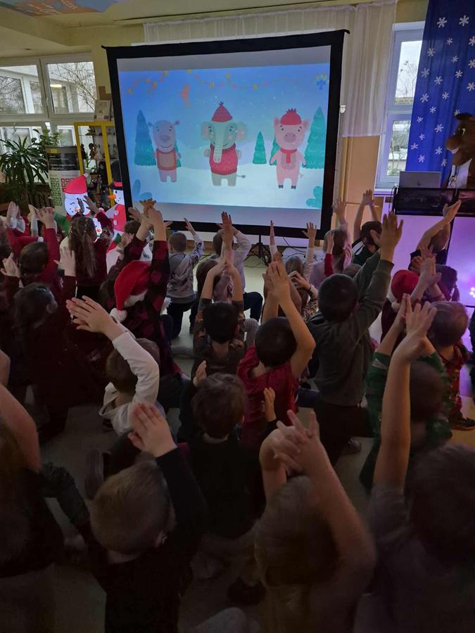 W naszym przedszkolu panowała wyjątkowa świąteczna atmosfera. Spotkanie z Mikołajem rozpoczęliśmy od wesołej zabawy z Mikołajową i reniferem. Dzieci ochoczo brały udział w tańcach, wspólnych zabawach ruchowych, które wprowadziły wszystkich w radosny, świąteczny nastrój.