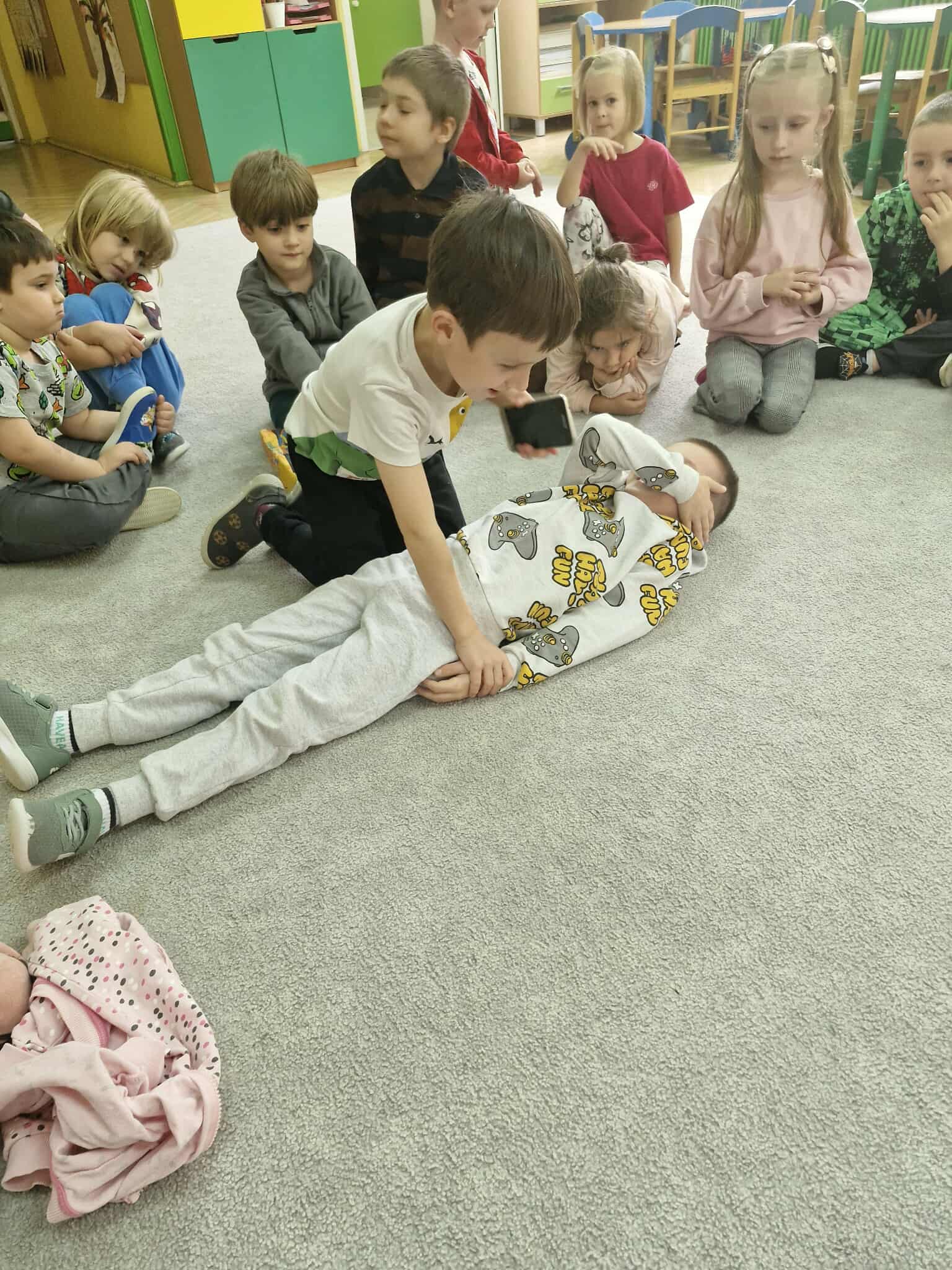 W grupie „Jeżyków” odbyły się bardzo ważne zajęcia o zdrowiu i bezpieczeństwie. Dzieci uczyły się, jak zachować się w sytuacji zagrożenia i pod jaki numer należy dzwonić, gdy potrzebna jest pomoc. Dowiedziały się również, jak ważne jest, by podać swój adres, przedstawić się i spokojnie opowiedzieć, co się stało. Podczas zajęć dzieci ćwiczyły rozmowę z dyspozytorem i przekonały się, że nie trzeba bać się dzwonić po pomoc – to odważny i mądry krok, który może komuś uratować zdrowie lub życie. To były bardzo pouczające i potrzebne zajęcia.