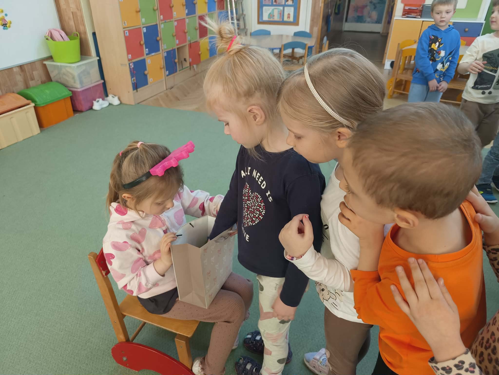 W naszej przedszkolnej grupie serdecznie powitaliśmy Tosię i Alę – nowe koleżanki, które dołączyły do naszego przedszkola. Dziewczynki od razu poczuły się jak w domu i z radością podzieliły się ze wszystkimi słodkimi smakołykami. Te miłe gesty sprawiły, że pozostałe dzieci mogły lepiej poznać Tosię i Alę, a wspólne chwile przy słodkościach wprowadziły dużo uśmiechu i dobrej zabawy. Cieszymy się, że Tosia i Ala są już częścią naszej grupy i życzymy im wielu wspaniałych chwil w przedszkolu