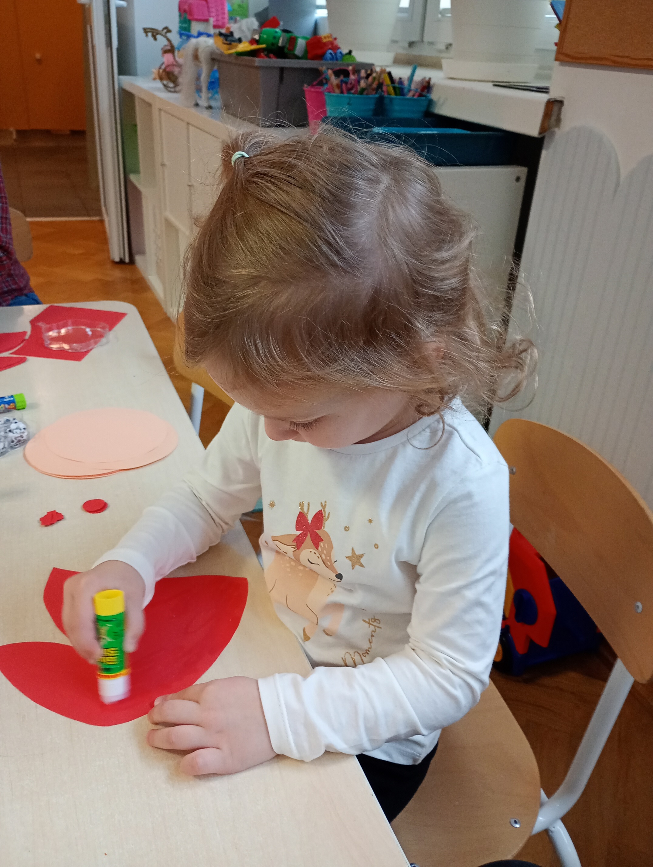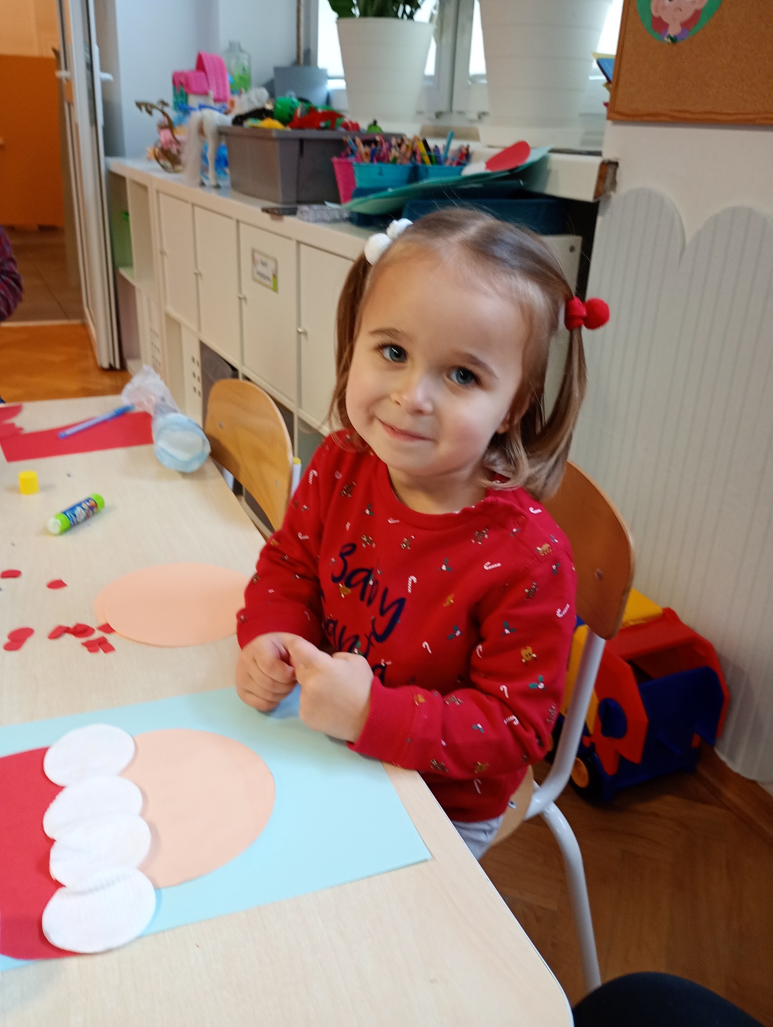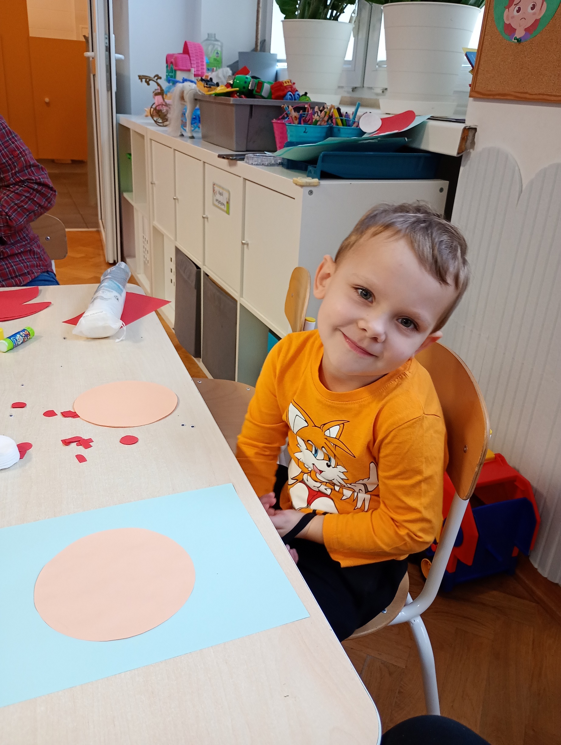 Podczas zajęć przedszkolaki z zaangażowaniem przyklejały, ozdabiały i dekorowały swoje prace, rozwijając przy tym kreatywność oraz zdolności manualne.