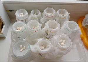 Dzisiaj sadziliśmy fasolę. Dzieci zapoznały się z etapami wzrostu fasoli, przygotowały swoje fasolki, słoiczki i gazę. Wszystko wykonały samodzielnie i zaczęły się obserwacje.