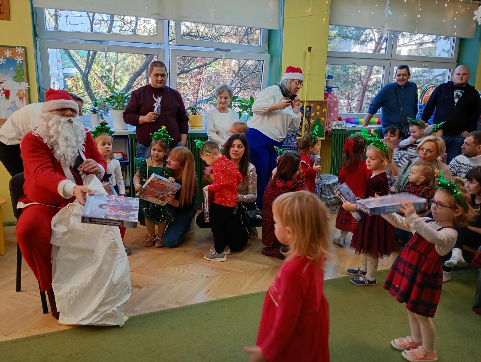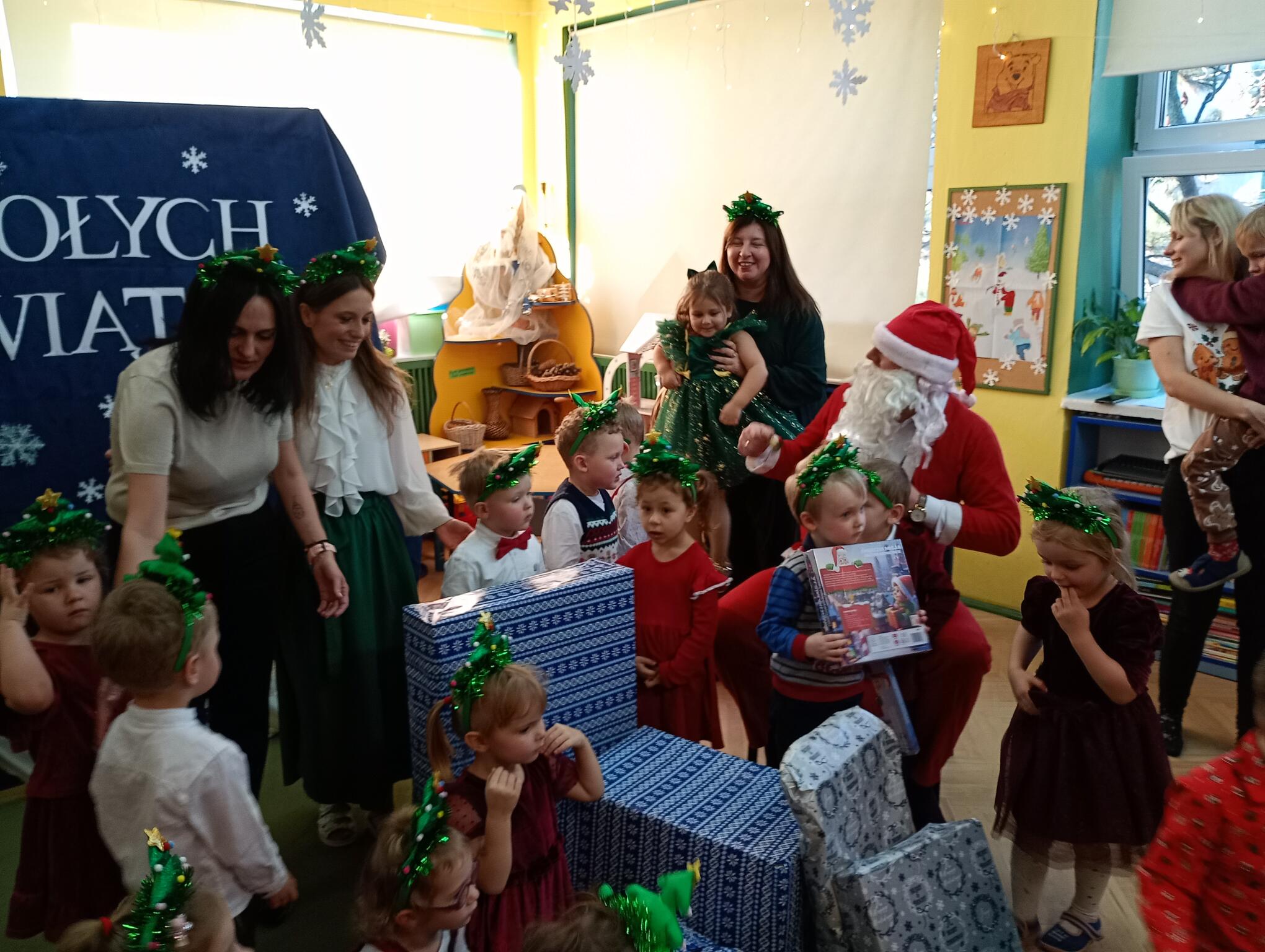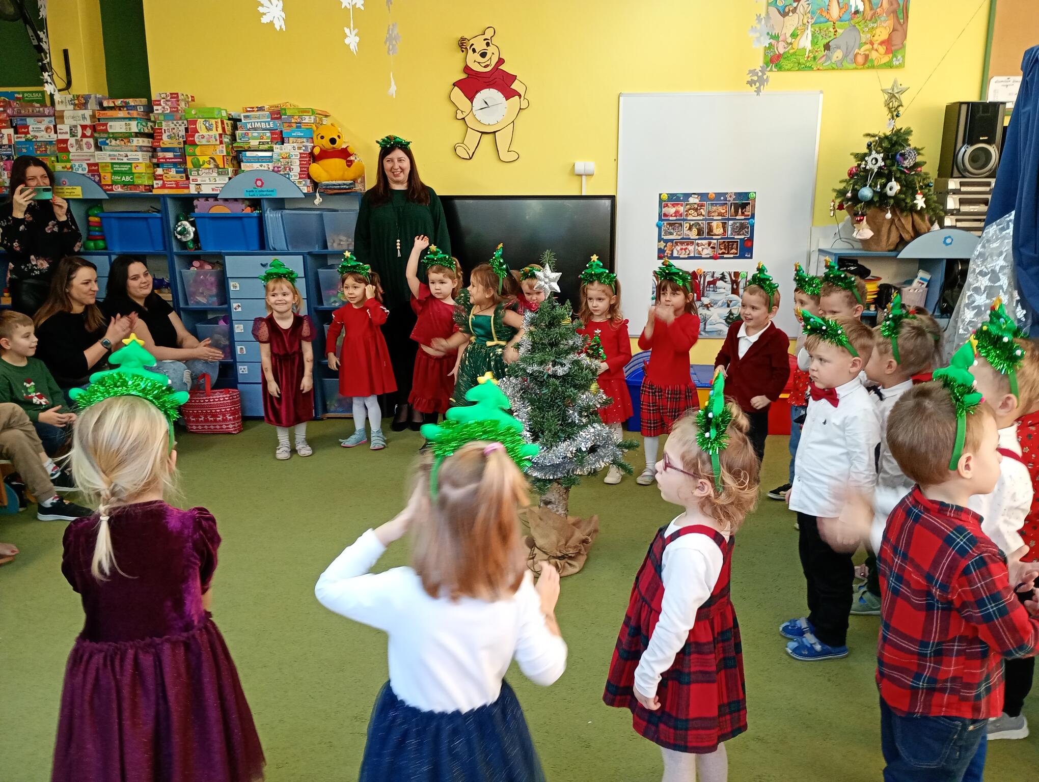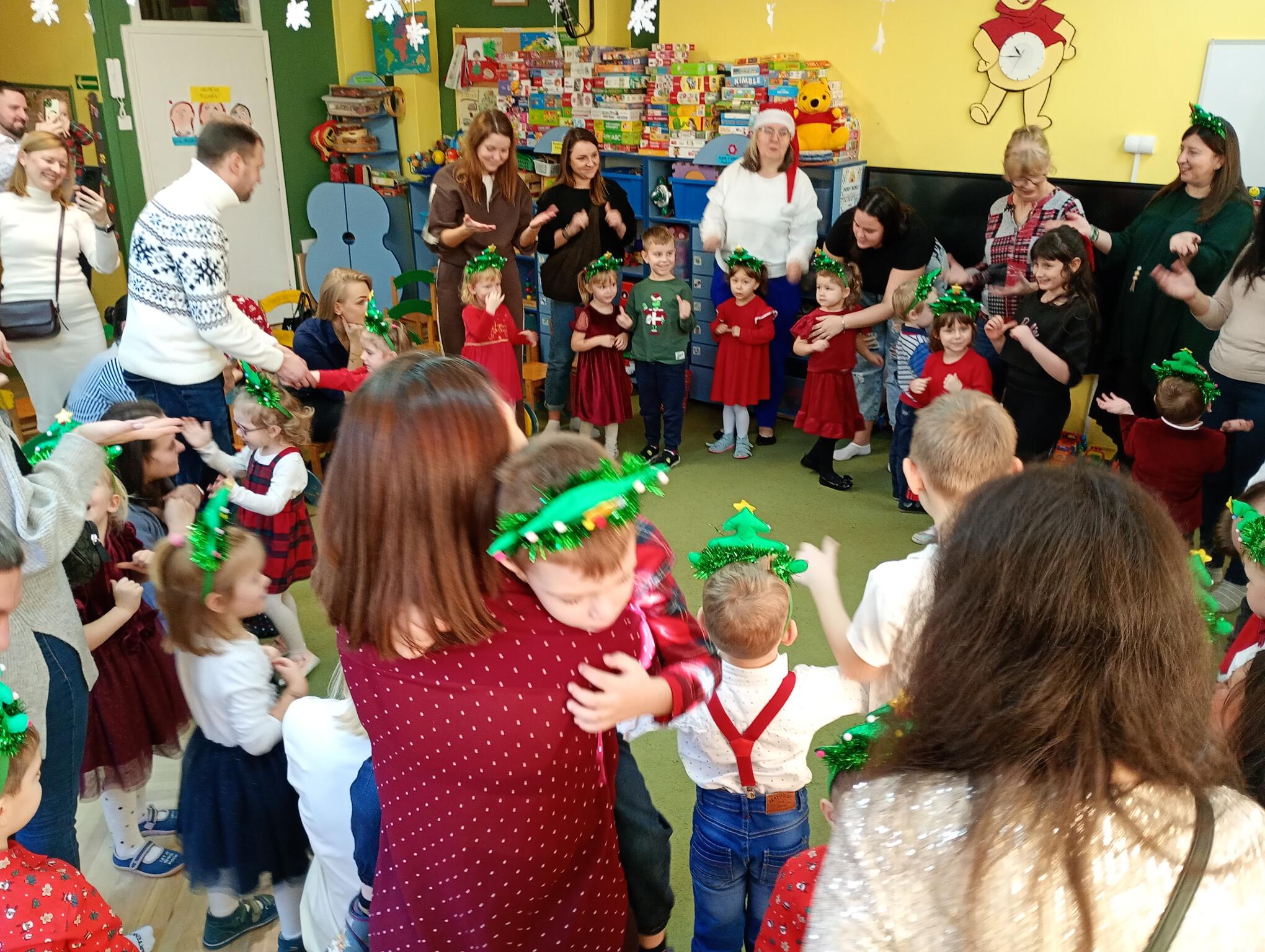 Dziś w grupie Puchatków odbyła się przedszkolna uroczystość choinkowa, na którą nasze przedszkolaki zaprosiły swoich bliskich. Dzieci pięknie recytowały wierszyki i śpiewały piosenki, wspólnie bawiąc się przy choince. To były ich pierwsze występy w przedszkolu. Na koniec uroczystości maluchy odwiedził sam Święty Mikołaj, który przyniósł mnóstwo prezentów!
