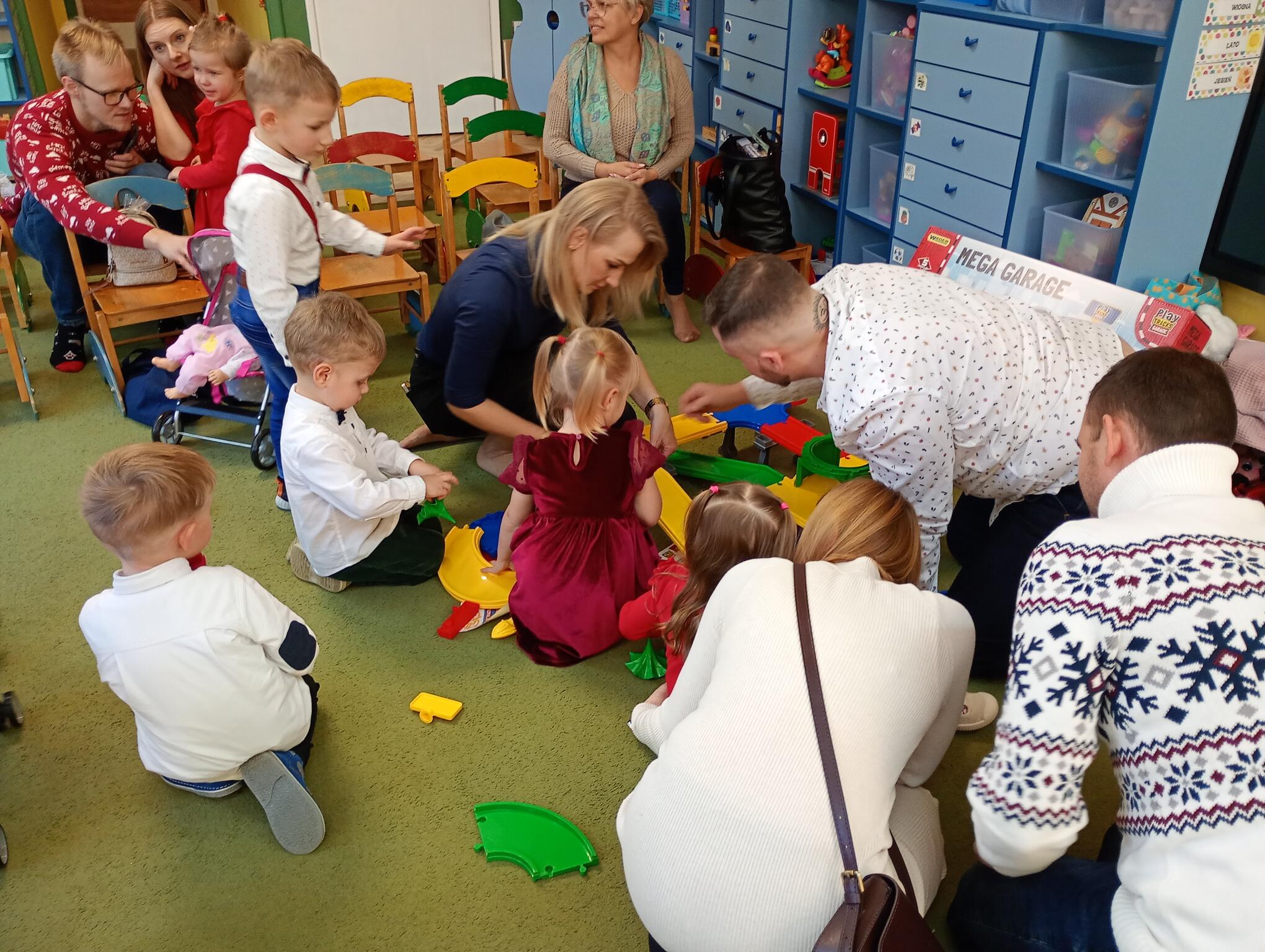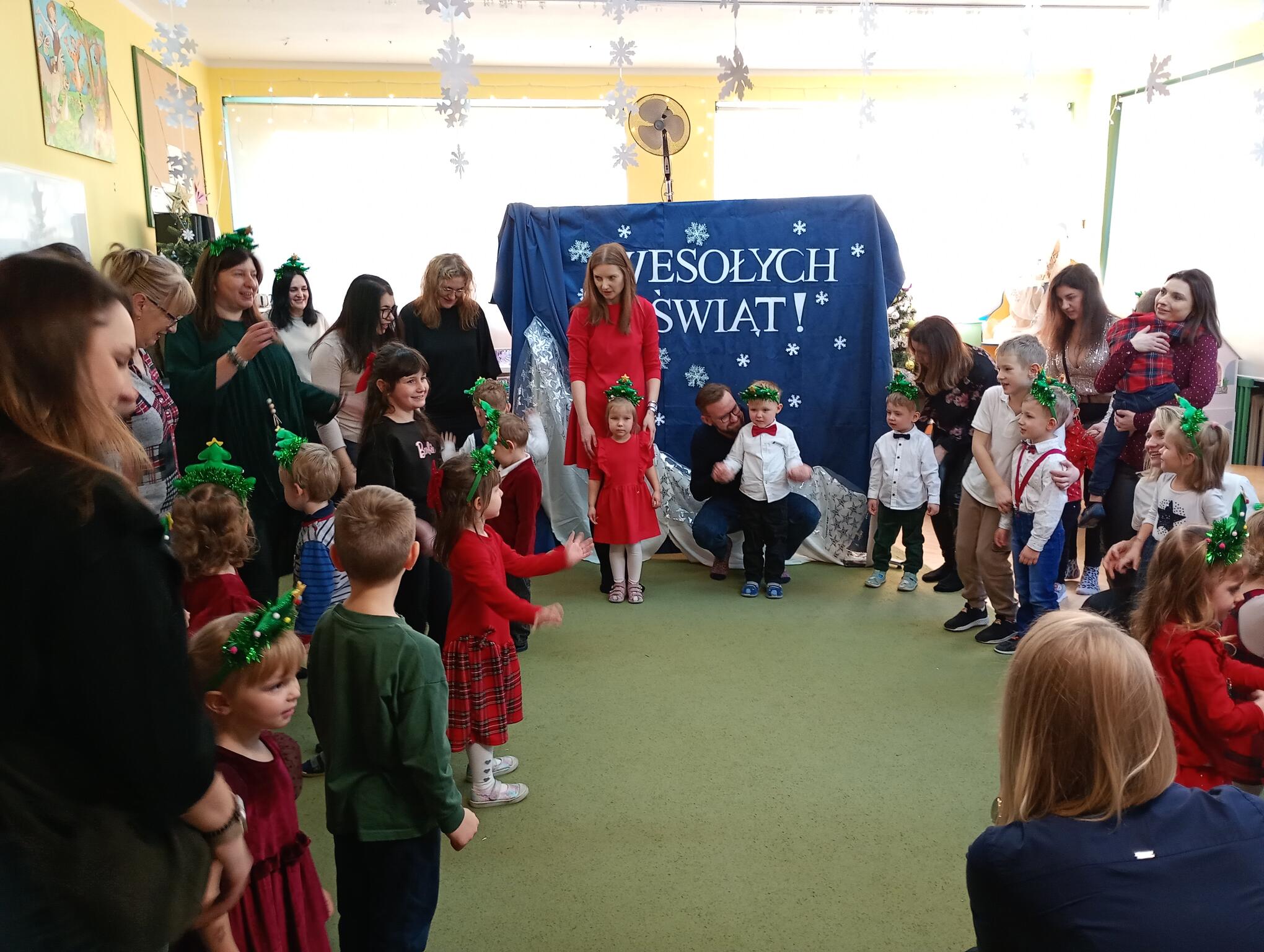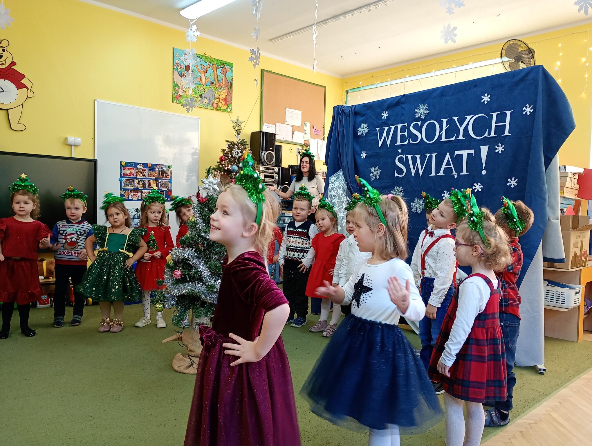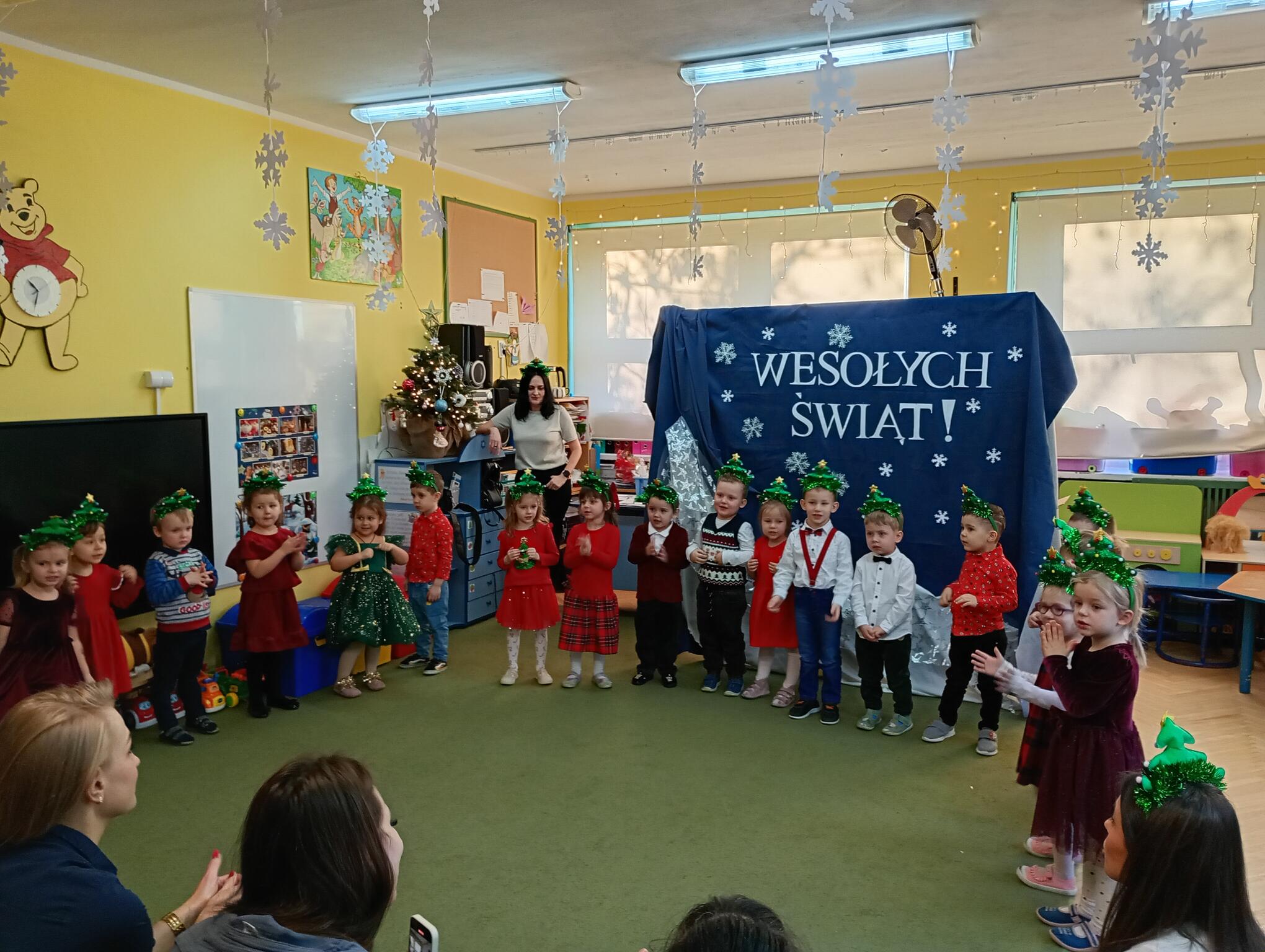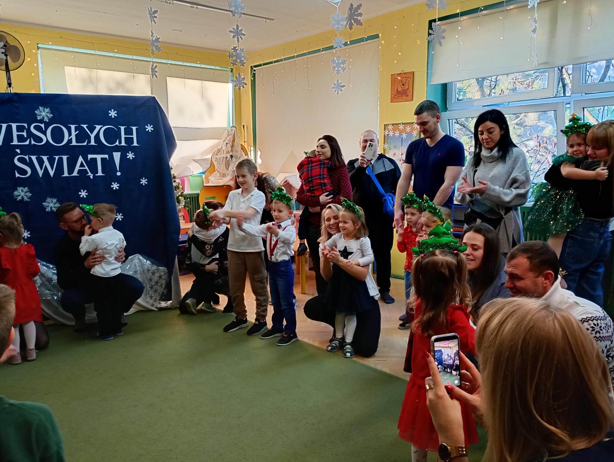Dziś w grupie Puchatków odbyła się przedszkolna uroczystość choinkowa, na którą nasze przedszkolaki zaprosiły swoich bliskich. Dzieci pięknie recytowały wierszyki i śpiewały piosenki, wspólnie bawiąc się przy choince. To były ich pierwsze występy w przedszkolu. Na koniec uroczystości maluchy odwiedził sam Święty Mikołaj, który przyniósł mnóstwo prezentów!