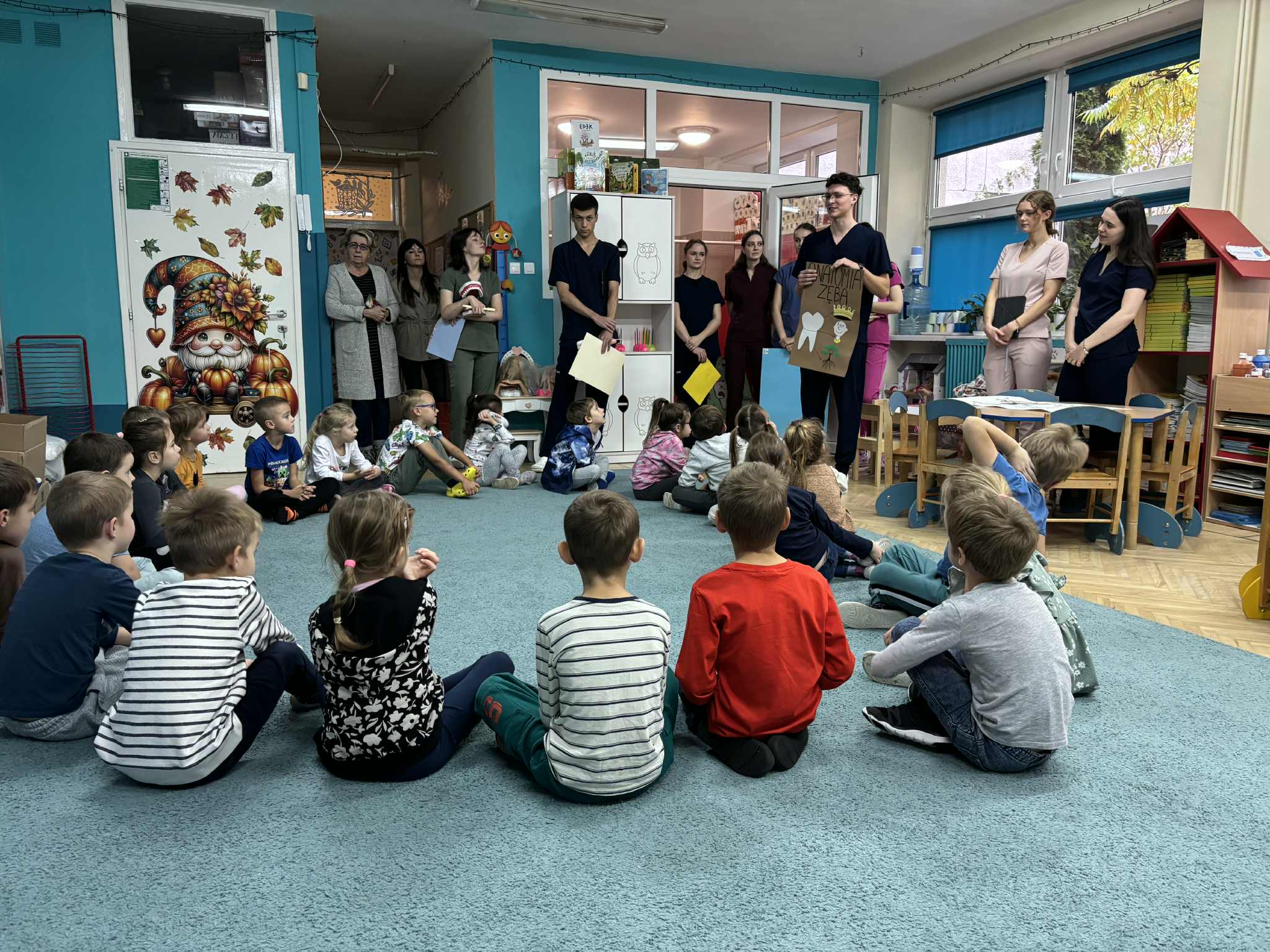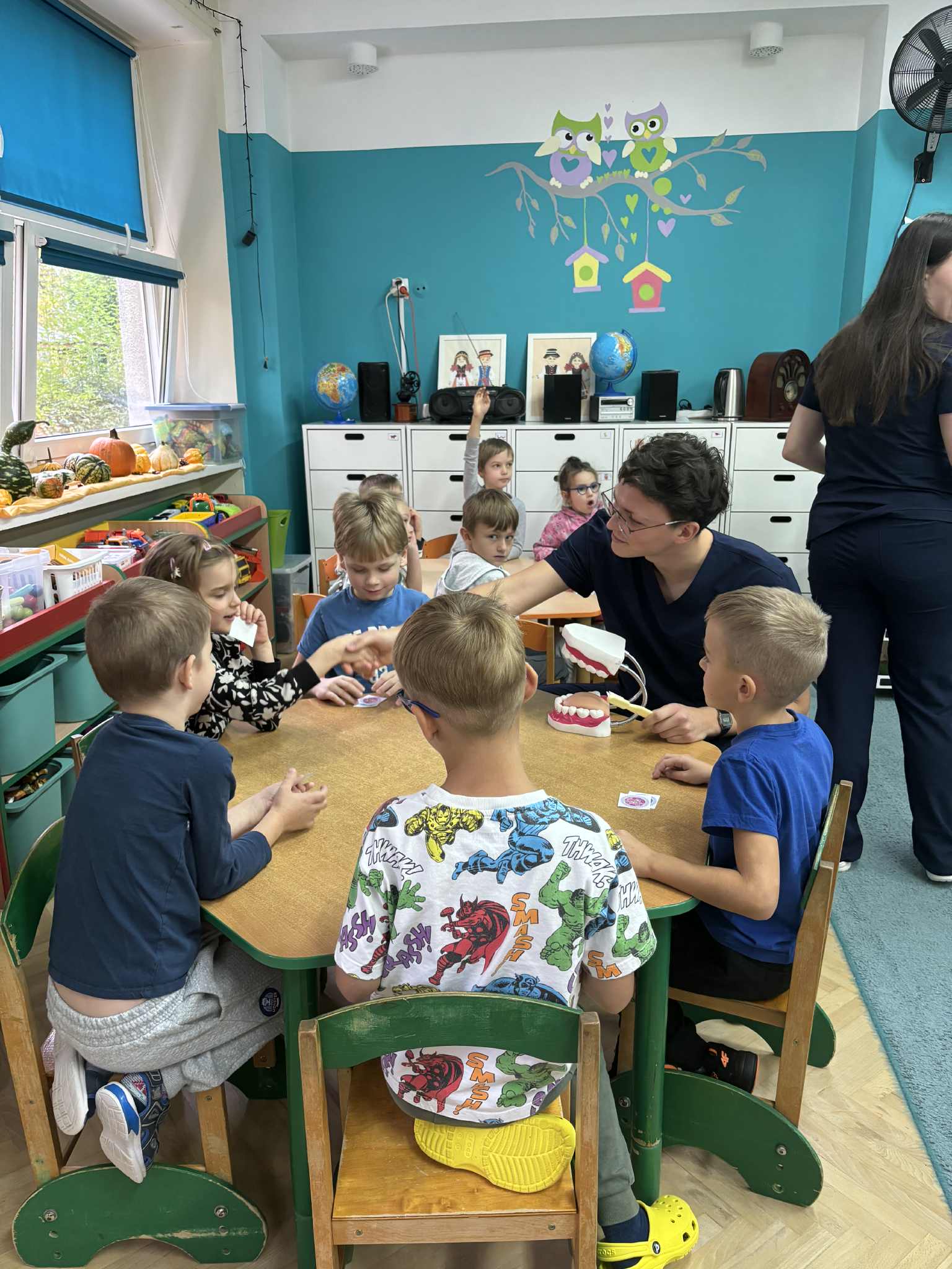 Dziś w naszym przedszkolu odbyła się wyjątkowa prelekcja prowadzona przez wolontariuszy dentystycznych, którzy w ciekawy i przystępny sposób opowiedzieli dzieciom o tym, jak dbać o zdrowy uśmiech.