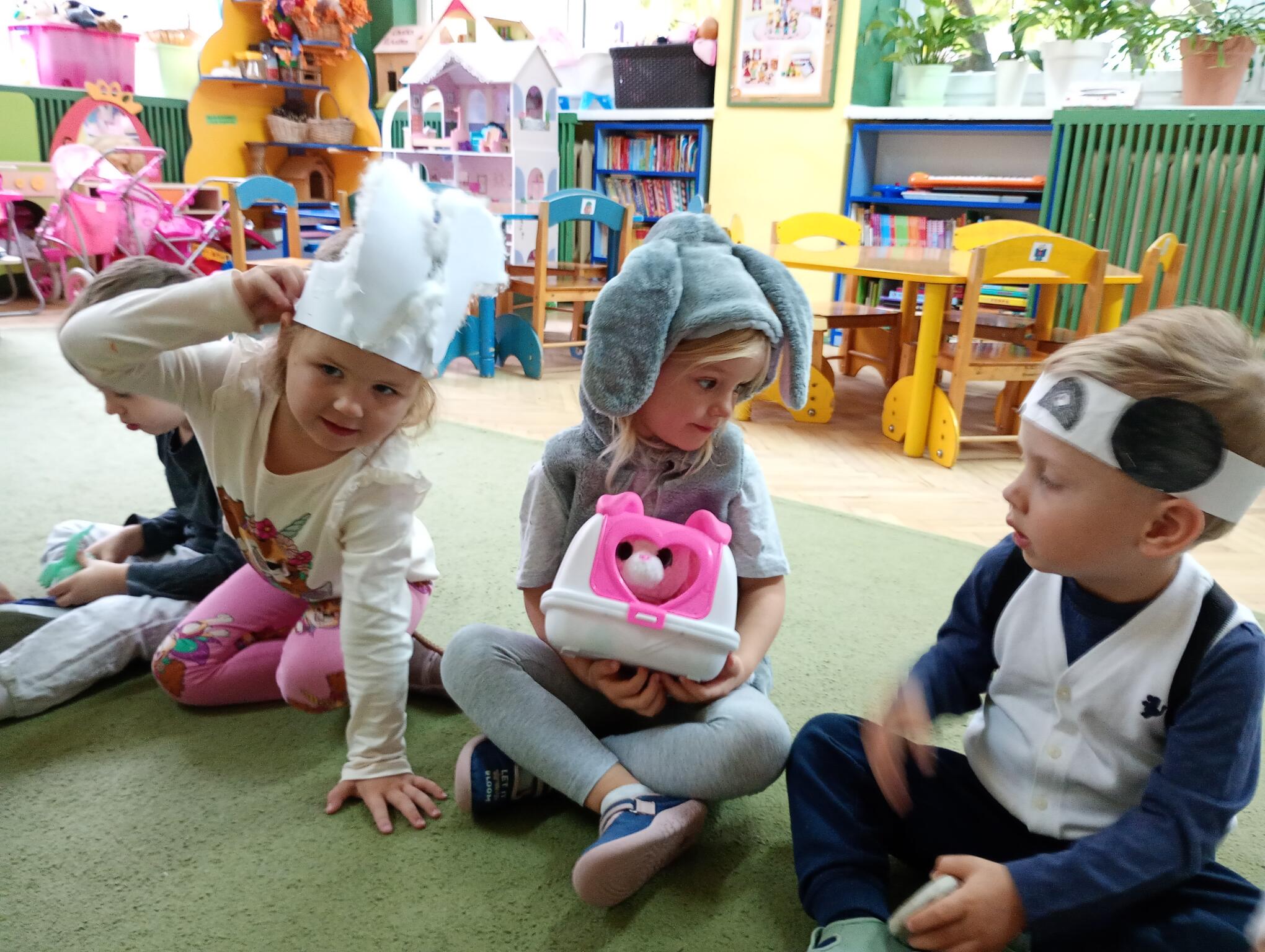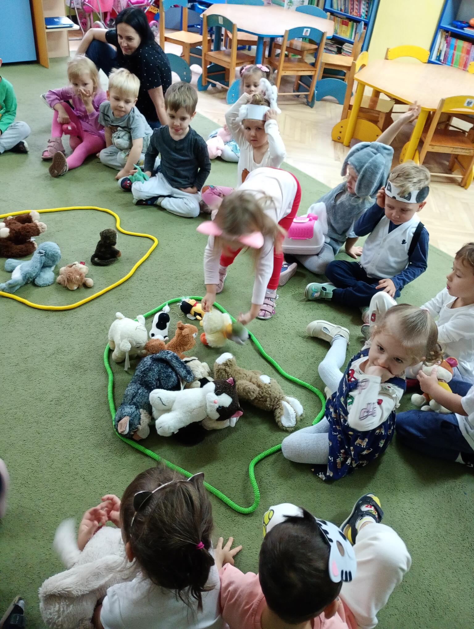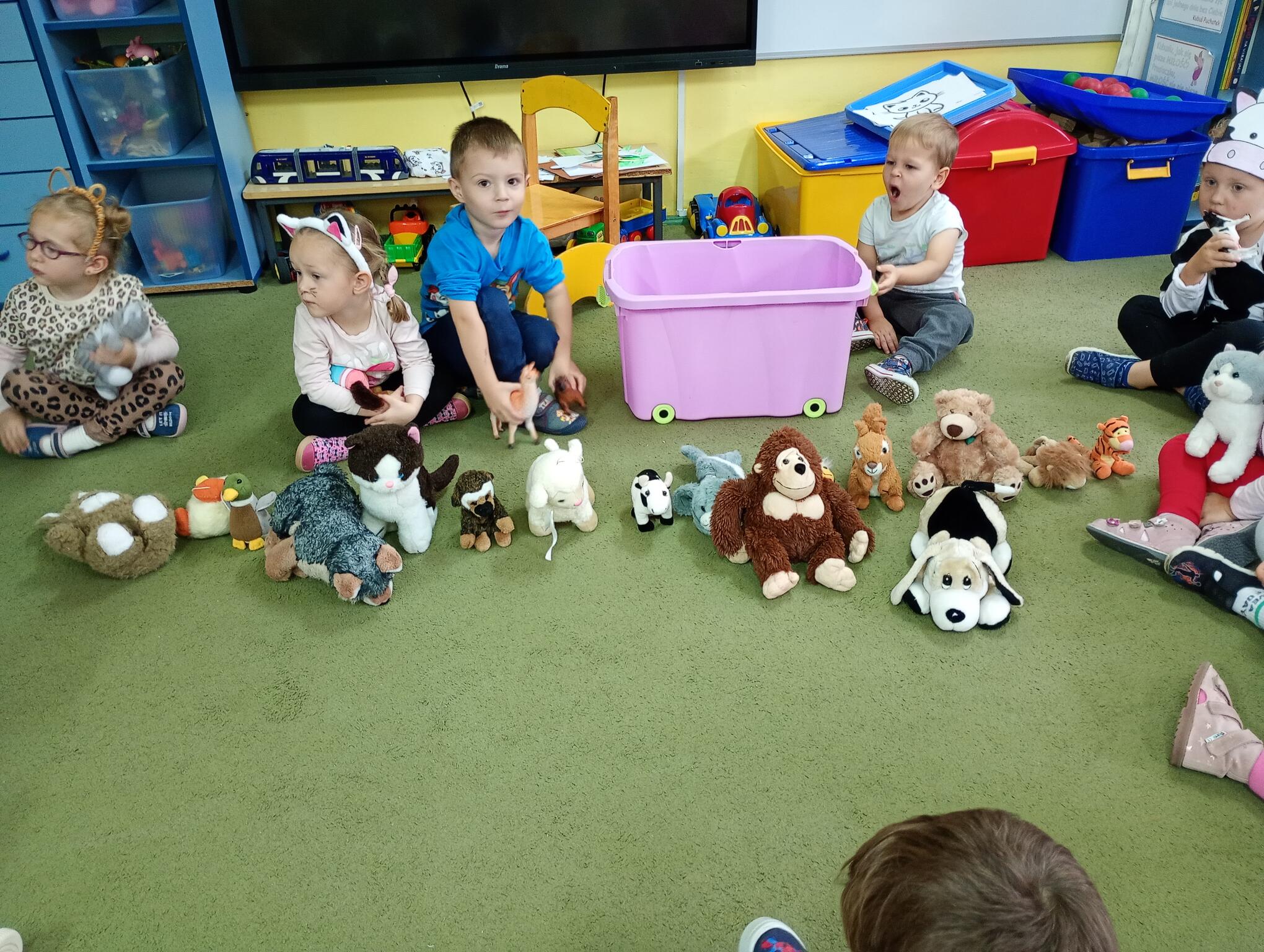 Dziś w grupie „Puchatków” w ramach realizacji programu „Małe przedszkolaki tropią różne zwierzaki” świętowaliśmy Światowy Dzień Zwierząt. Z tej okazji maluszki przebrały się w stroje swoich ulubionych zwierzątek i/lub przyniosły do przedszkola maskotki, figurki swoich ulubieńców. Każdy mały przedszkolak zaprezentował się rówieśnikom, nazywając zwierzę, za które się przebrał lub które przyniósł w postaci figurki, maskotki. W sali odbyły się też tematyczne zajęcia, podczas których dzieci wykonywały różne zadania – odgadywały zagadki dźwiękowe oraz zagadki obrazkowe związane ze zwierzętami; naśladowały ich odgłosy; odszukiwały maskotki zwierzęce, które są w sali przedszkolnej i segregowały je na zwierzęta, które mieszkają w naszym kraju i zwierzęta egzotyczne; brały udział w quizie z piłeczkami, określając dobre i złe zachowania wobec zwierząt; dopasowywały przysmaki do zwierząt; naśladowały ruchem zwierzęta, przemieszczając się po klasie; układały w parach proste puzzle przedstawiające zwierzęta oraz kolorowały kredkami ołówkowymi kolorowanki zwierząt. To był bardzo fajny dzień!