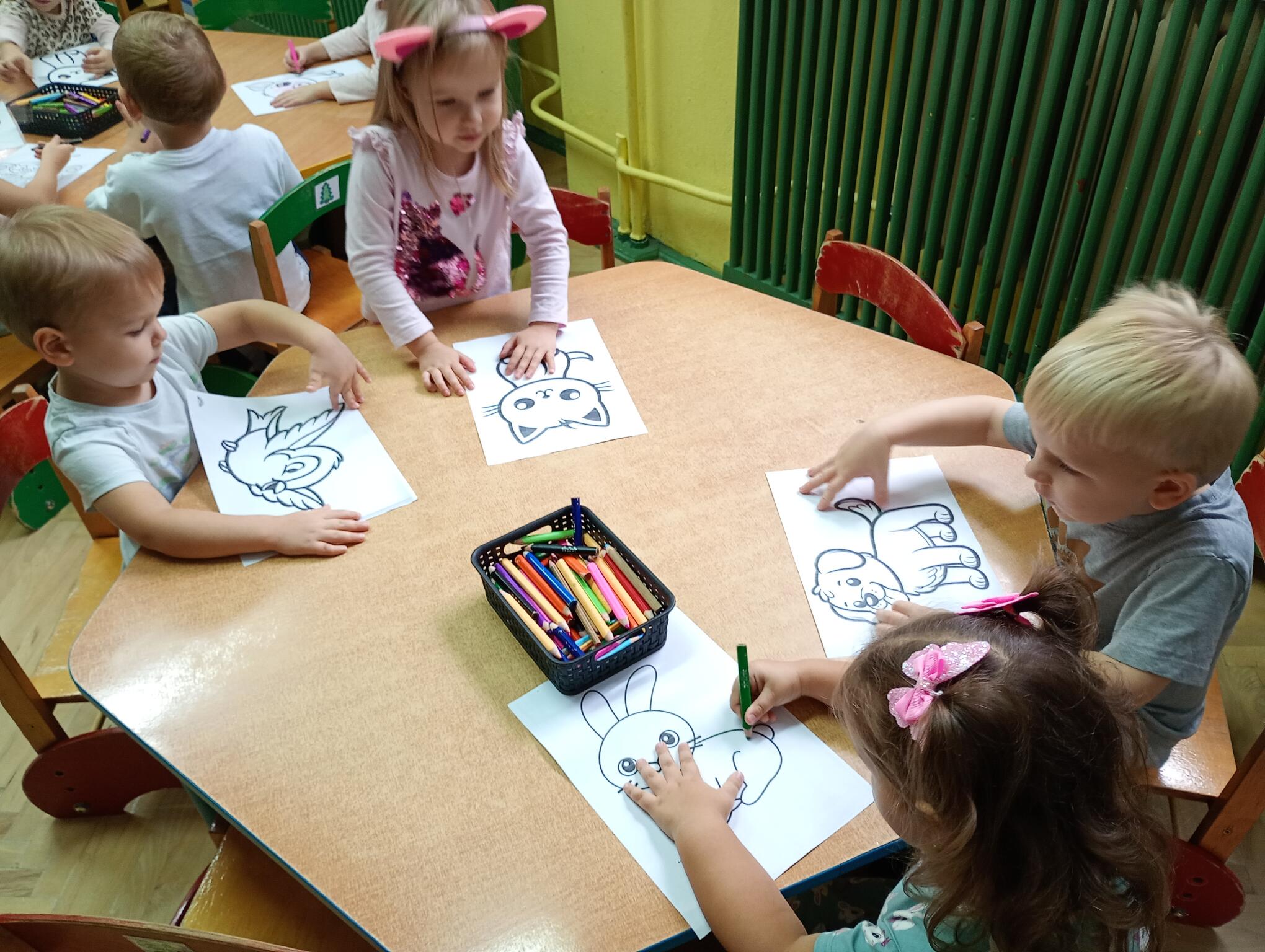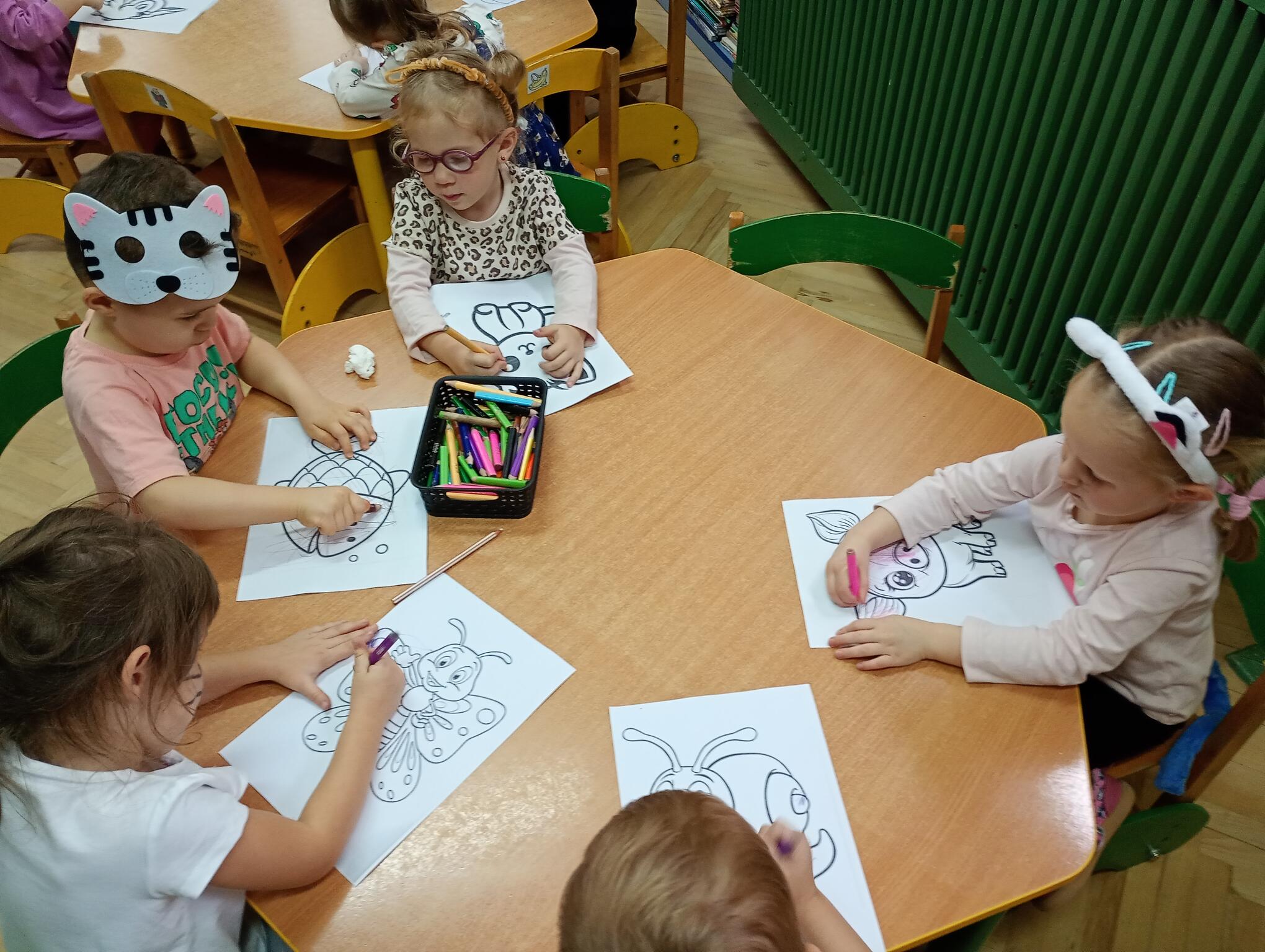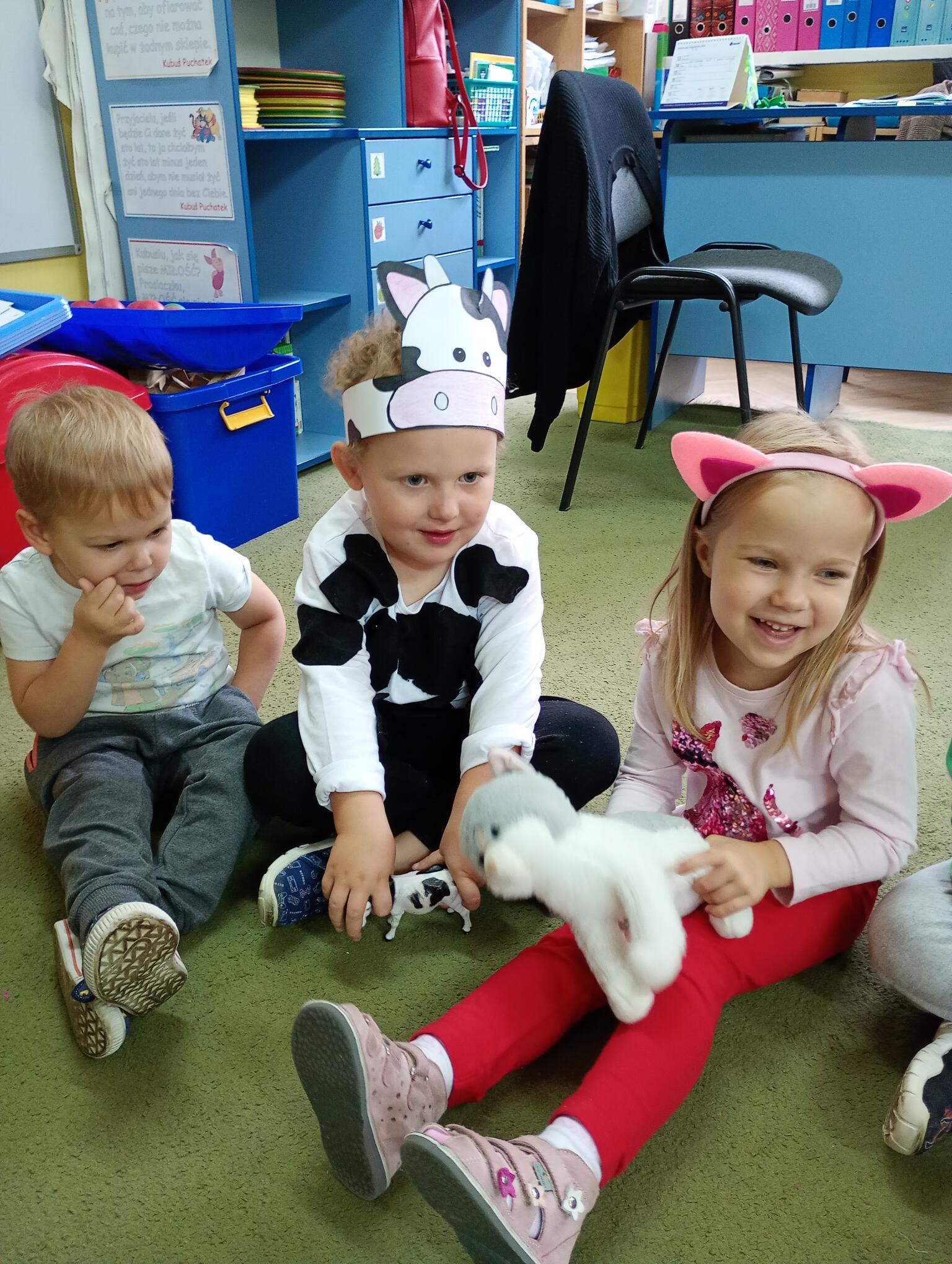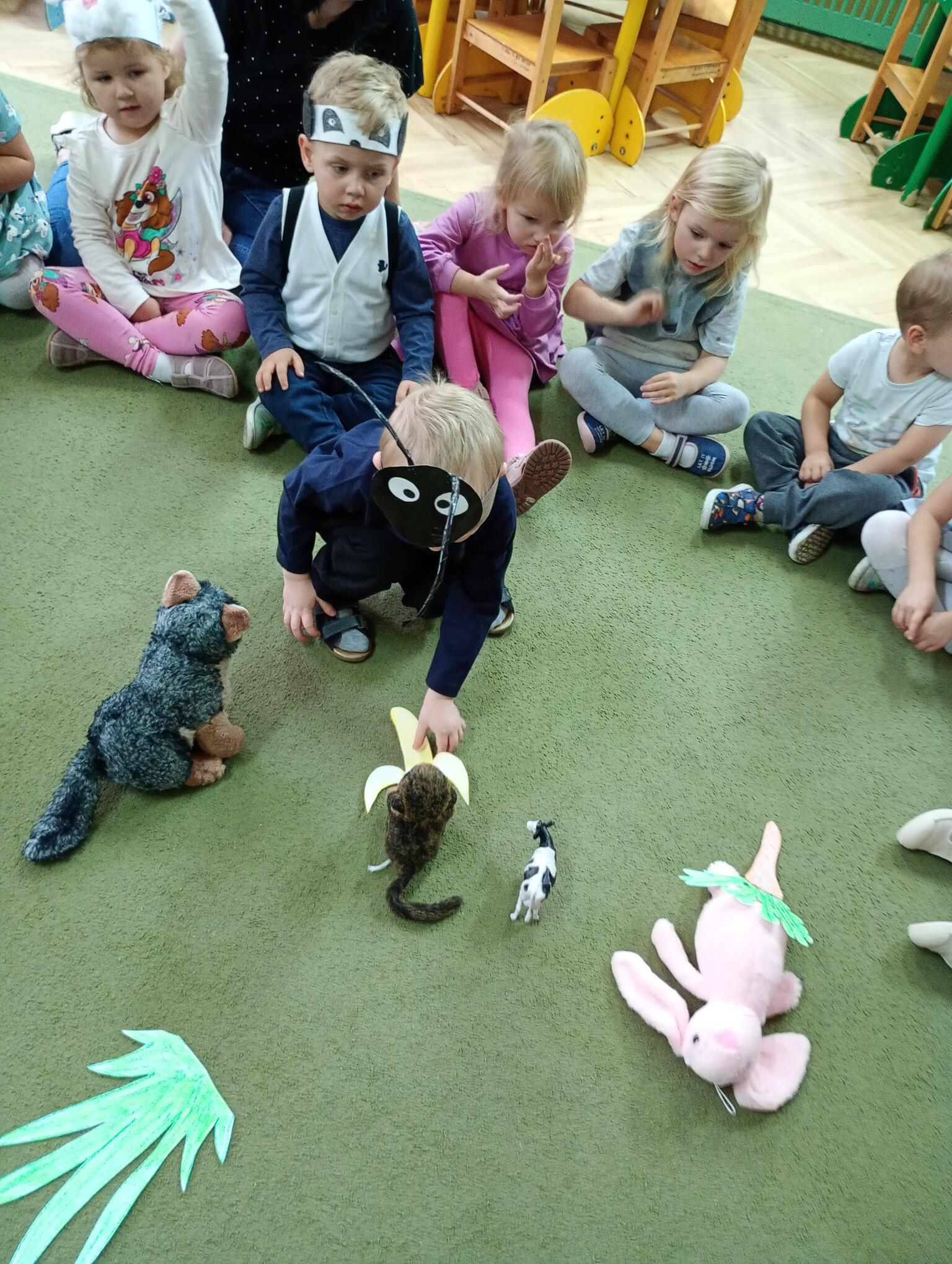 Dziś w grupie „Puchatków” w ramach realizacji programu „Małe przedszkolaki tropią różne zwierzaki” świętowaliśmy Światowy Dzień Zwierząt. Z tej okazji maluszki przebrały się w stroje swoich ulubionych zwierzątek i/lub przyniosły do przedszkola maskotki, figurki swoich ulubieńców. Każdy mały przedszkolak zaprezentował się rówieśnikom, nazywając zwierzę, za które się przebrał lub które przyniósł w postaci figurki, maskotki. W sali odbyły się też tematyczne zajęcia, podczas których dzieci wykonywały różne zadania – odgadywały zagadki dźwiękowe oraz zagadki obrazkowe związane ze zwierzętami; naśladowały ich odgłosy; odszukiwały maskotki zwierzęce, które są w sali przedszkolnej i segregowały je na zwierzęta, które mieszkają w naszym kraju i zwierzęta egzotyczne; brały udział w quizie z piłeczkami, określając dobre i złe zachowania wobec zwierząt; dopasowywały przysmaki do zwierząt; naśladowały ruchem zwierzęta, przemieszczając się po klasie; układały w parach proste puzzle przedstawiające zwierzęta oraz kolorowały kredkami ołówkowymi kolorowanki zwierząt. To był bardzo fajny dzień!