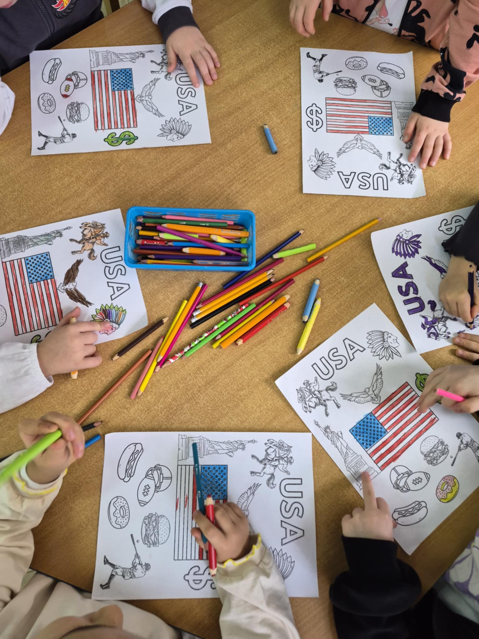 W tym tygodniu odbyliśmy wirtualną podróż do Stanów Zjednoczonych. Poznaliśmy symbole tego kraju, jego przyrodę i różne ciekawostki. Poznaliśmy zwyczaj Święta Dziękczynienia i obejrzeliśmy z lotu ptaka, najsławniejsze miejsca w USA. W czwartek zamiast zwyczajnych zajęć postanowiliśmy świętować i dziękować razem z mieszkańcami Ameryki za to co spotkało nas w tym roku. Na koniec tygodnia pokolorowaliśmy symbole Stanów Zjednoczonych i graliśmy w quiz wiedzy o tym kraju.