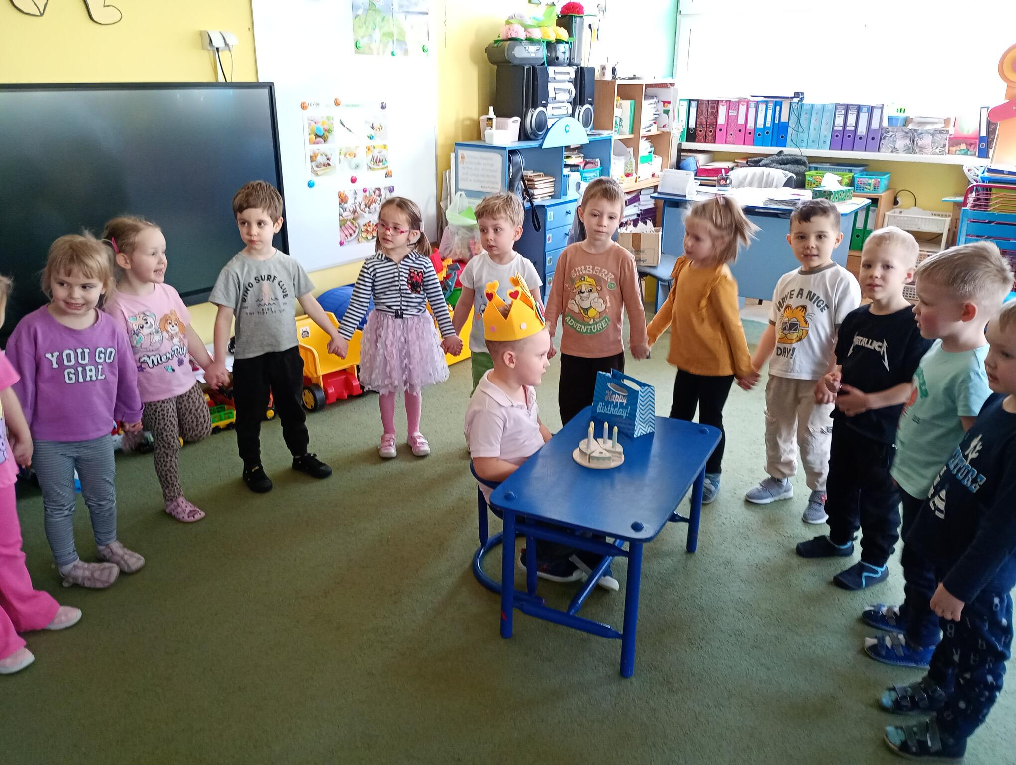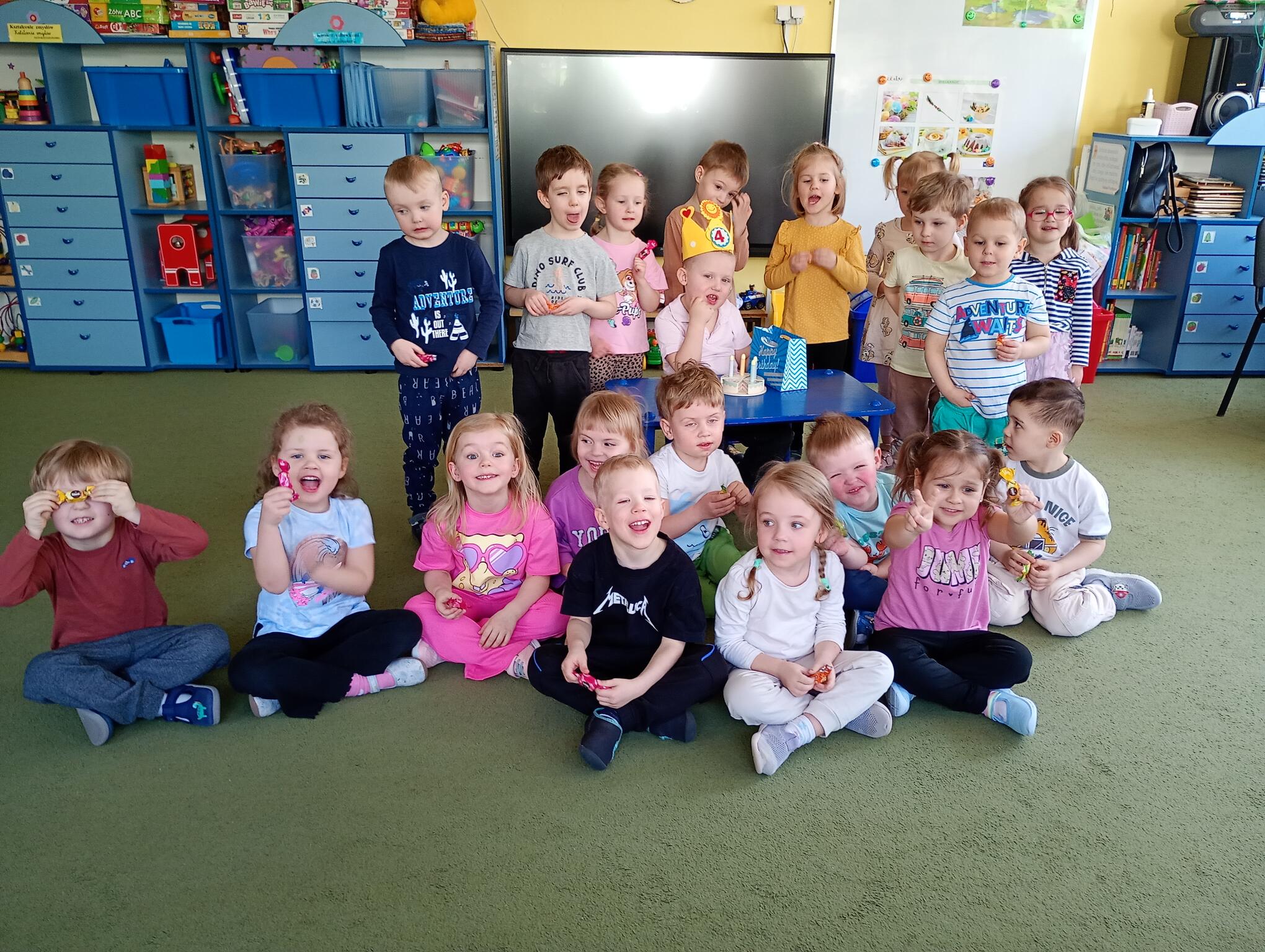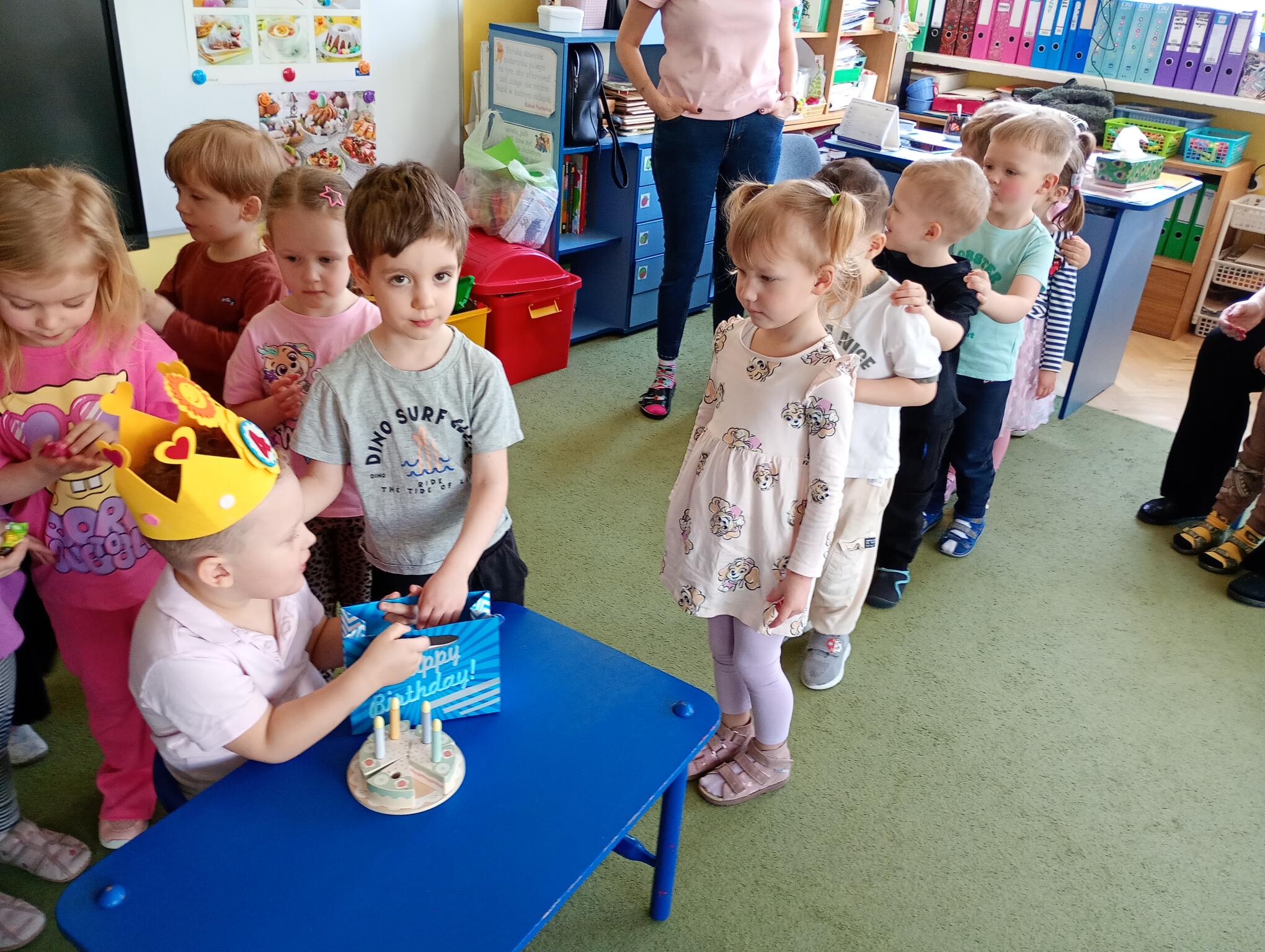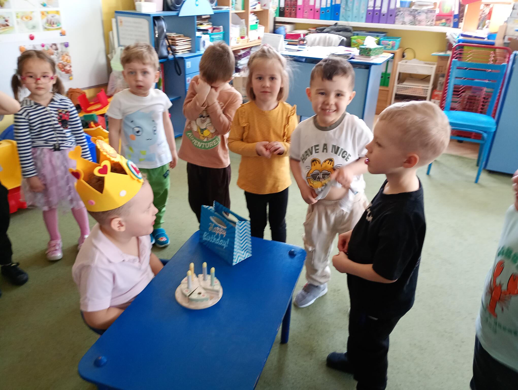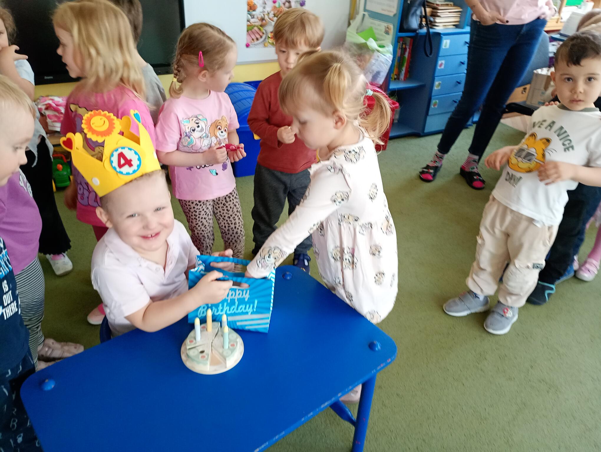 Dziś w przedszkolu swoje 4 urodziny obchodził Jasio, który z tej okazji przyniósł dla dzieci przepyszne cukierki. Maluszki złożyły koledze urodzinowe życzenia i zaśpiewały „Sto lat”. Wszystkiego najlepszego nasz Puchatku!