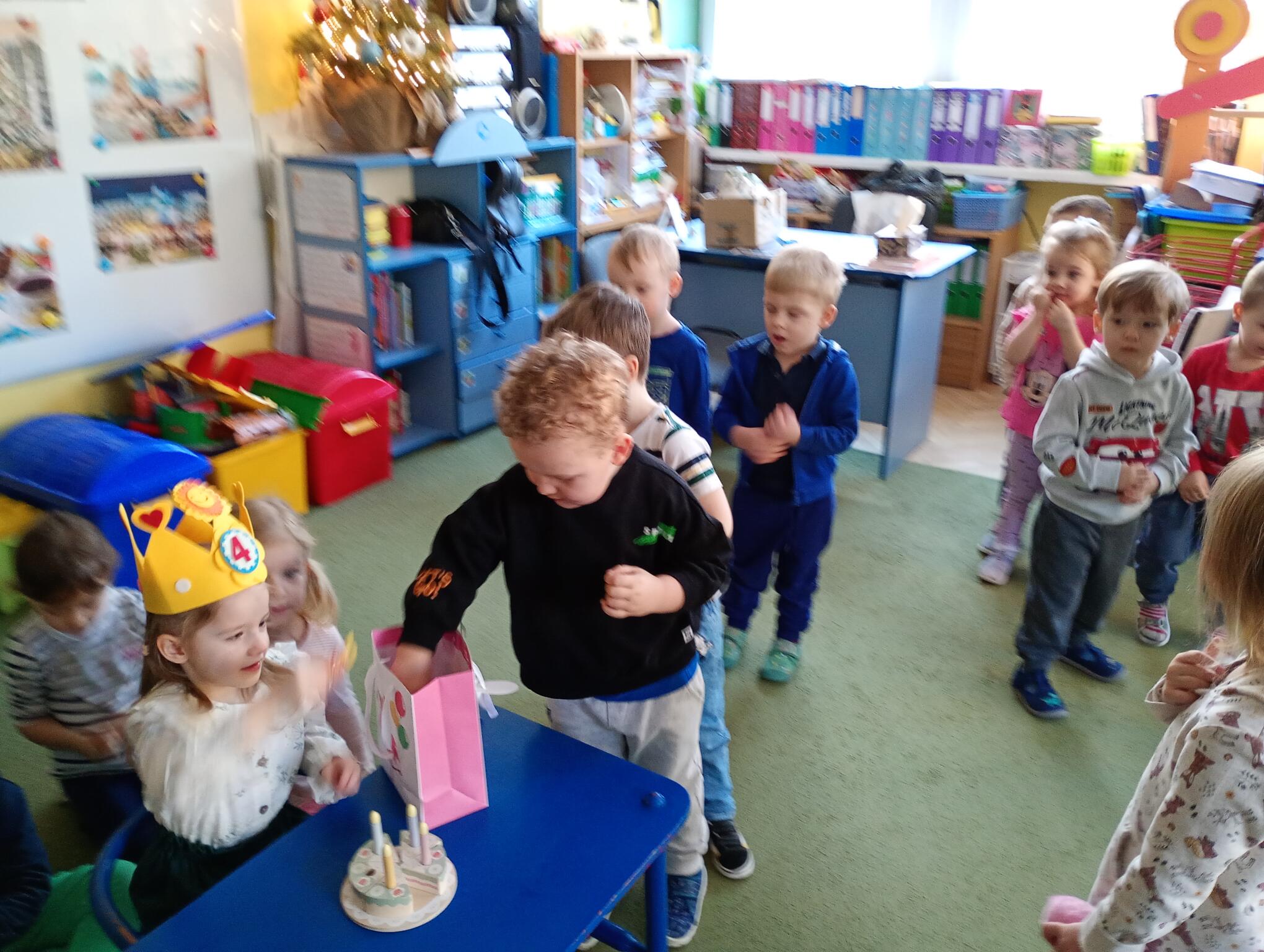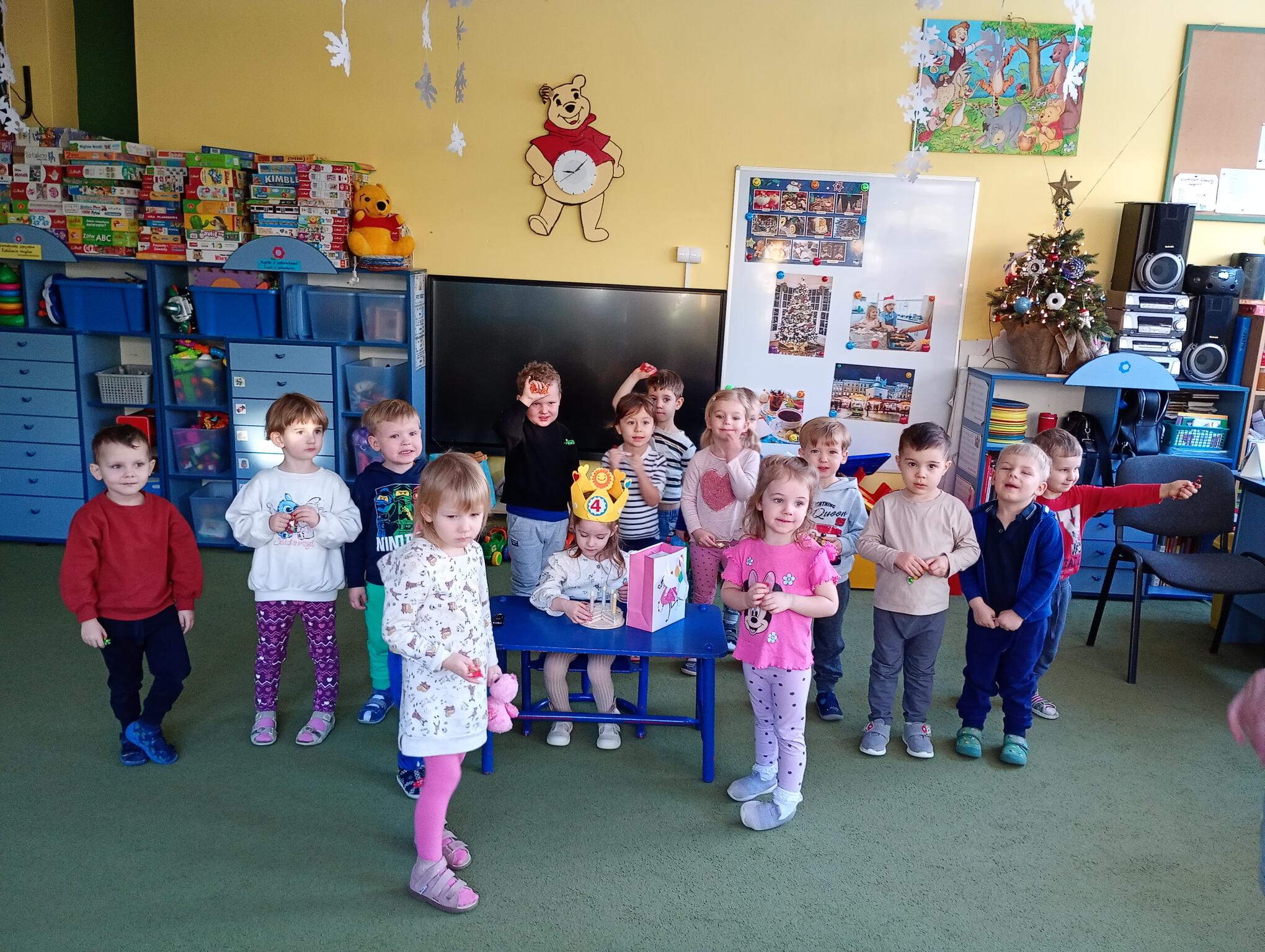 Dziś w przedszkolu swoje 4 urodziny obchodziła Oliwka, która z tej okazji przyniosła dla dzieci przepyszne cukierki. Maluszki złożyły koleżance urodzinowe życzenia i zaśpiewały „Sto lat”. Wszystkiego najlepszego nasz Puchatku!
