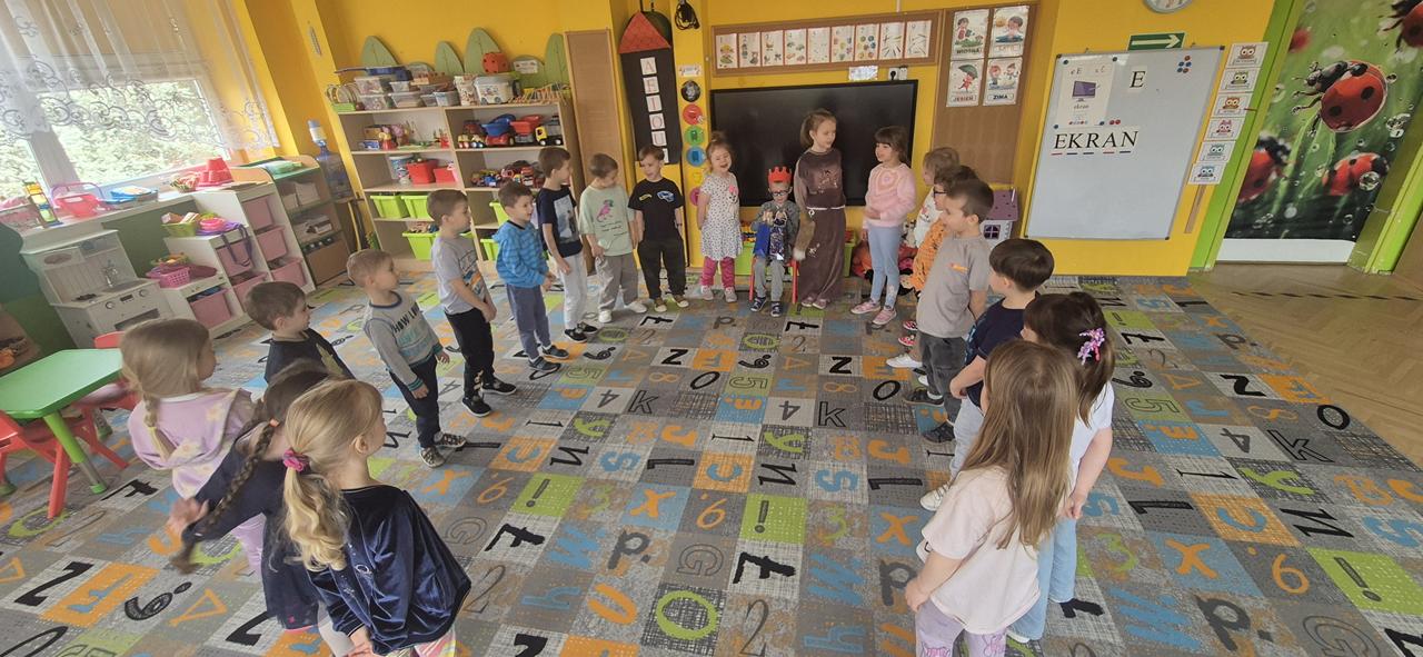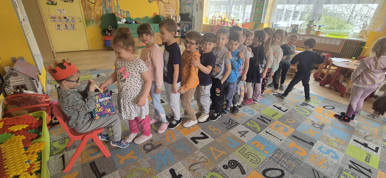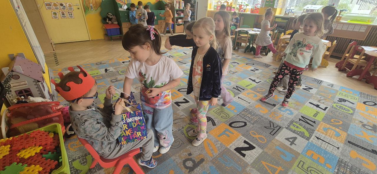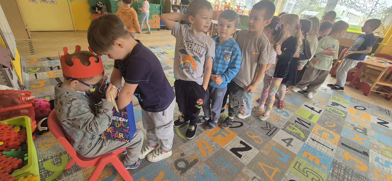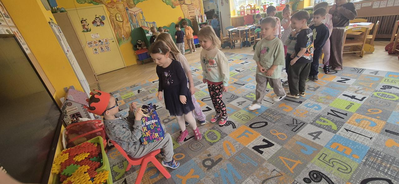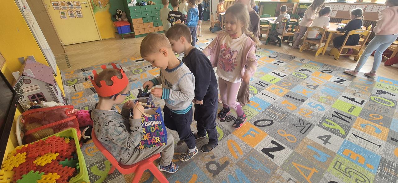 Dziś w przedszkolu świętowaliśmy urodziny jednego z naszych kolegów. Dzieci wspólnie zaśpiewały „Sto lat”, złożyły piękne życzenia, a na wszystkich czekał słodki poczęstunek przygotowany przez solenizanta.