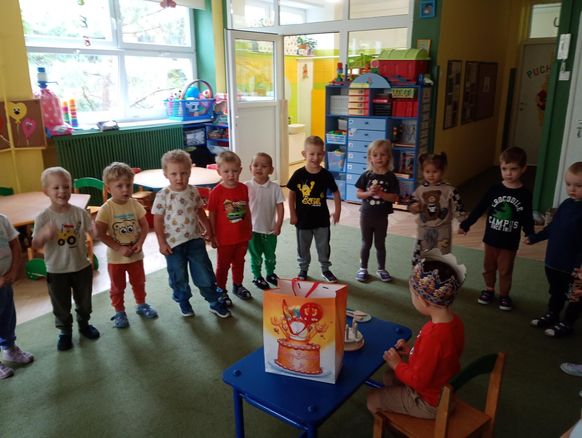 Dziś w przedszkolu swoje 3 urodziny obchodził Tymur, który z tej okazji przyniósł dla dzieci przepyszne czekoladki. Maluszki złożyły koledze urodzinowe życzenia i zaśpiewały „Sto lat”. Wszystkiego najlepszego nasz Puchatku!