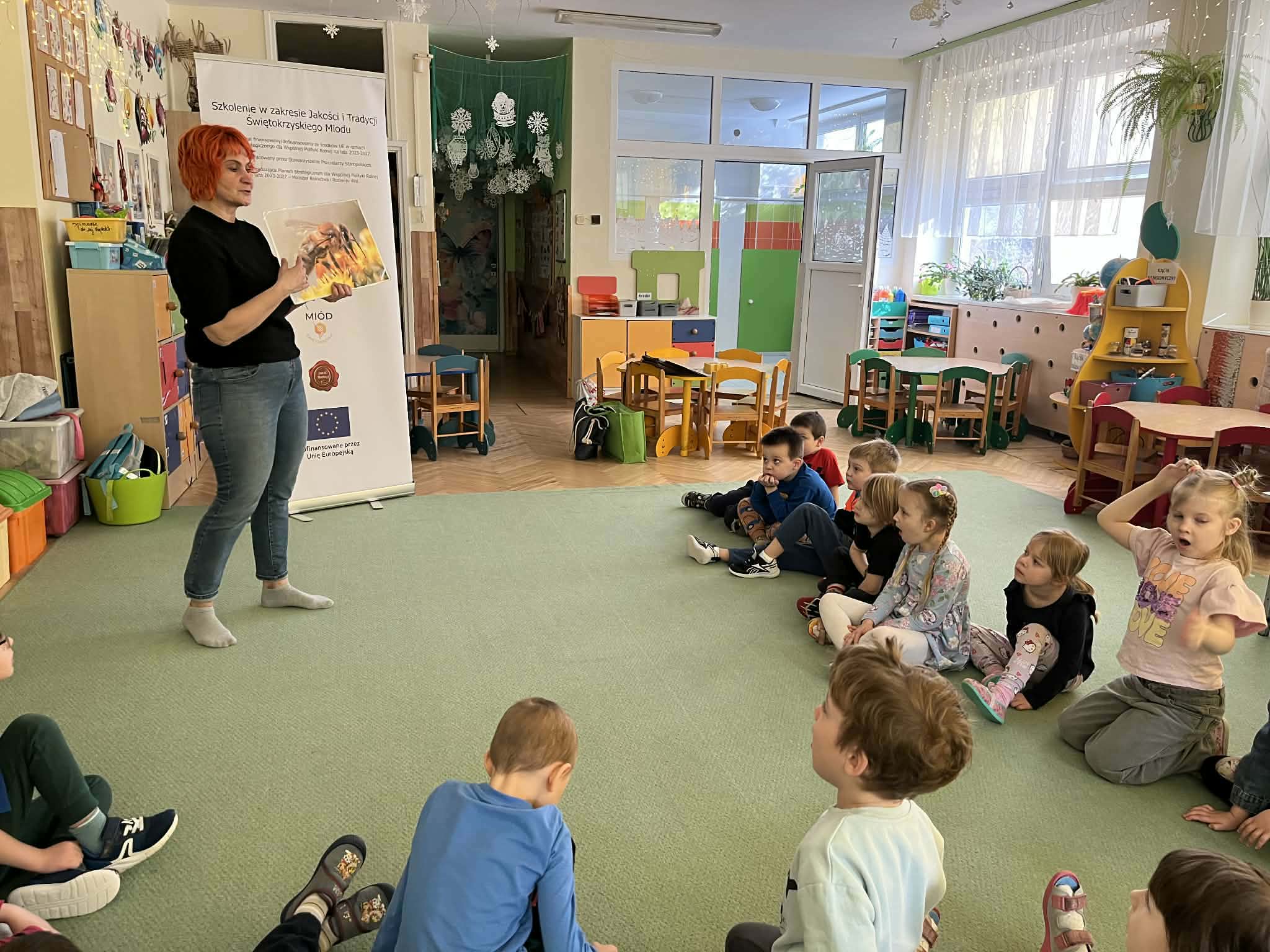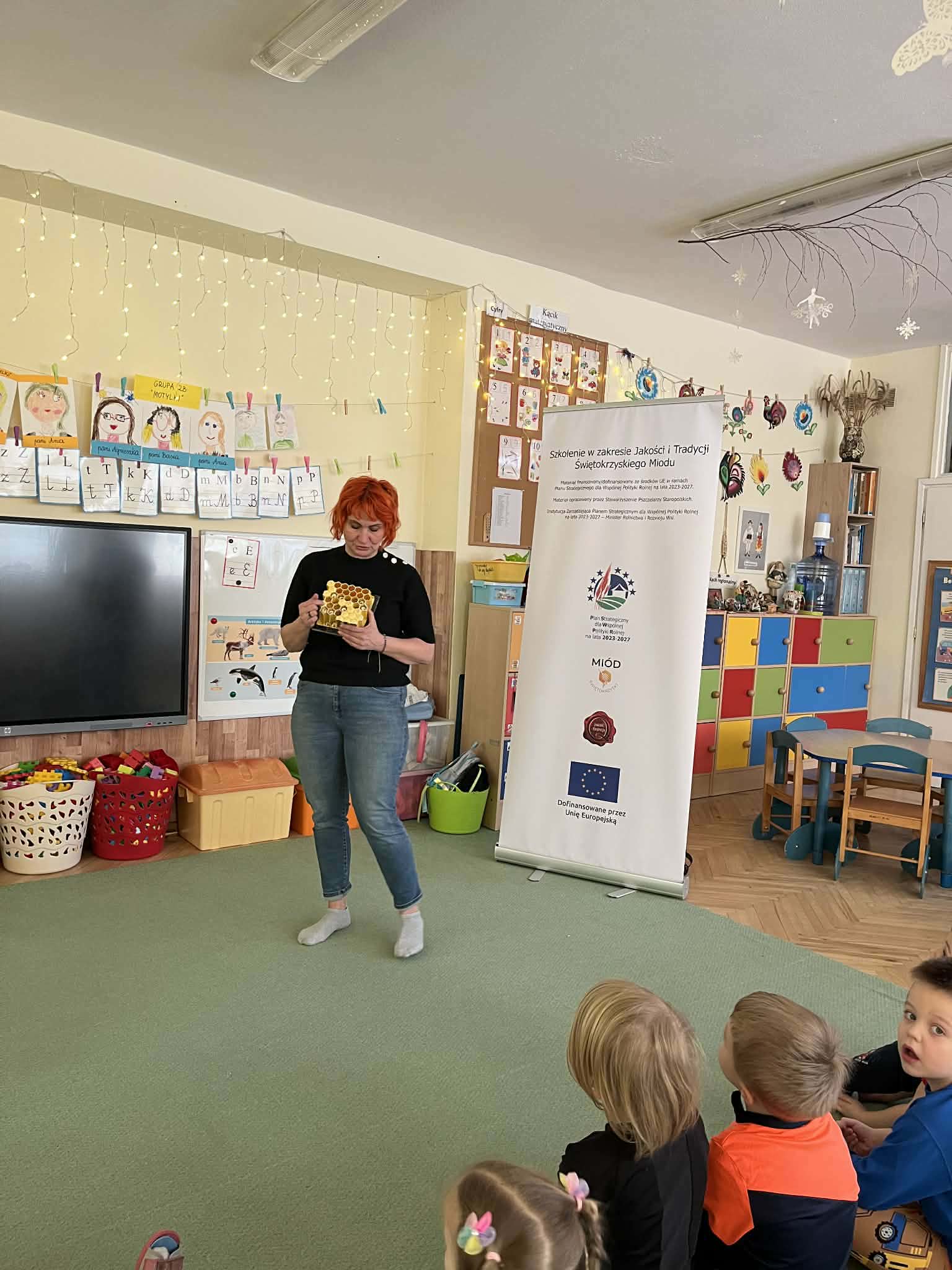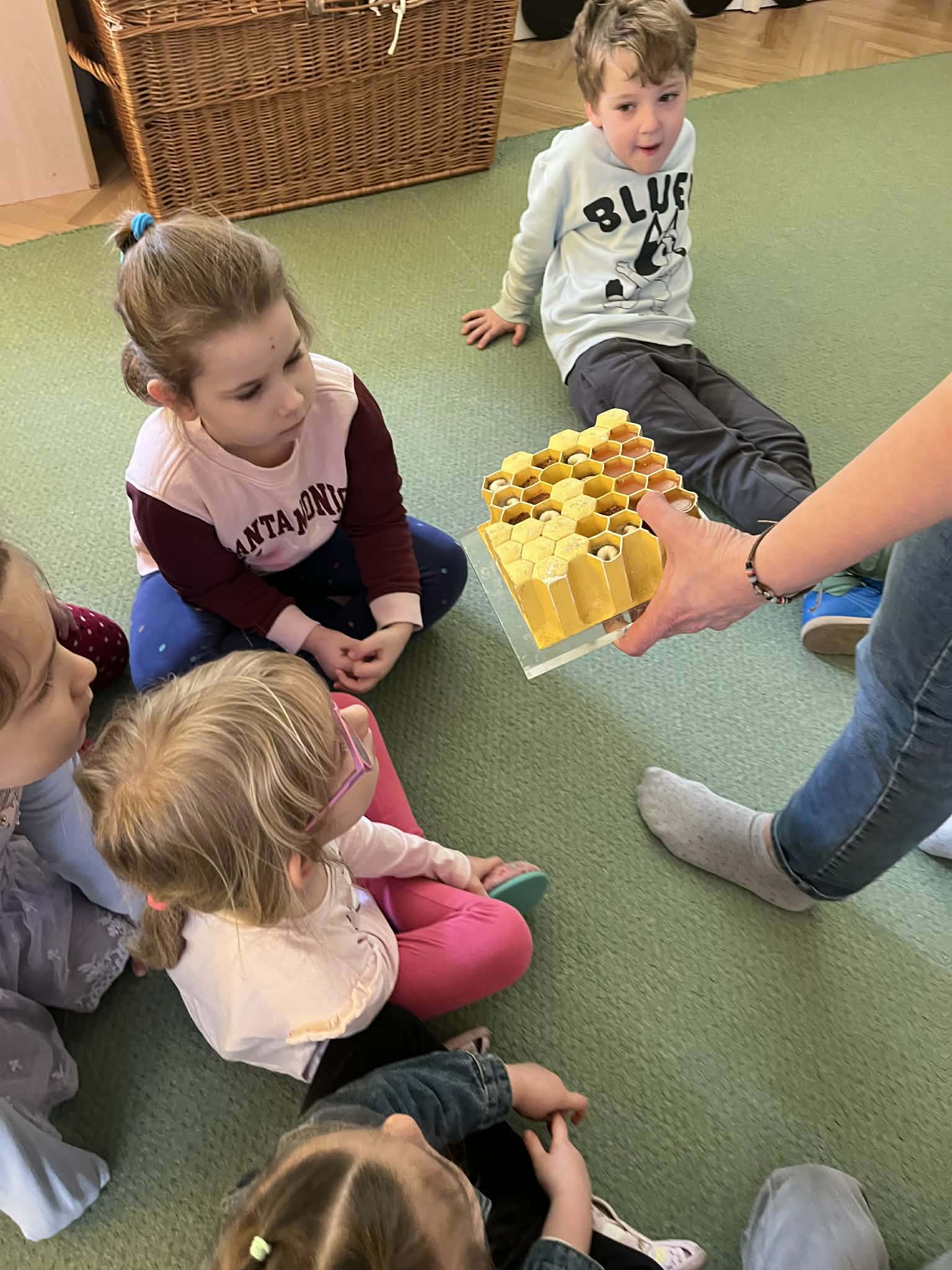 W naszym przedszkolu odbyły się fascynujące warsztaty o pszczołach. Dzieci miały okazję poznać życie pszczół, ich pracę w ulu oraz rolę, jaką pełnią w przyrodzie. Dowiedziały się, skąd bierze się miód i jak wygląda jego proces powstawania – od kwiatów aż po słoik. Największą atrakcją była degustacja miodu. Przedszkolaki spróbowały różnych jego rodzajów, poznając ich smak i konsystencję. Warsztaty były pełne ciekawostek, rozmów i zabaw edukacyjnych, które pozwoliły dzieciom lepiej zrozumieć świat pszczół i znaczenie ich pracy dla ludzi. Dzięki tym zajęciom dzieci mogły nie tylko zdobyć nową wiedzę, ale też w praktyce doświadczyć wyjątkowego smaku naturalnego miodu.