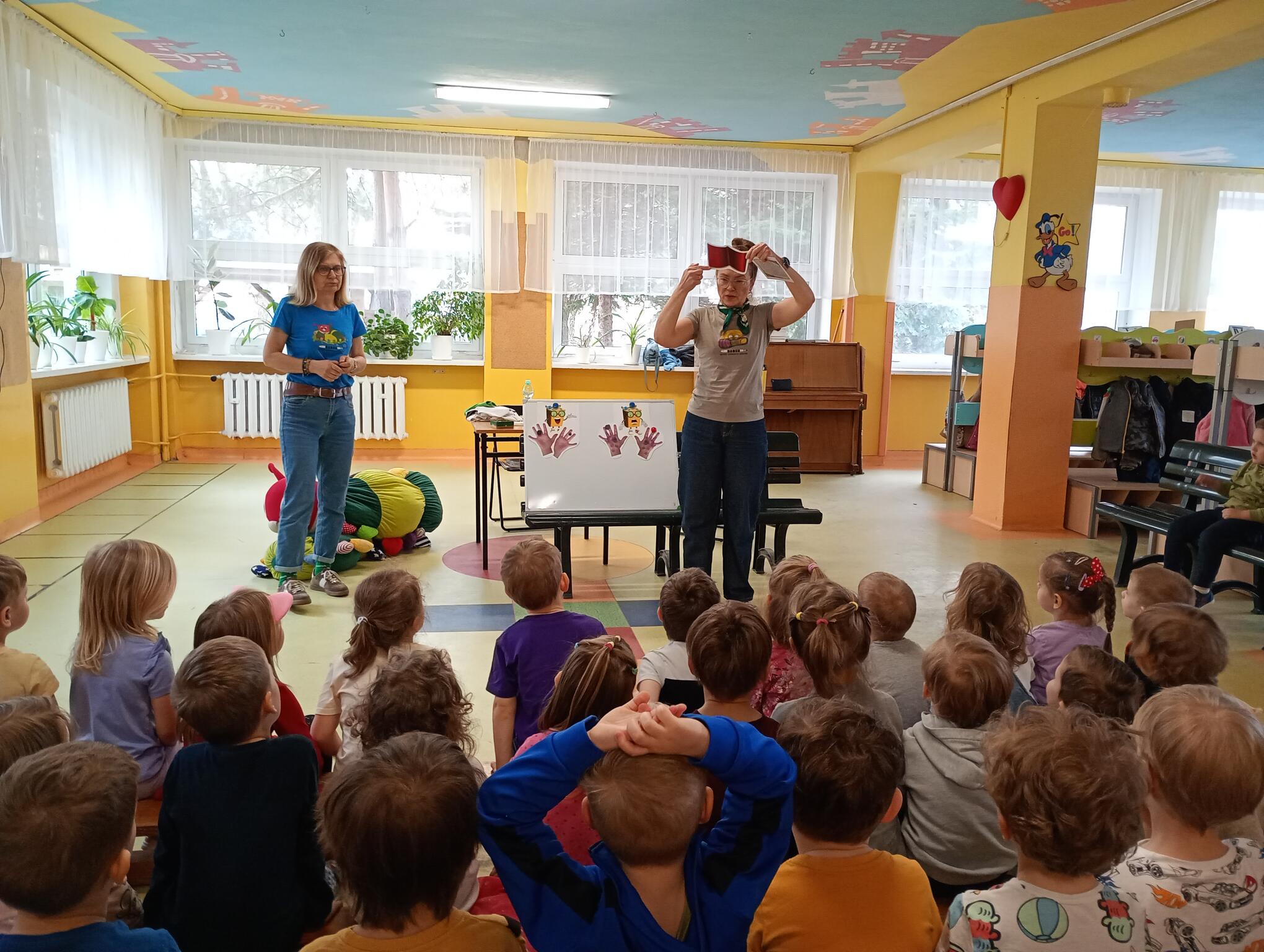 Dzisiaj w naszym przedszkolu odbyło się dla przedszkolaków spotkanie z autorkami książek dla dzieci. Dzieci dowiedziały się, jak zbudowana jest książka, kim są autor i ilustrator, jak dbać o książki oraz poznały bohaterów książkowych opowieści.
