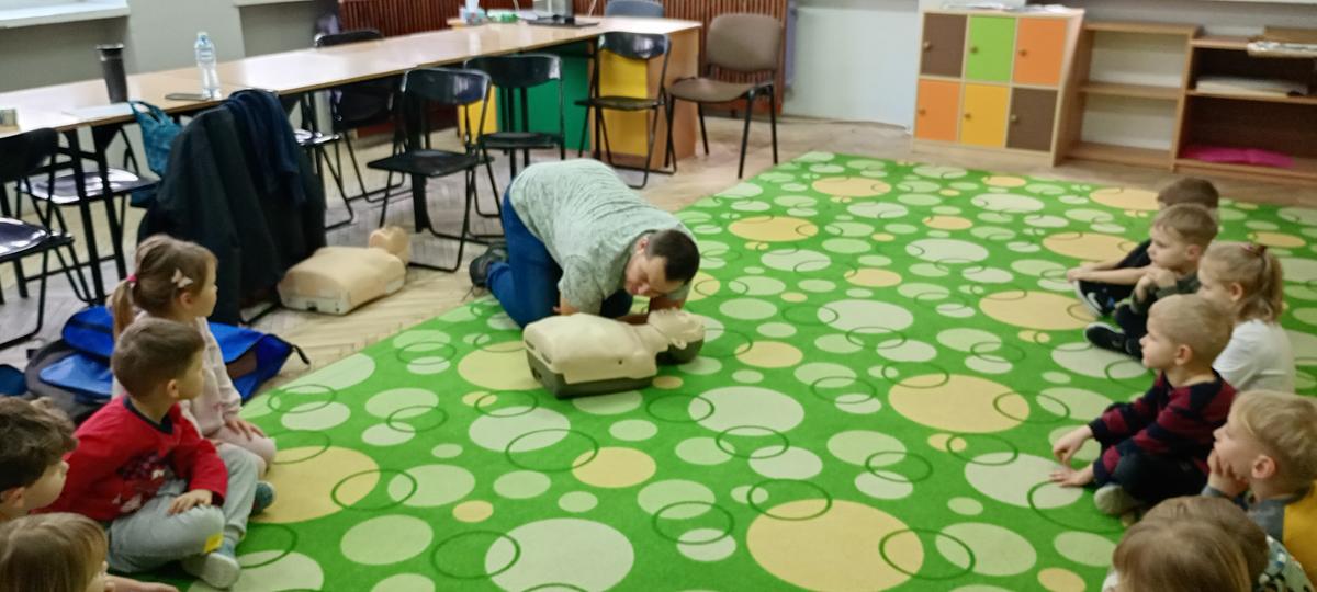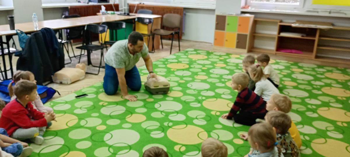 Podczas spotkania dzieci poznały specyfikę pracy ratownika oraz dowiedziały się jak wygląda udzielenie pierwszej pomocy w sytuacjach zagrożenia życia i zdrowia.