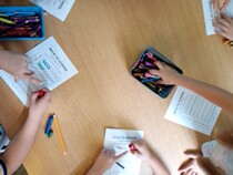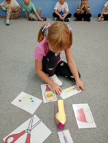 Pierwsze dni po powrocie z wakacji poświęciliśmy na przypomnienie sobie podstawowych zwrotów, nazw kolorów oraz utrwaleniu nazw przyborów, z których korzystamy na co dzień podczas zajęć.