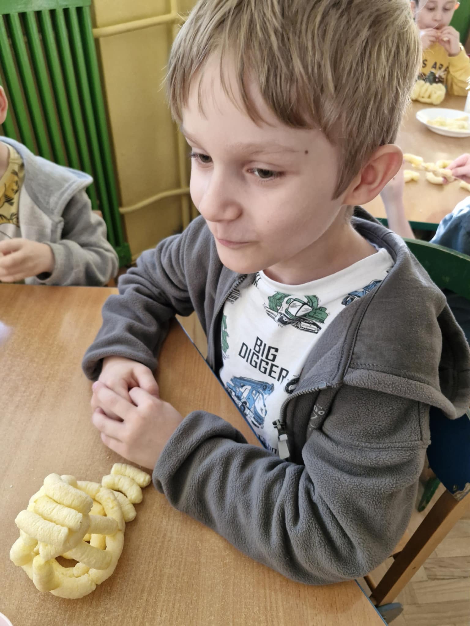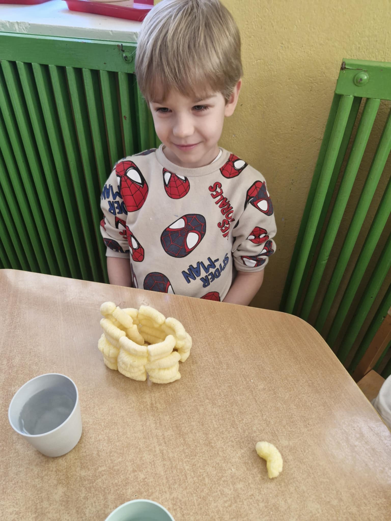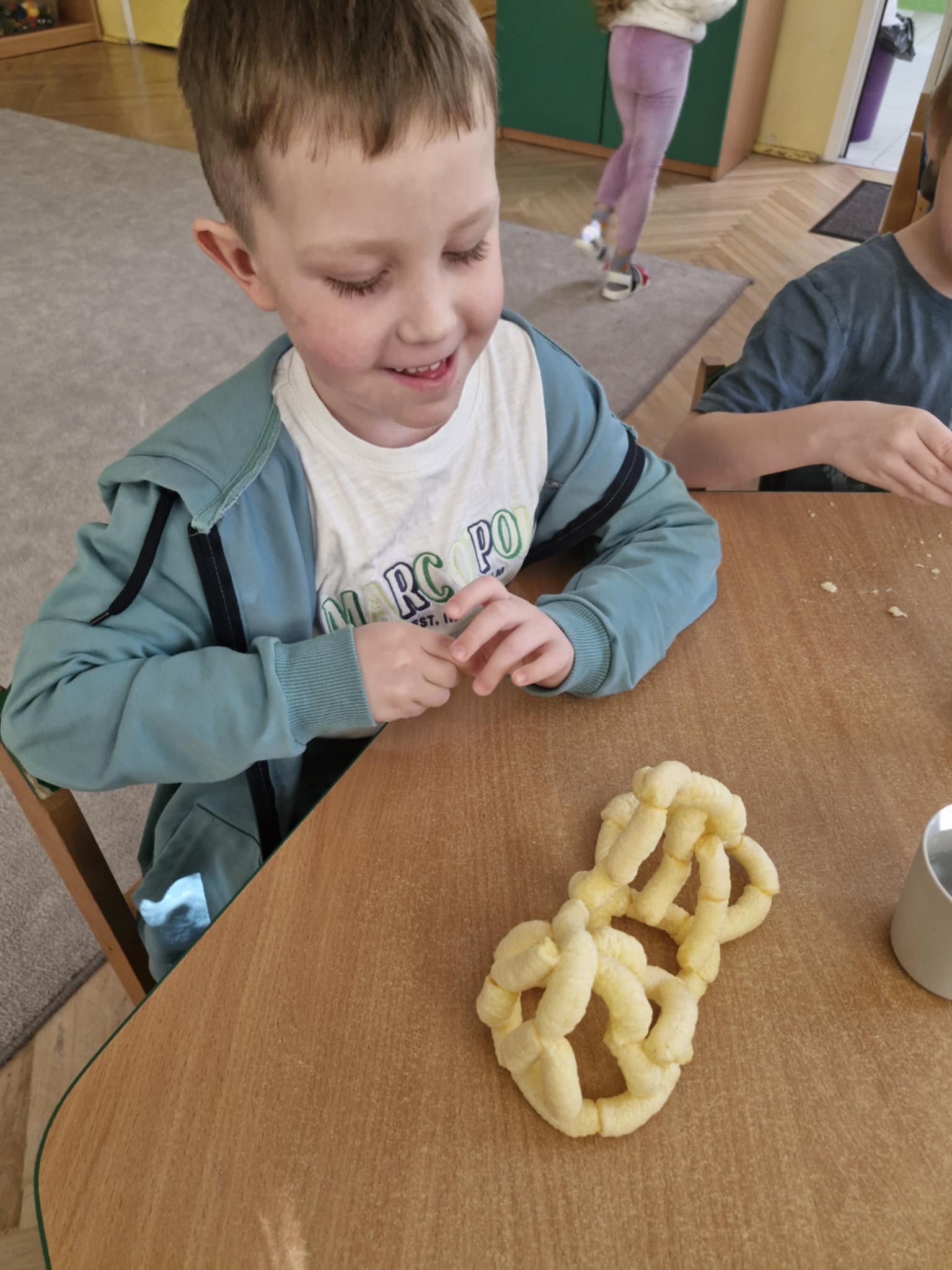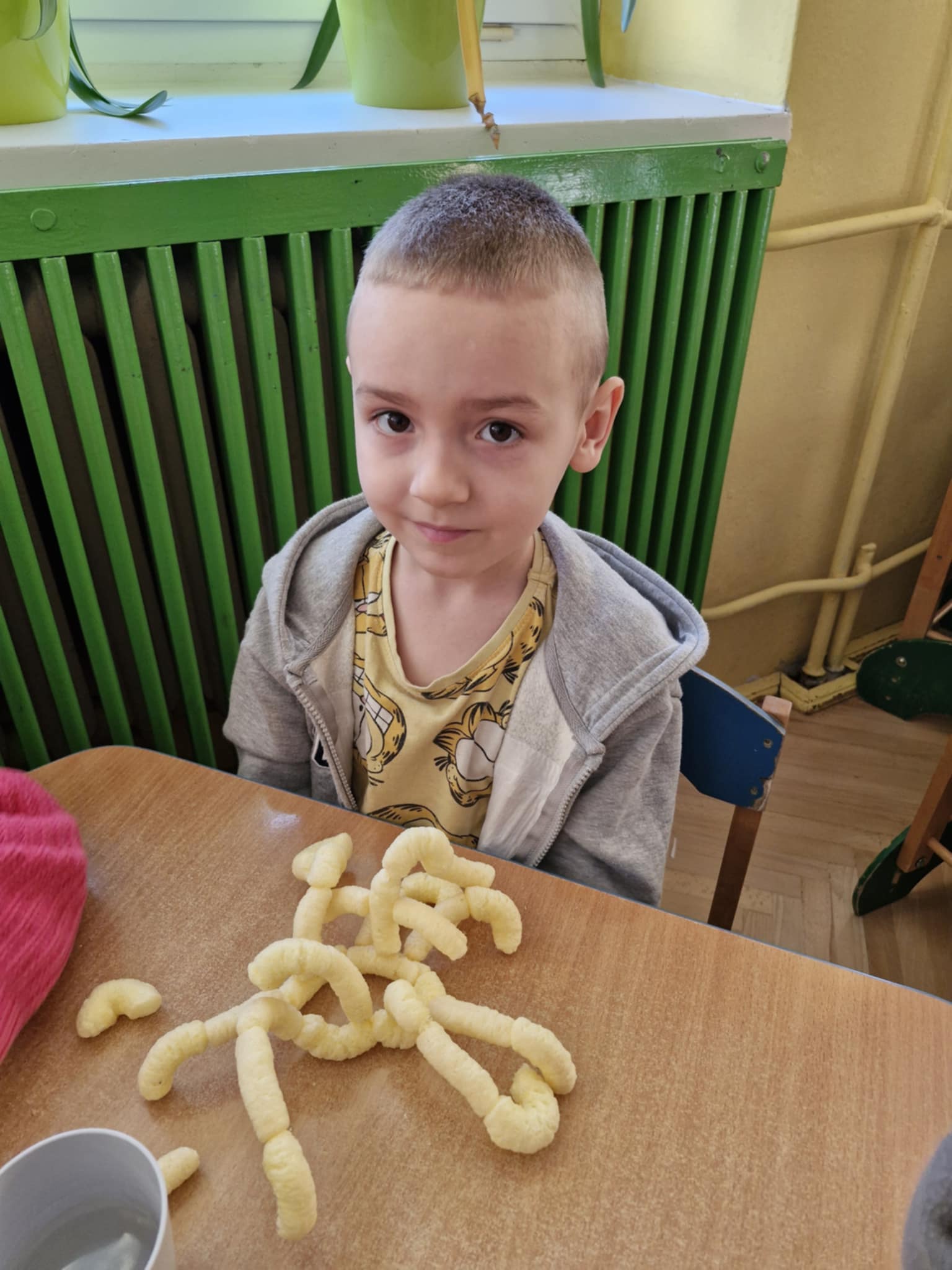 W naszej grupie odbyły się dziś zajęcia sensoryczne, podczas których dzieci tworzyły różne budowle z chrupek kukurydzianych. Było dużo radości, kreatywności i świetnej zabawy. Zajęcia sensoryczne wspierają rozwój wielu ważnych umiejętności. Pomagają rozwijać motorykę małą, koordynację ręka–oko oraz sprawność dłoni. Pobudzają kreatywność, wyobraźnię i uczą planowania działania. Dodatkowo wspierają koncentrację, cierpliwość oraz współpracę w grupie. Takie aktywności pozwalają dzieciom poznawać świat poprzez działanie, dotyk i doświadczenie, co jest bardzo ważne dla ich prawidłowego rozwoju. Zabawy było co nie miara, a radość z jedzenia swoich budowli nie do opisania.