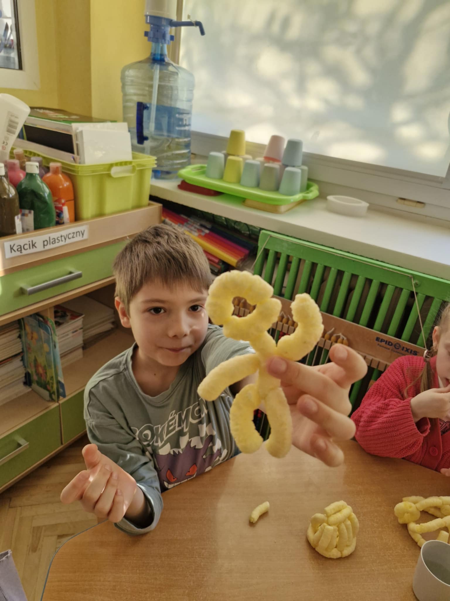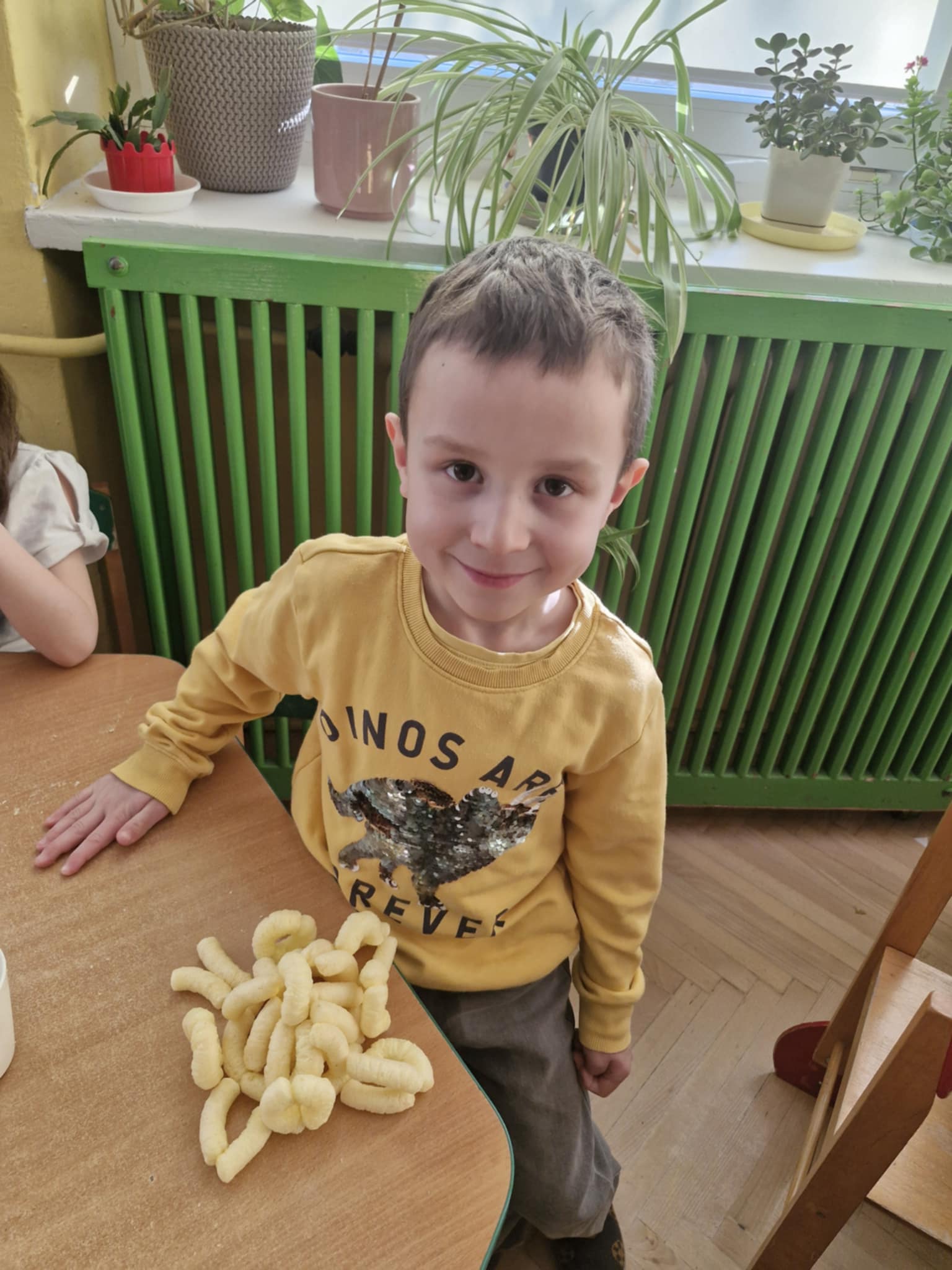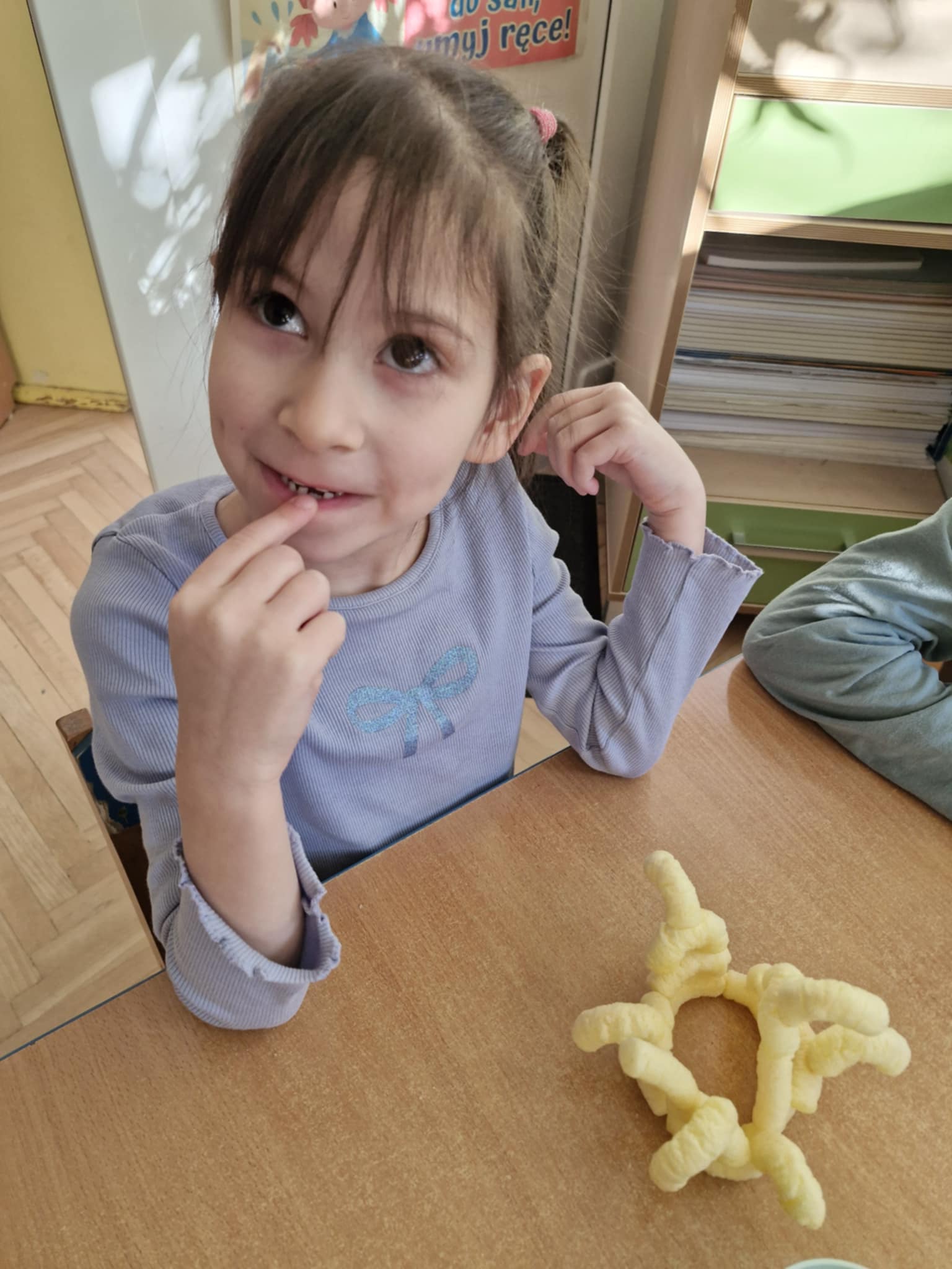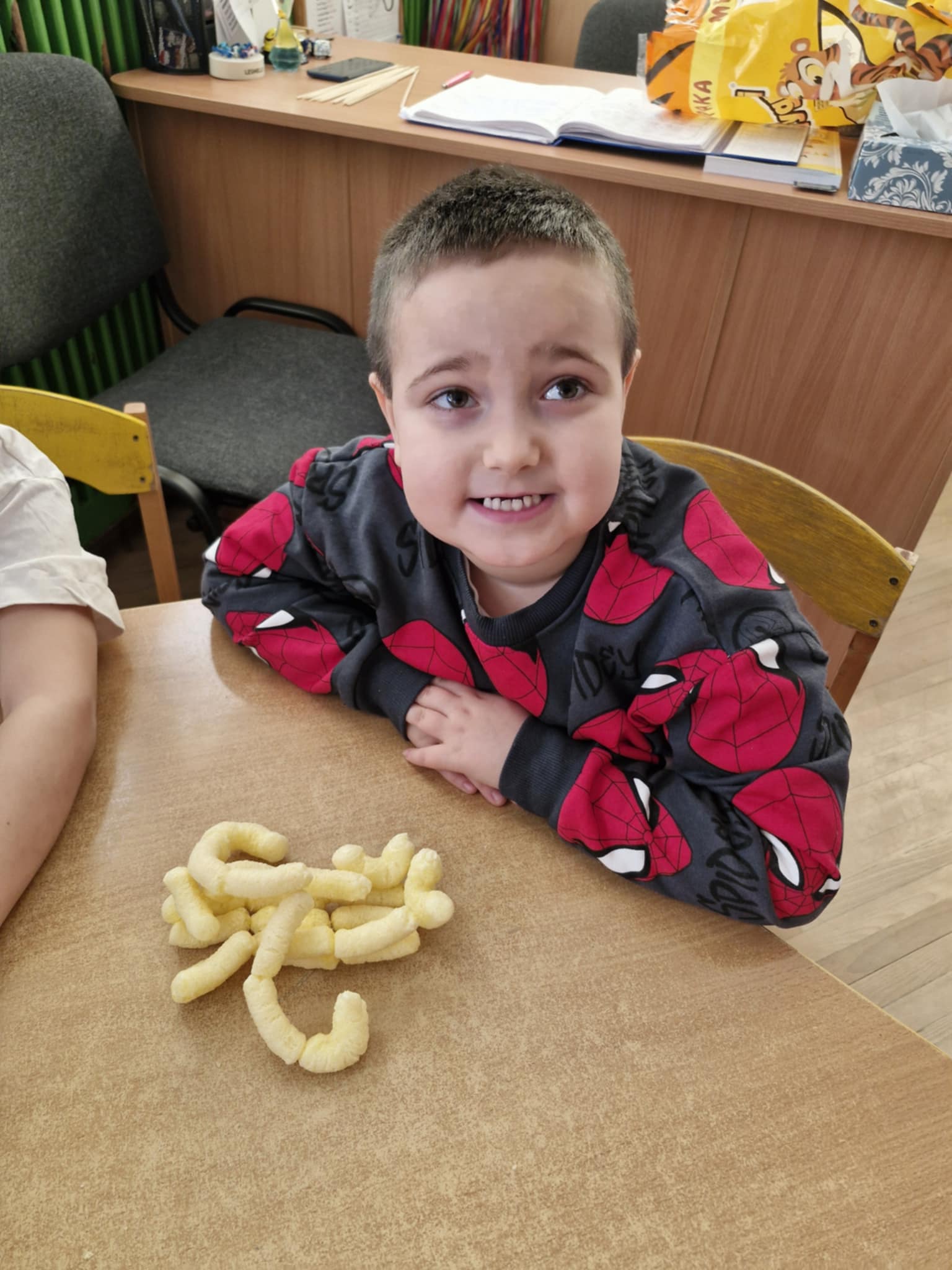 W naszej grupie odbyły się dziś zajęcia sensoryczne, podczas których dzieci tworzyły różne budowle z chrupek kukurydzianych. Było dużo radości, kreatywności i świetnej zabawy. Zajęcia sensoryczne wspierają rozwój wielu ważnych umiejętności. Pomagają rozwijać motorykę małą, koordynację ręka–oko oraz sprawność dłoni. Pobudzają kreatywność, wyobraźnię i uczą planowania działania. Dodatkowo wspierają koncentrację, cierpliwość oraz współpracę w grupie. Takie aktywności pozwalają dzieciom poznawać świat poprzez działanie, dotyk i doświadczenie, co jest bardzo ważne dla ich prawidłowego rozwoju. Zabawy było co nie miara, a radość z jedzenia swoich budowli nie do opisania.
