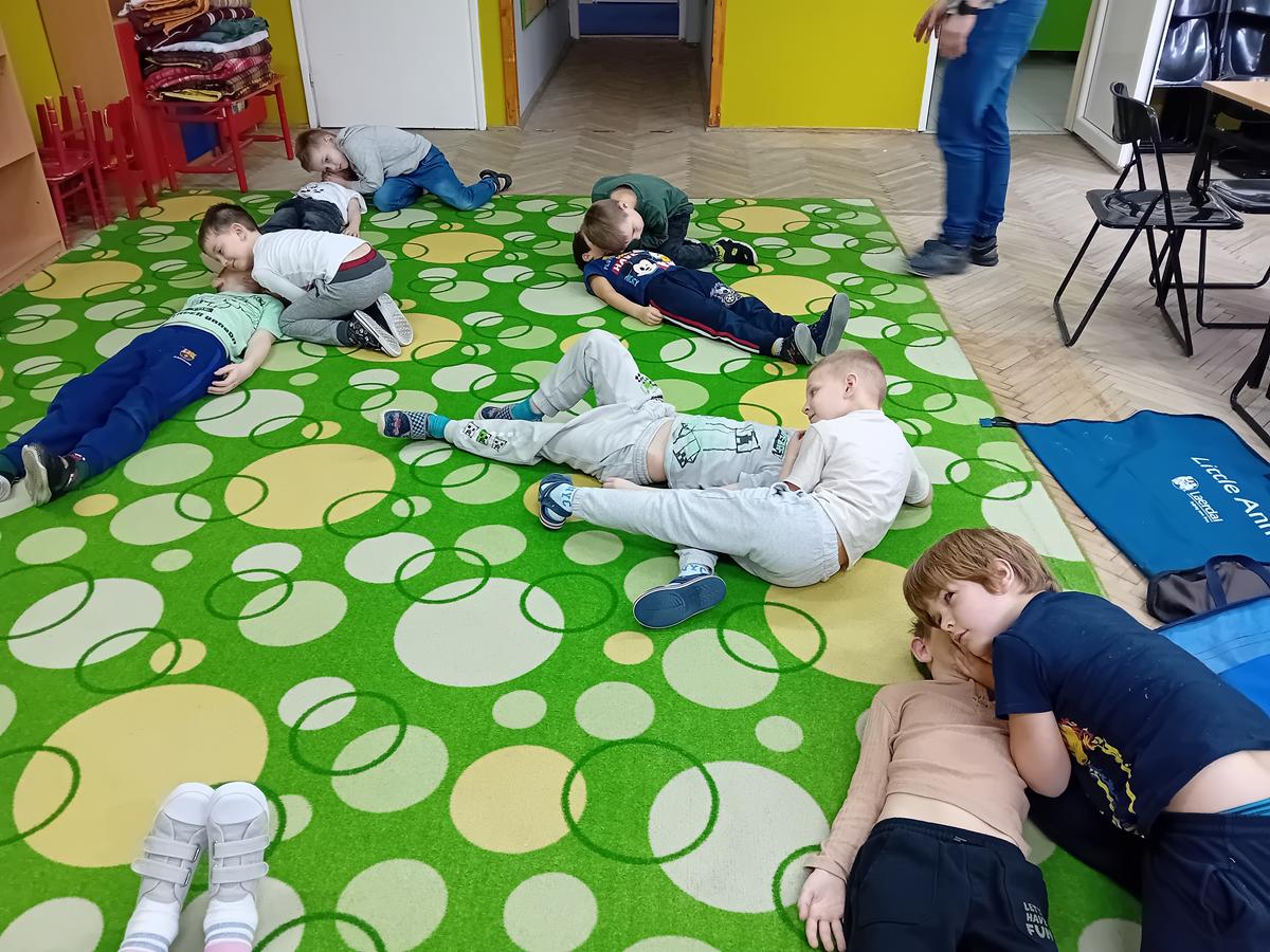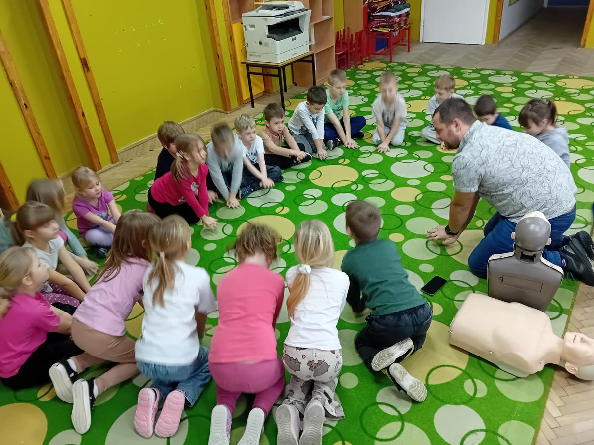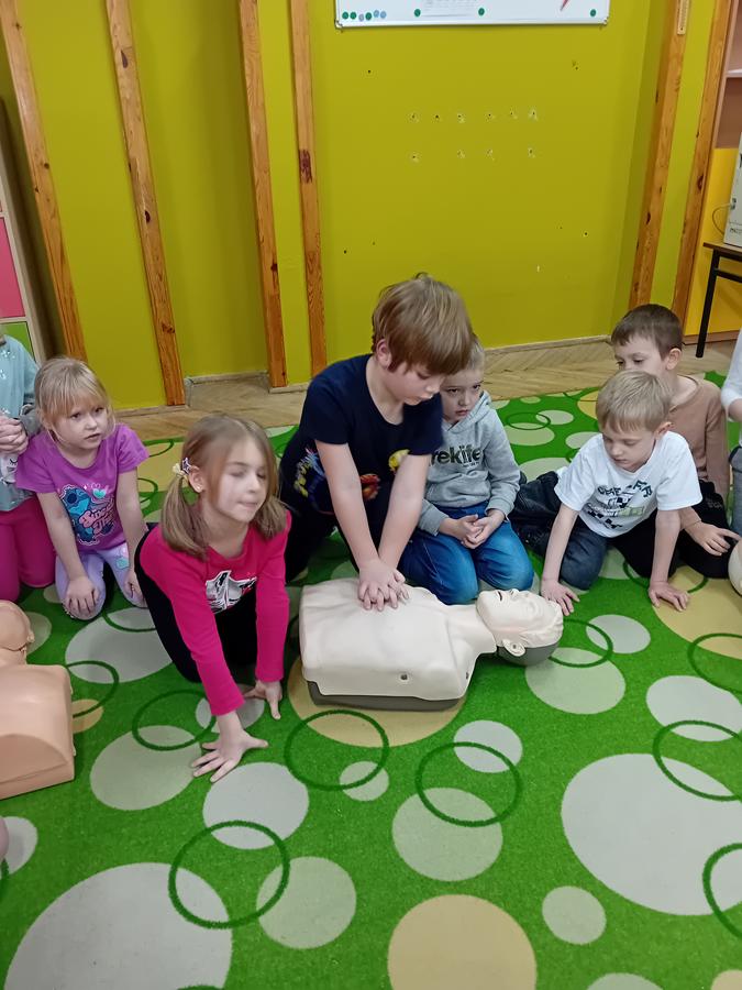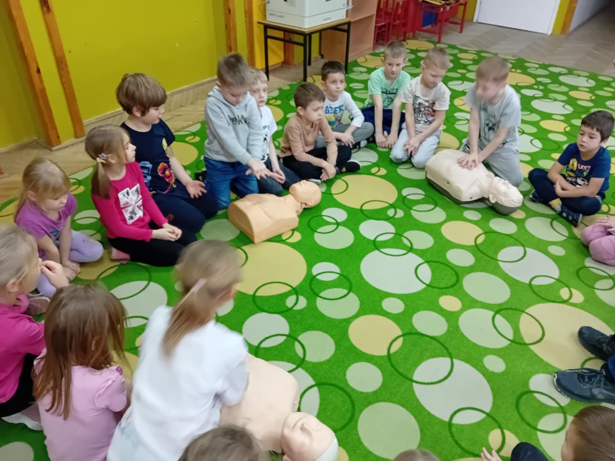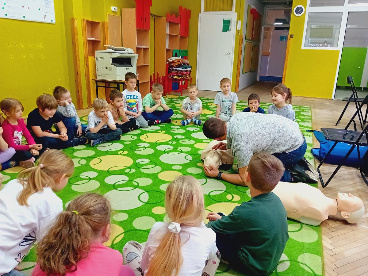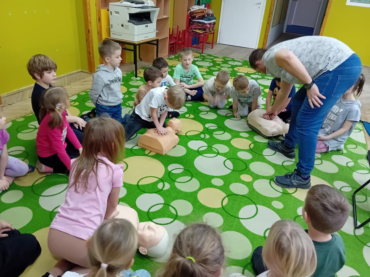 W czasie warsztatów z ratownikiem medycznym przypomnieliśmy sobie najważniejszą wiedzę dotyczącą pierwszej pomocy. Ćwiczyliśmy pozycję „boczną ustaloną”, masaż serca na fantomach oraz numery alarmowe.