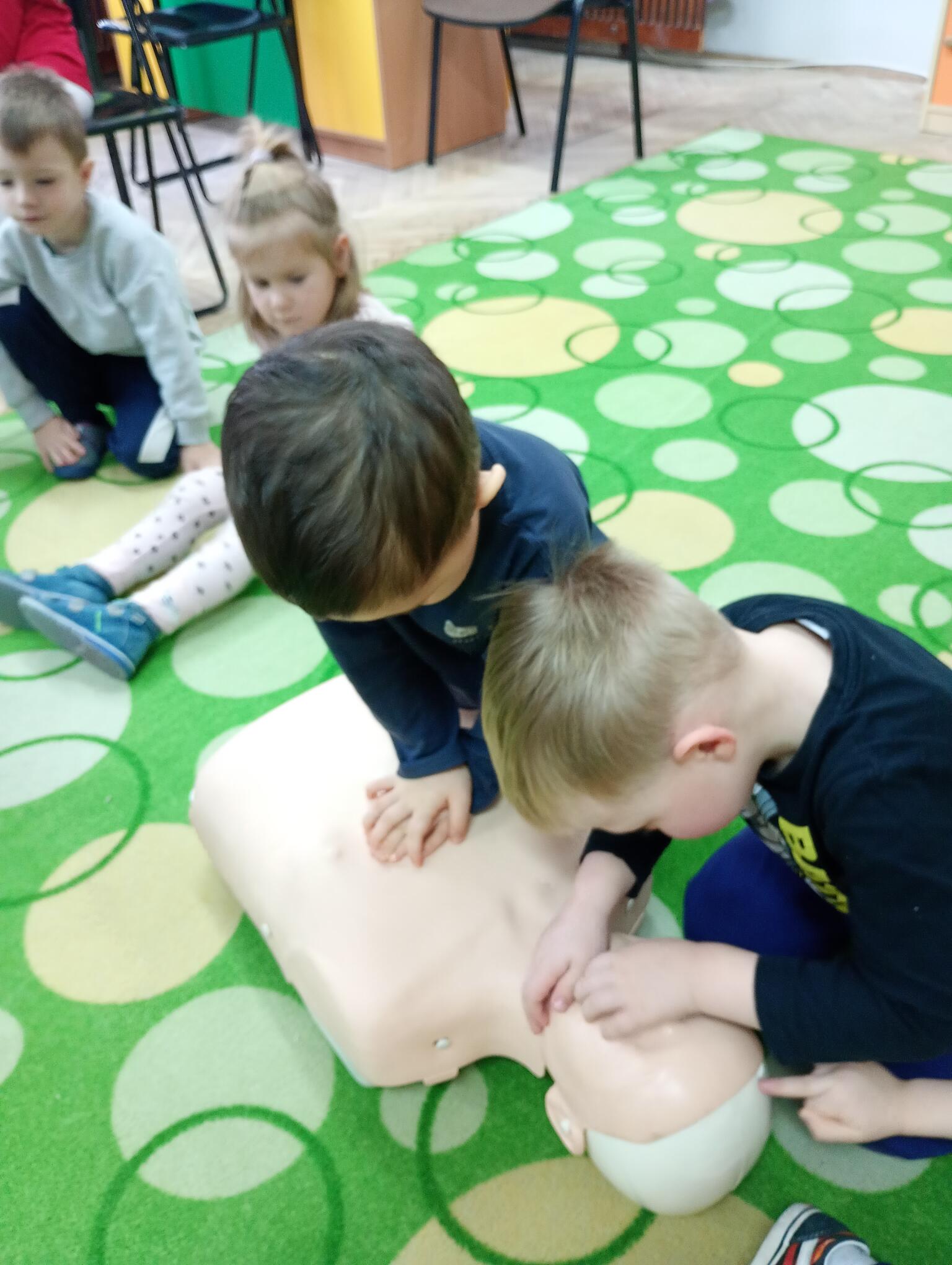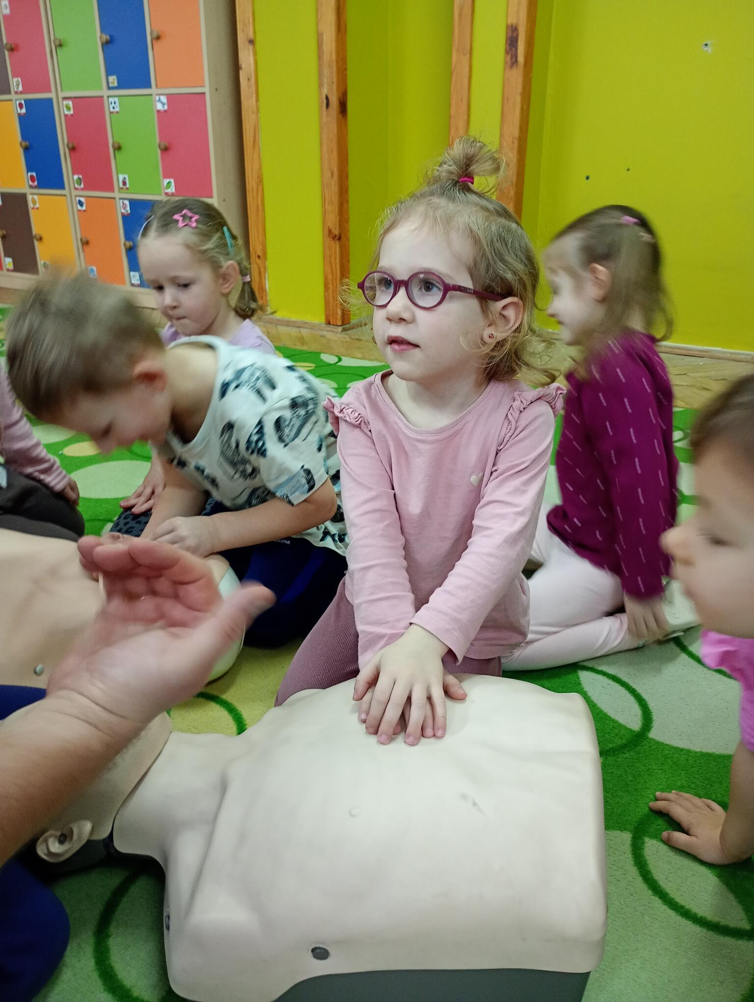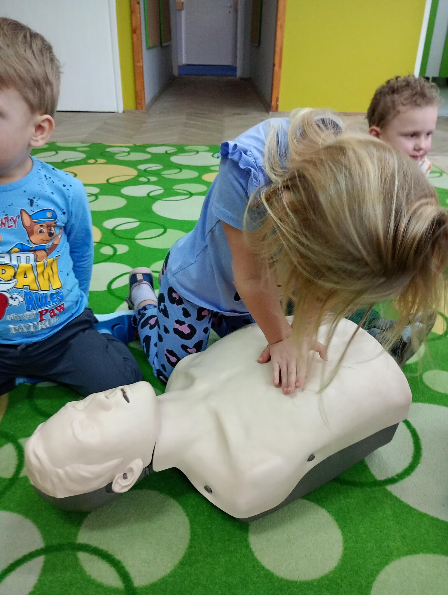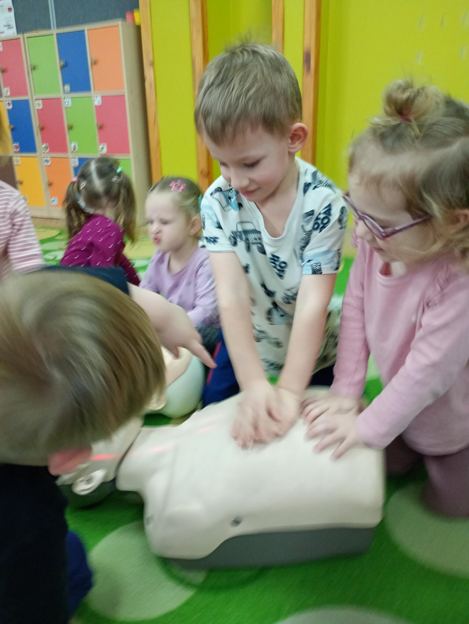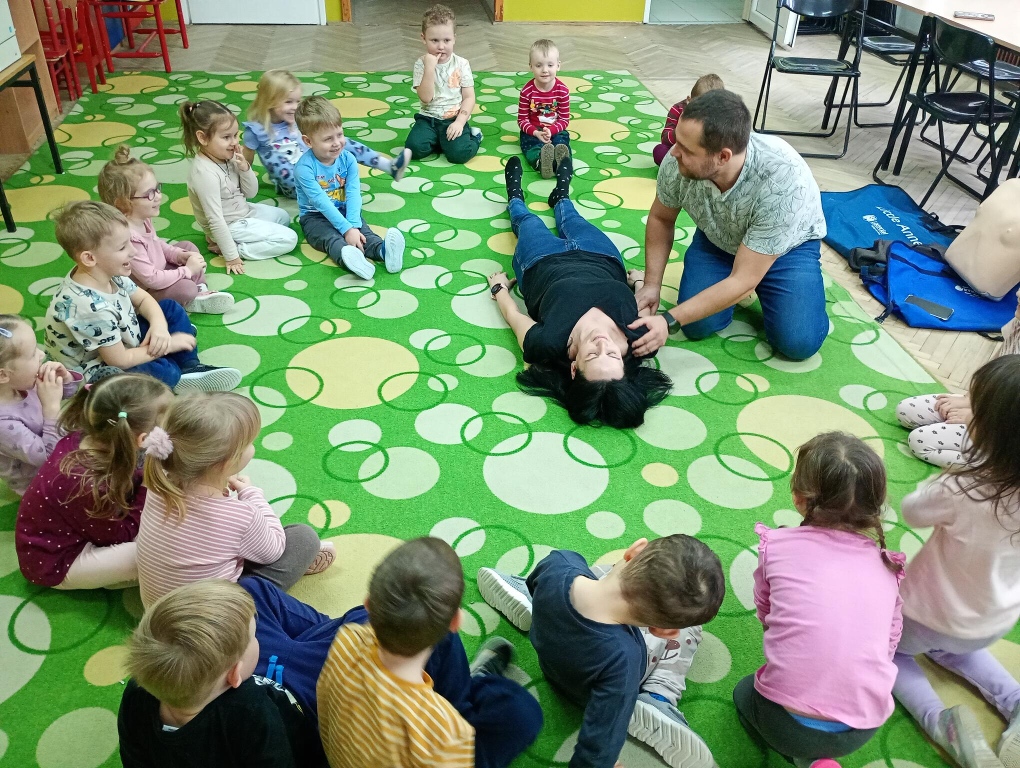Dzisiaj grupa Puchatków brała udział w zajęciach z ratownictwa. Dzieci odwiedził sam ratownik medyczny, który w najprostszy sposób zapoznał przedszkolaków z najważniejszymi zasadami ratowania komuś życia. Maluszki poznały numer alarmowy 112, mogły spróbować przeprowadzić masaż serca na fantomach i ułożyć w pozycji bocznej „nieprzytomną” ciocię Martę.